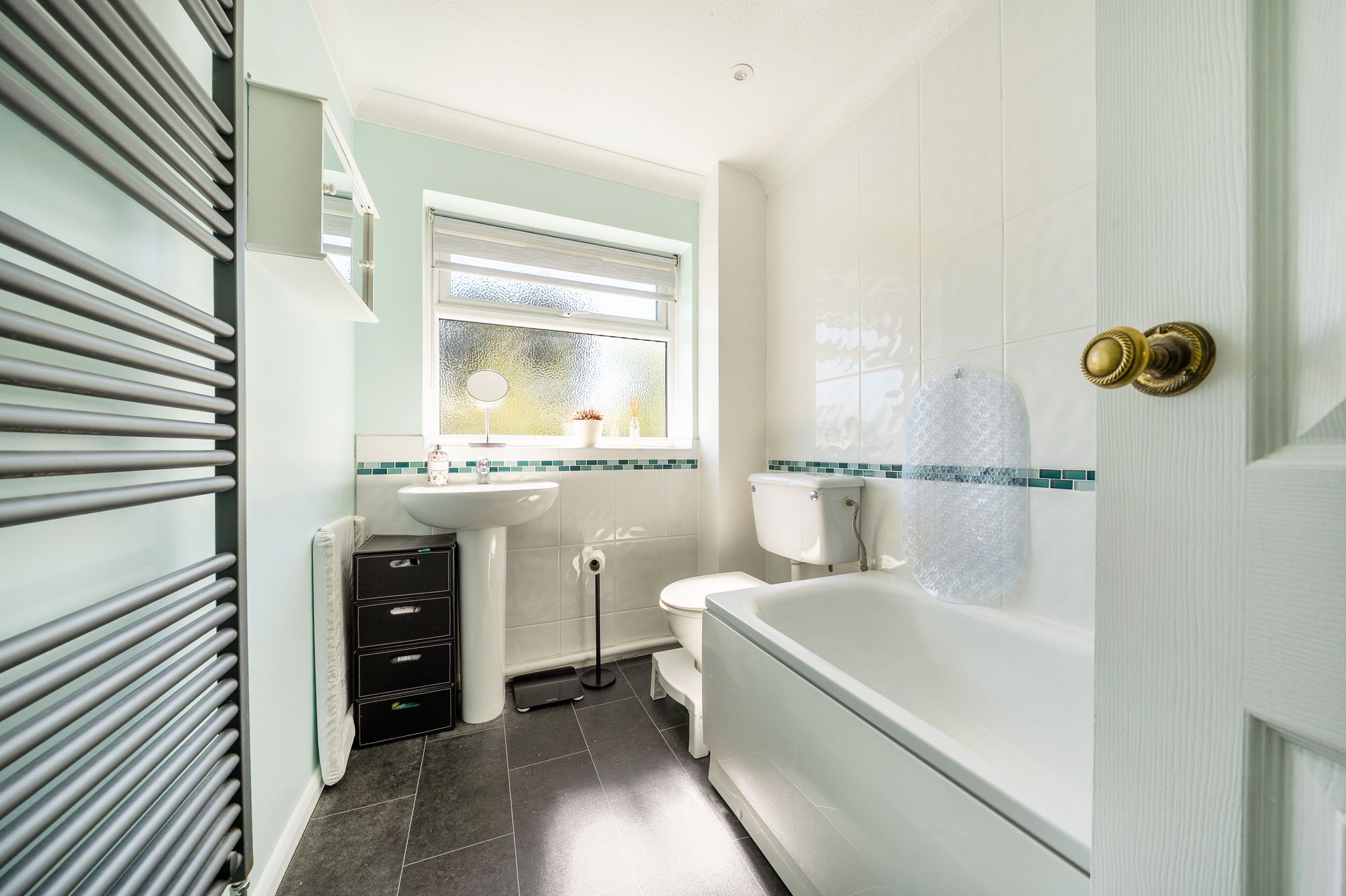 Upstairs, the first floor comprises two well-proportioned bedrooms, both of which benefit from fitted wardrobes to maximise storage and create a clutter-free environment. The bathroom is modern and functional, equipped with a shower over the bath, ideal for both quick morning routines and relaxing evening soaks.