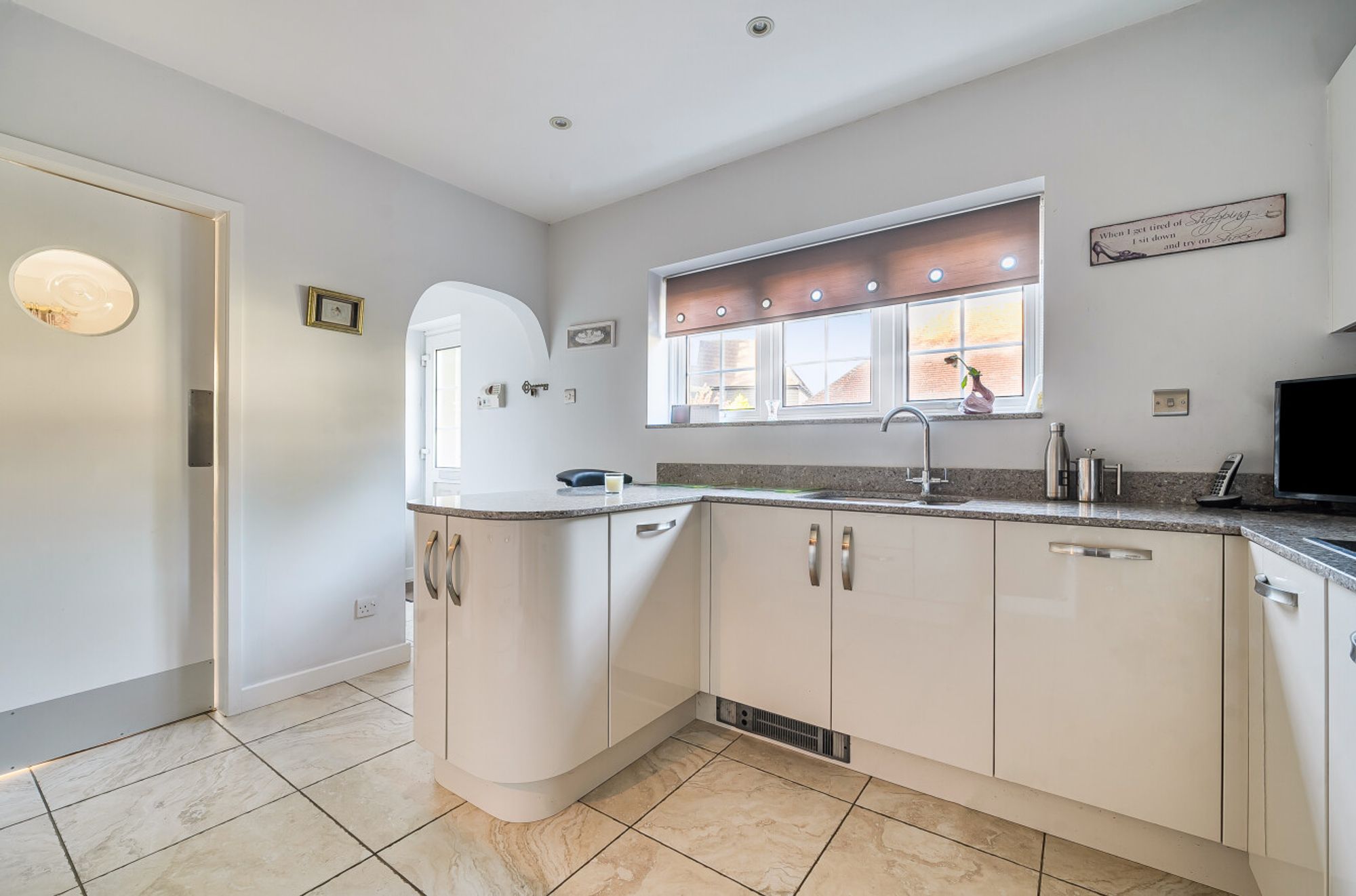 The spacious sitting/dining room opens into a bright garden room overlooking the rear garden, creating an ideal space for both everyday living and entertaining. The well-fitted kitchen is complemented by an adjacent dining room, which could easily be adapted to provide a third bedroom if desired by creating a door from the hallway in place of the store cupboard.