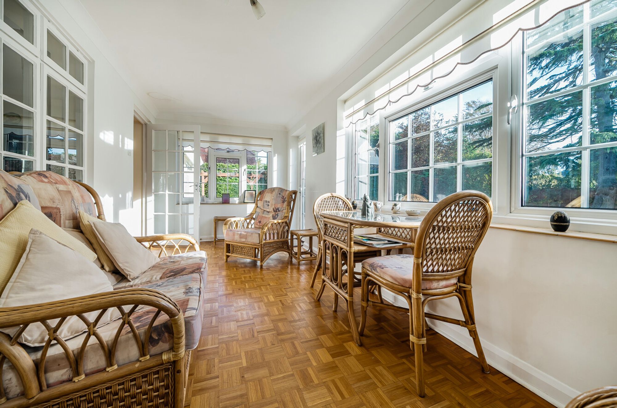 Outside, a private gated driveway provides ample off-road parking for a number of vehicles and leads to the garage. The rear garden is a real highlight; south-facing, generous in size, and beautifully kept with mature plants and established borders, offering a wonderful sense of seclusion and tranquillity.