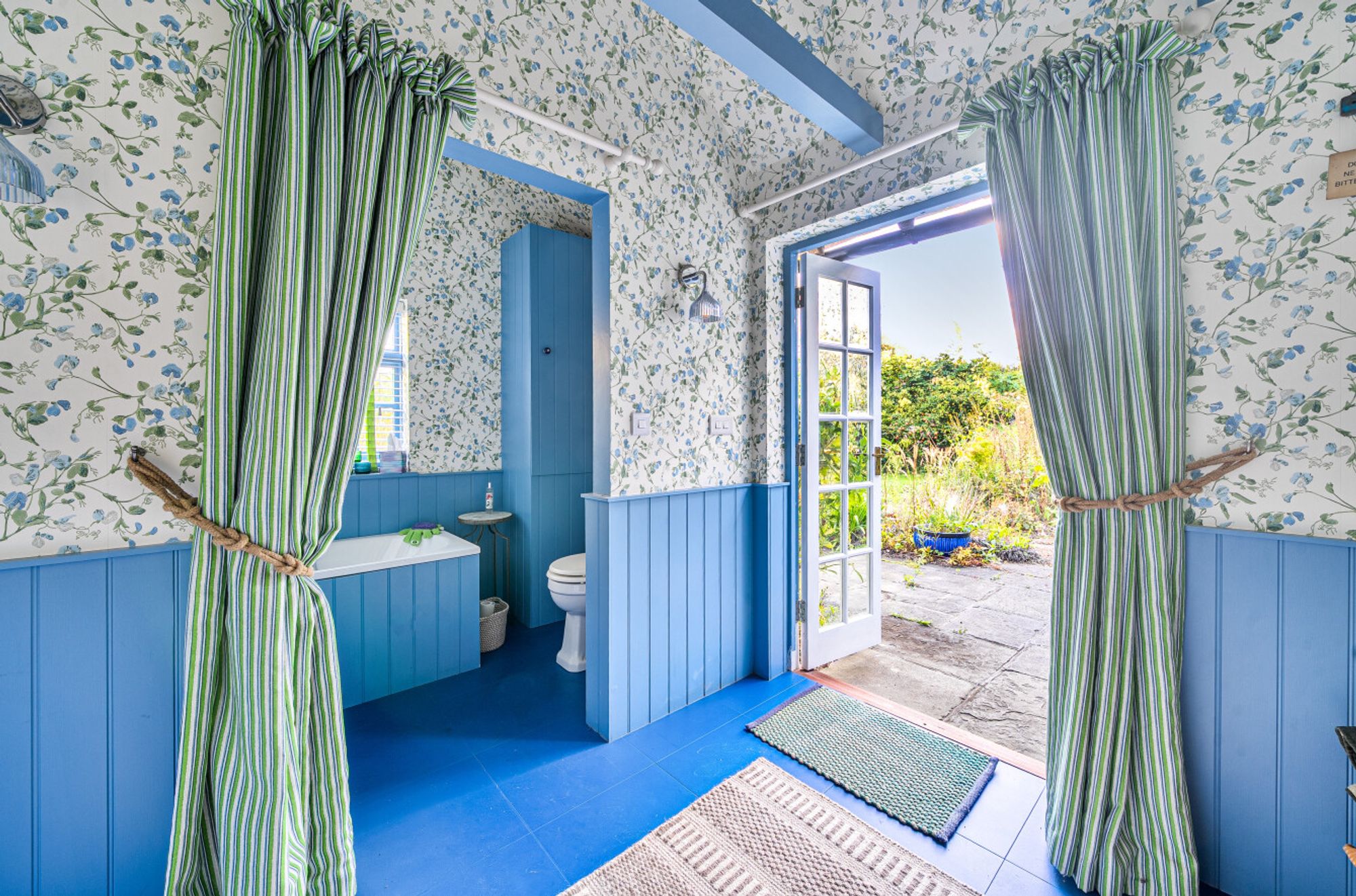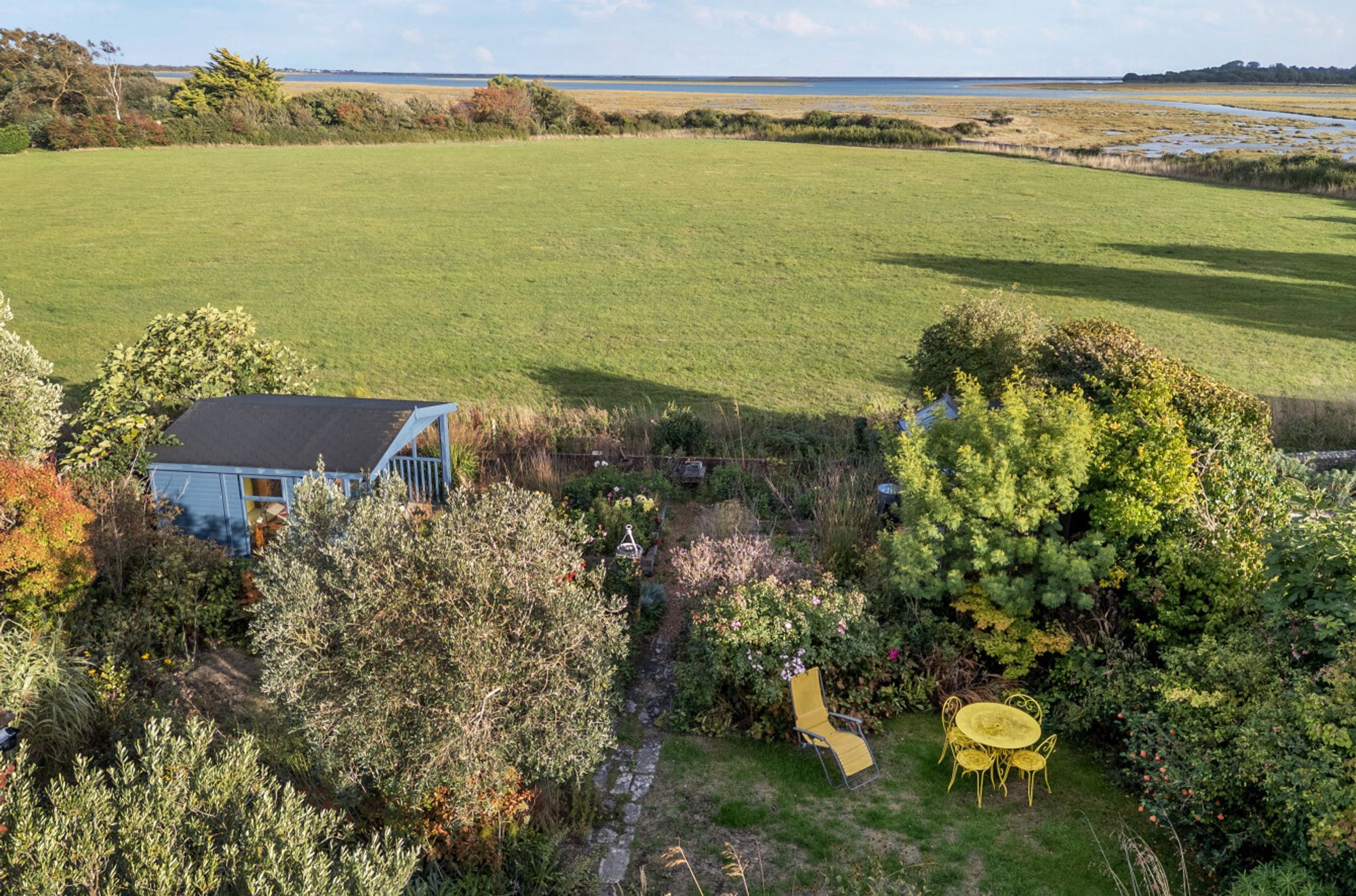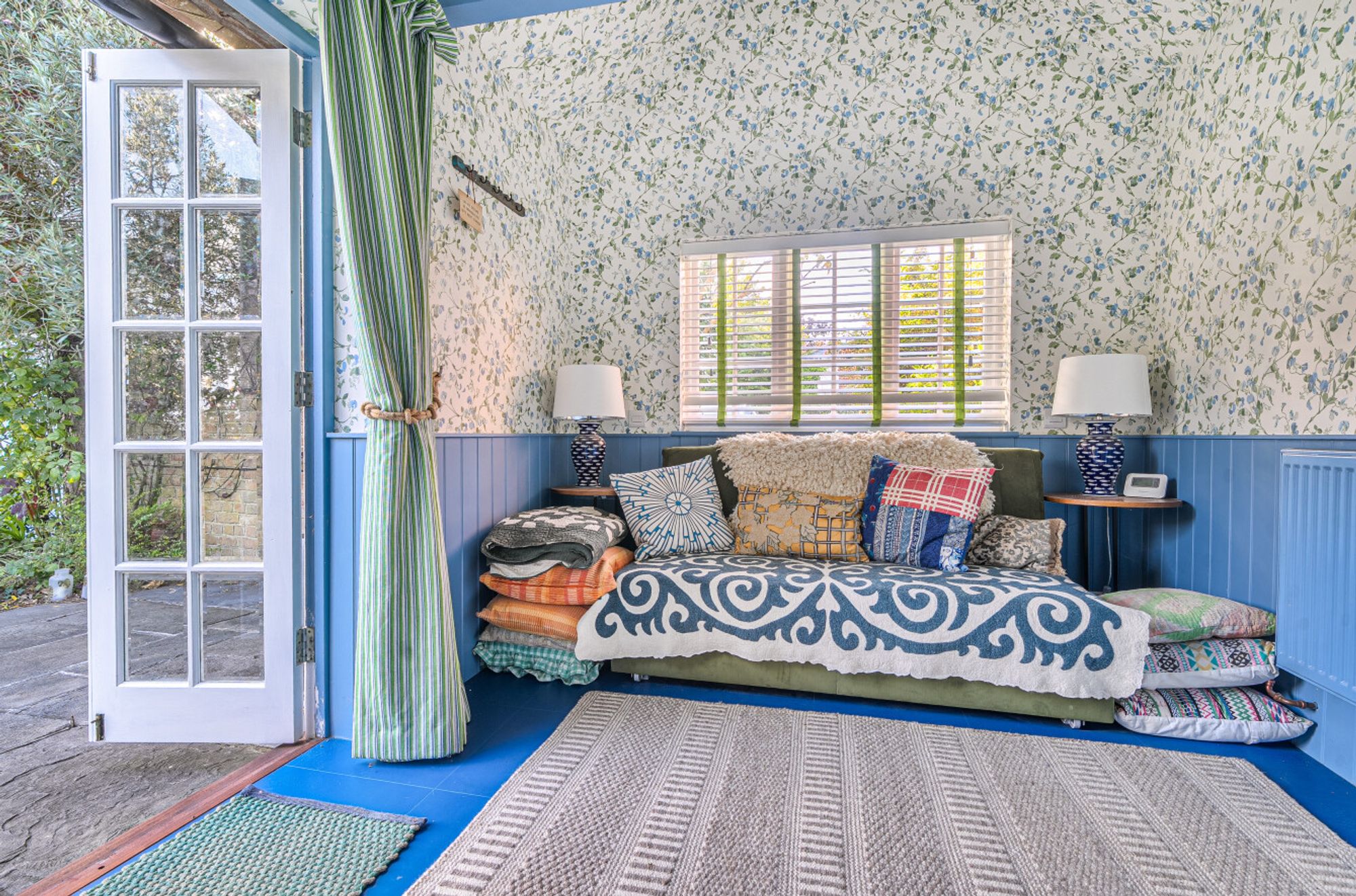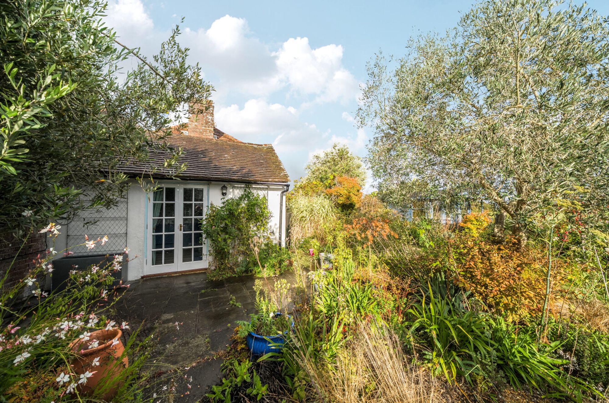 The original garage has been converted into an informal studio with a sitting room/bedroom and bathroom, perfect as a guest suite.