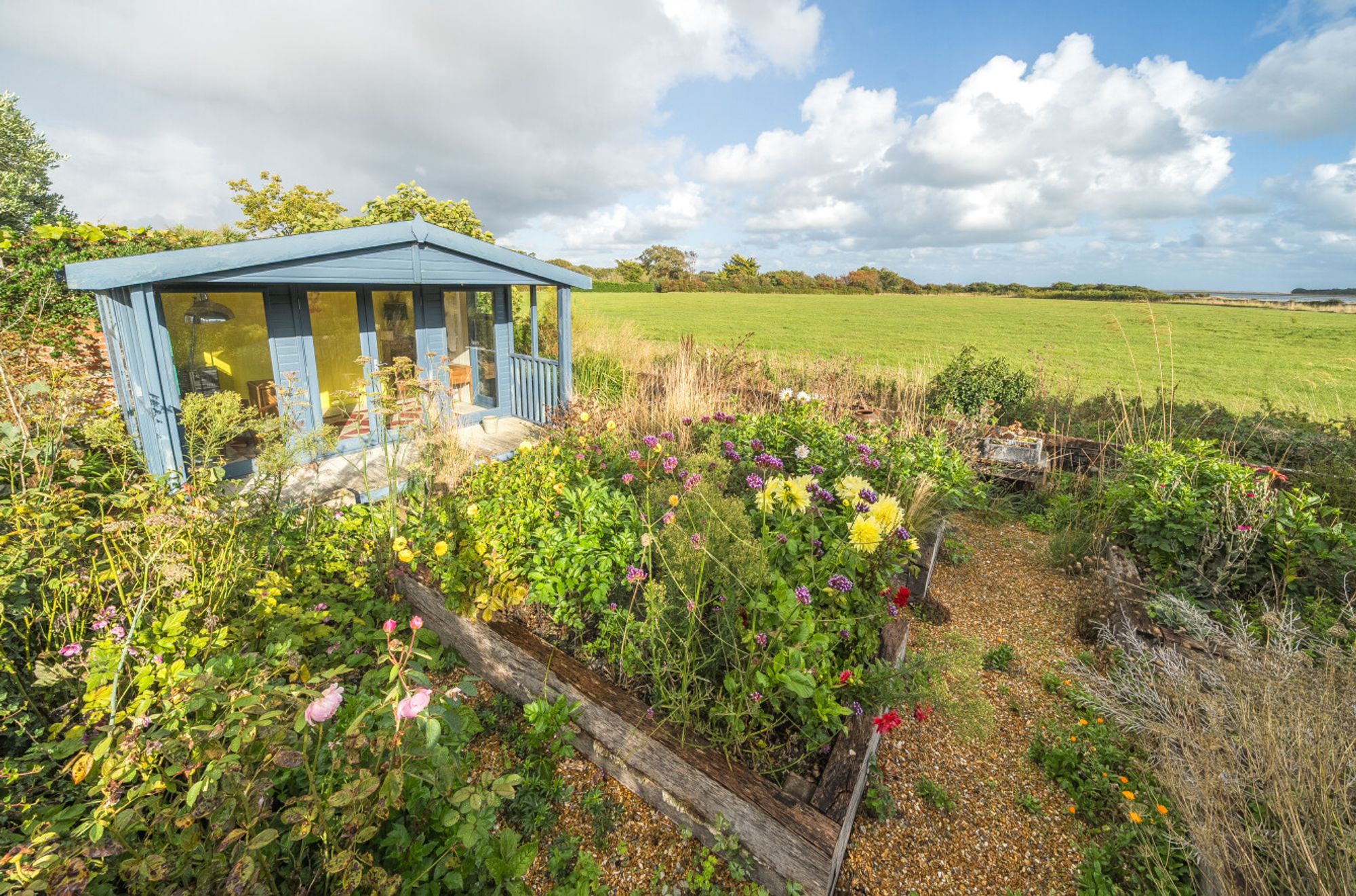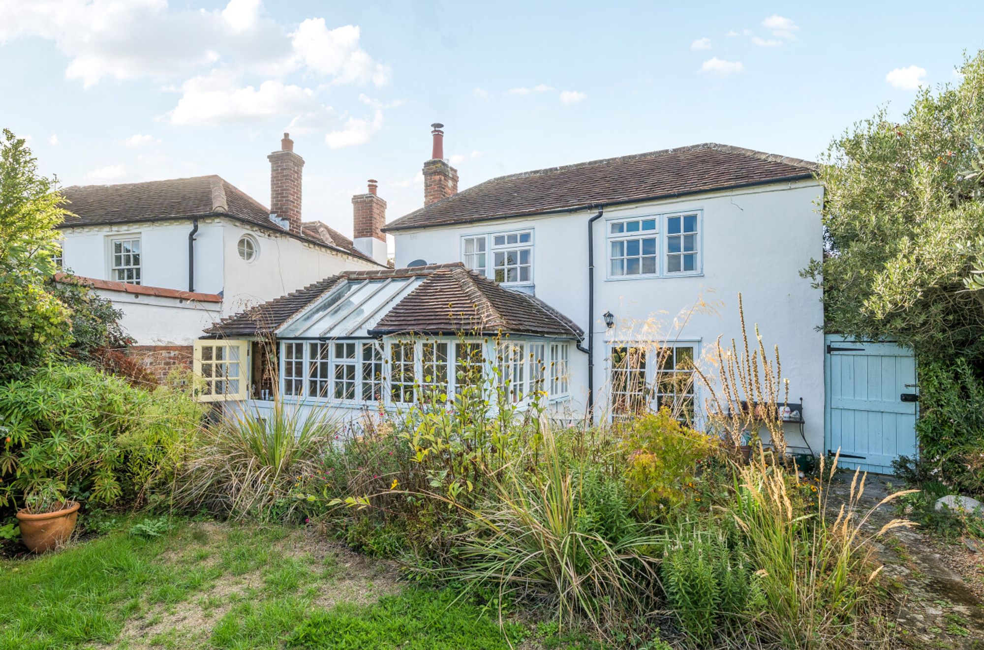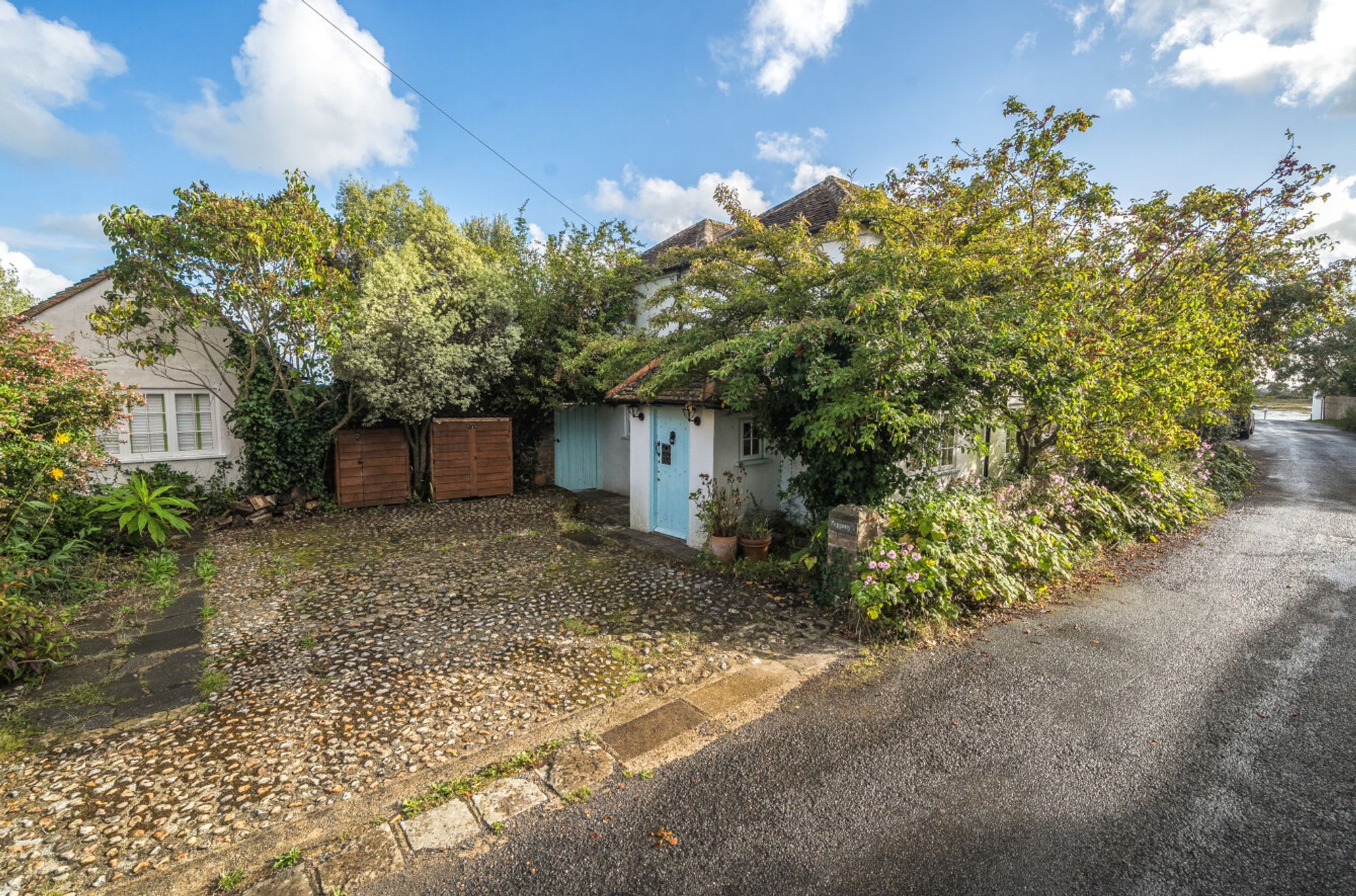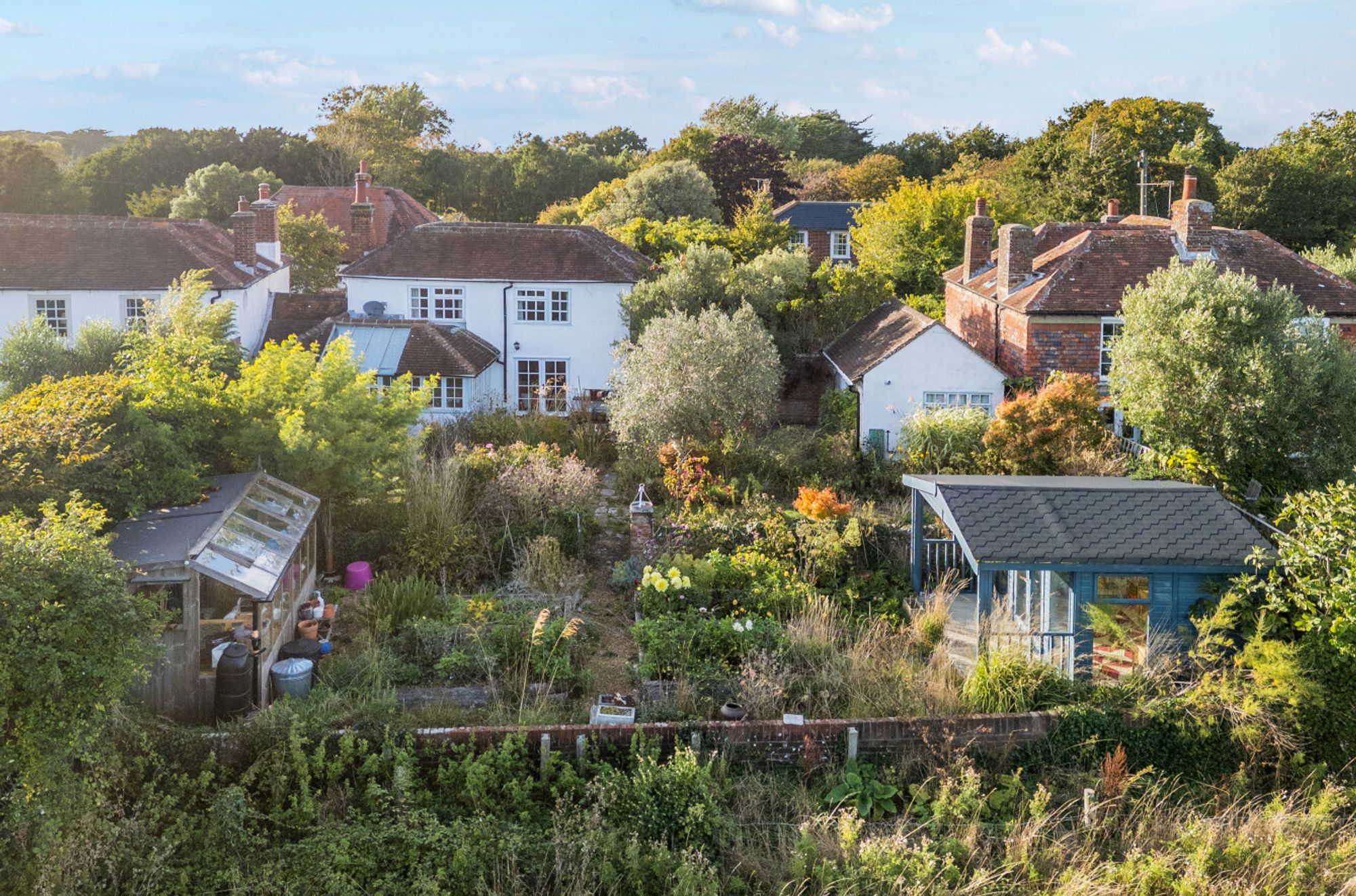 Outside, a flint-walled frontage and cobbled driveway provide parking for two cars. A side gate leads to the traditional south-facing garden, complete with patios, mature borders, raised sleeper beds for vegetables and a large timber framed greenhouse. At the far end there is a west aspect timber summerhouse.