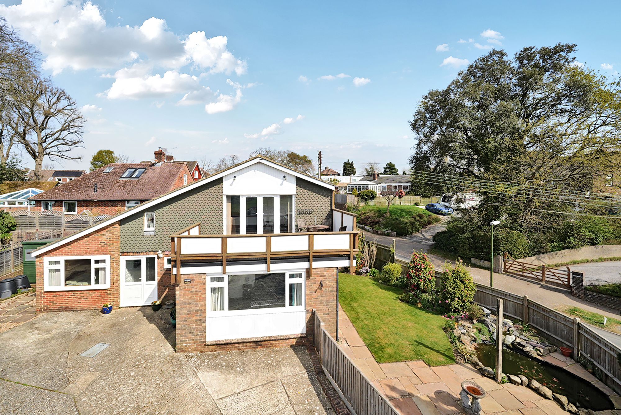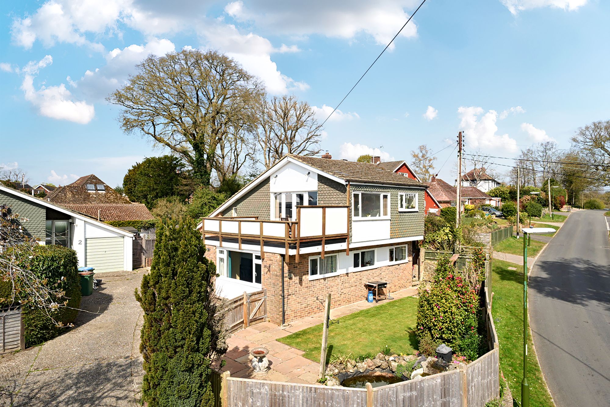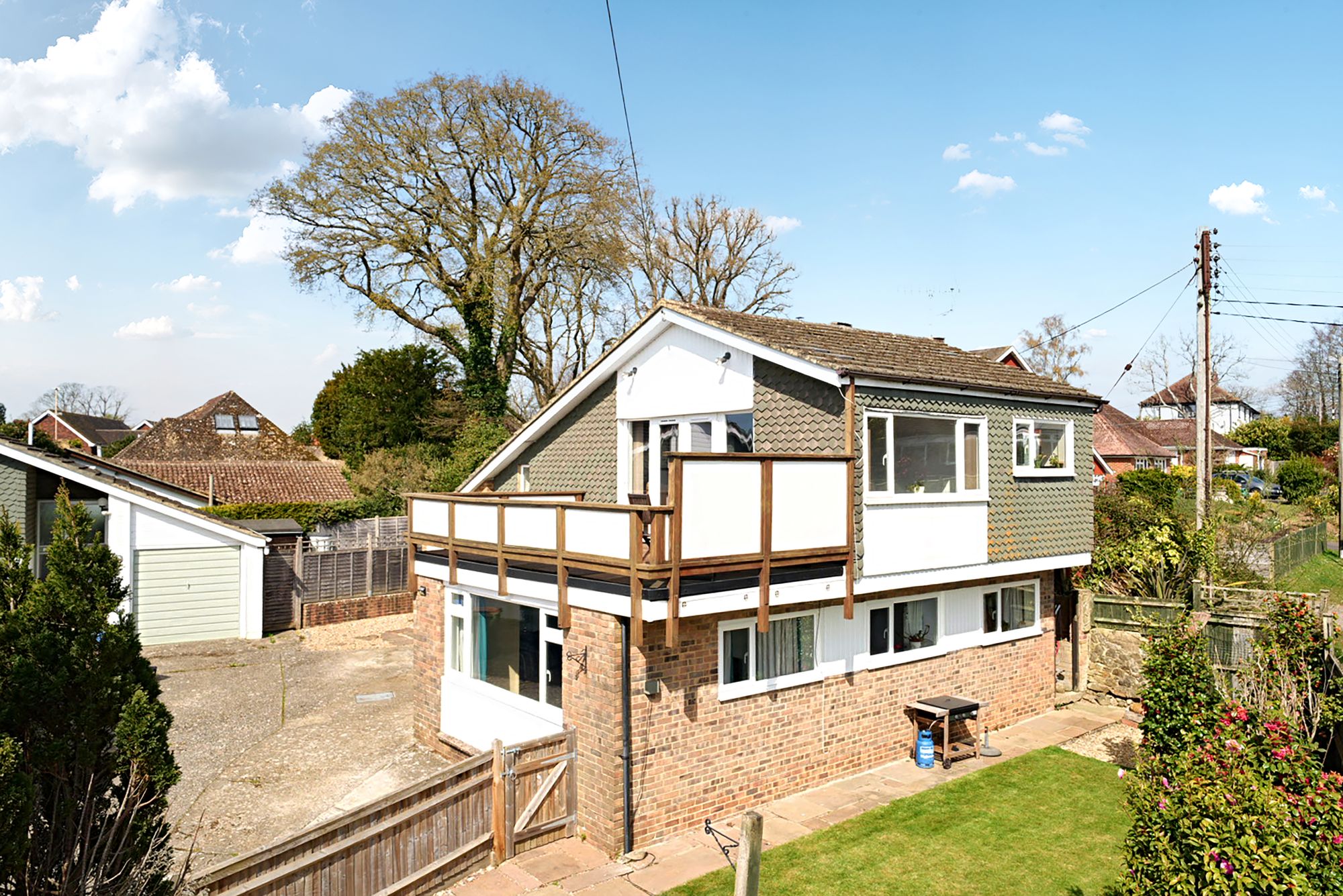 Located in the idyllic surroundings of Pulborough with spectacular views stretching over the Pulborough Wildbrooks and towards the South Downs. This unique 4 bedroom detached house offers a truly distinctive living experience. Designed in an upside-down style, the first floor boasts a spacious sitting room that provides a perfect vantage point to admire the views. The main bedroom features an en-suite shower room and dressing area with fitted wardrobes, while three additional double bedrooms, a family bathroom and additional cloakroom ensure ample accommodation space. The sitting/dining room opens onto a delightful roof terrace, offering a charming outlook ideal for relaxing or entertaining. The kitchen, complete with space for appliances, is a functional and bright inviting space. Parking is available for two vehicles, adding convenience for residents. This residence is within walking distance to the station, school, and shops, providing accessibility and convenience for daily life.