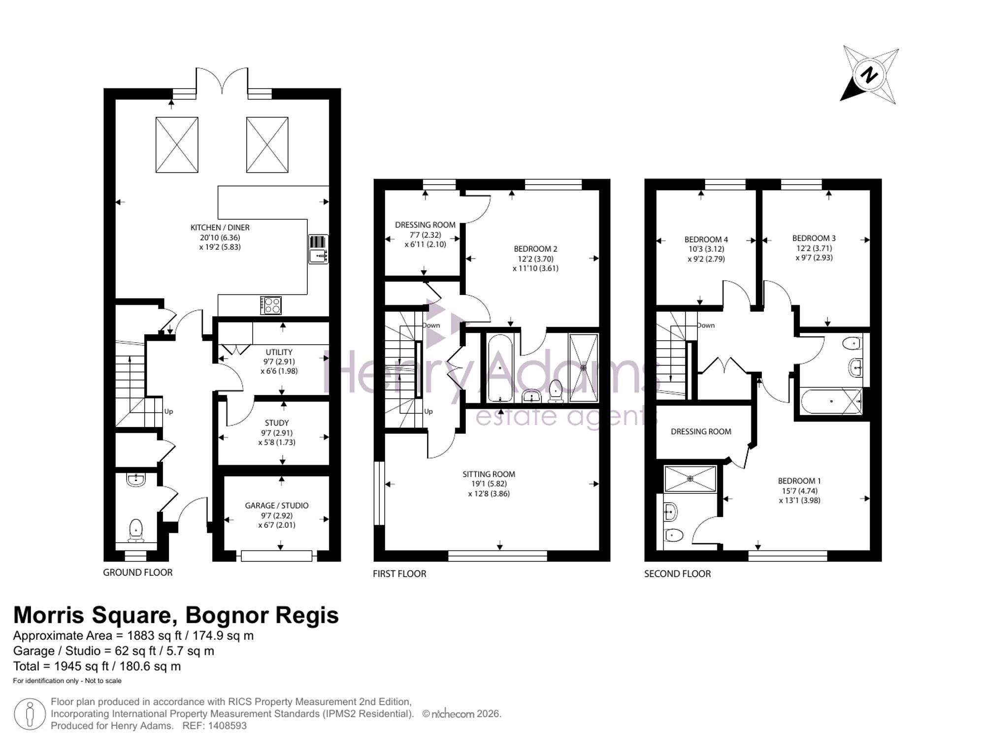 The first floor comprises a family sitting room and bedroom one with walk-in dressing room and quality en-suite bathroom with separate walk-in double shower. The second floor comprises three further double bedrooms with one of the bedrooms having an en-suite shower room and walk-in dressing area.