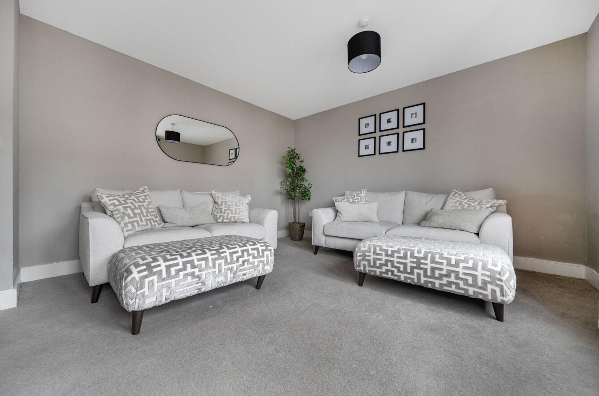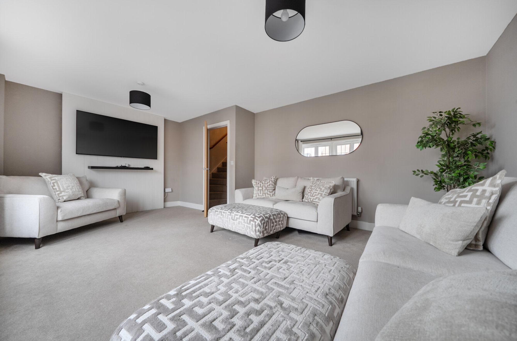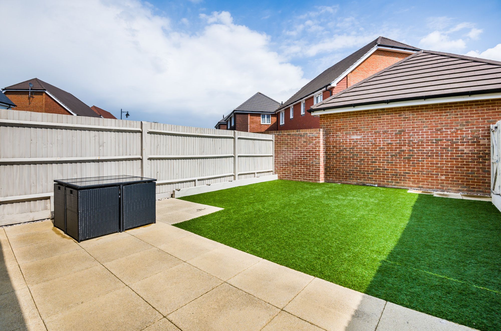 Outside, the front provides a double driveway and leads to the garage. The landscaped rear garden is laid to artificial lawn with patio area and gated rear access.