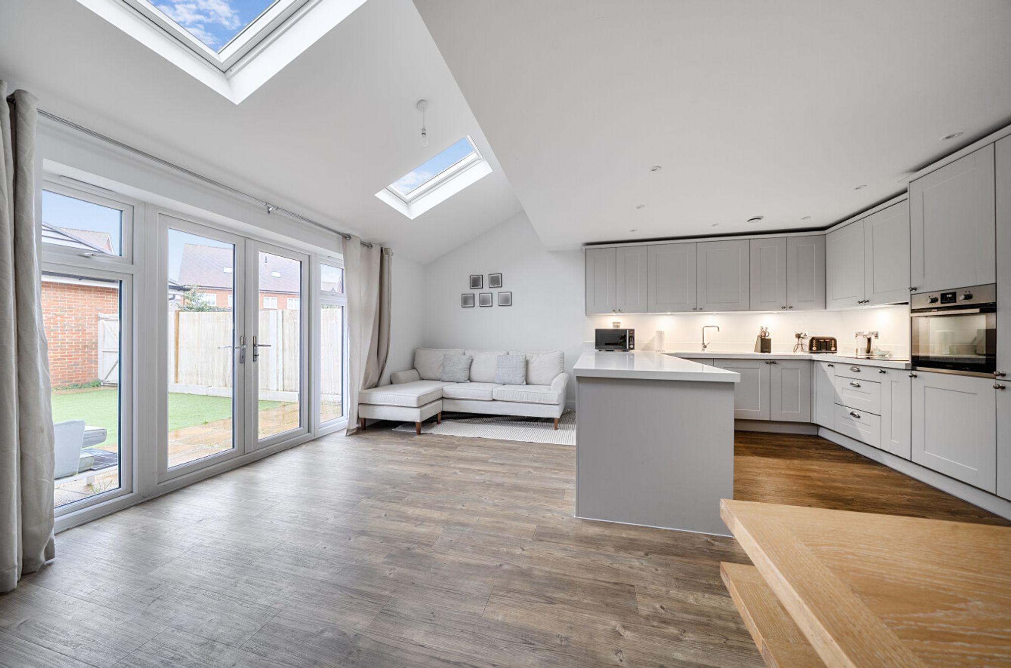 The accommodation comprises a spacious entrance hallway, which leads to the fully refitted kitchen open plan to the dining and family area with doors giving access to the rear garden, utility room with additional office space and cloakroom with WC.
