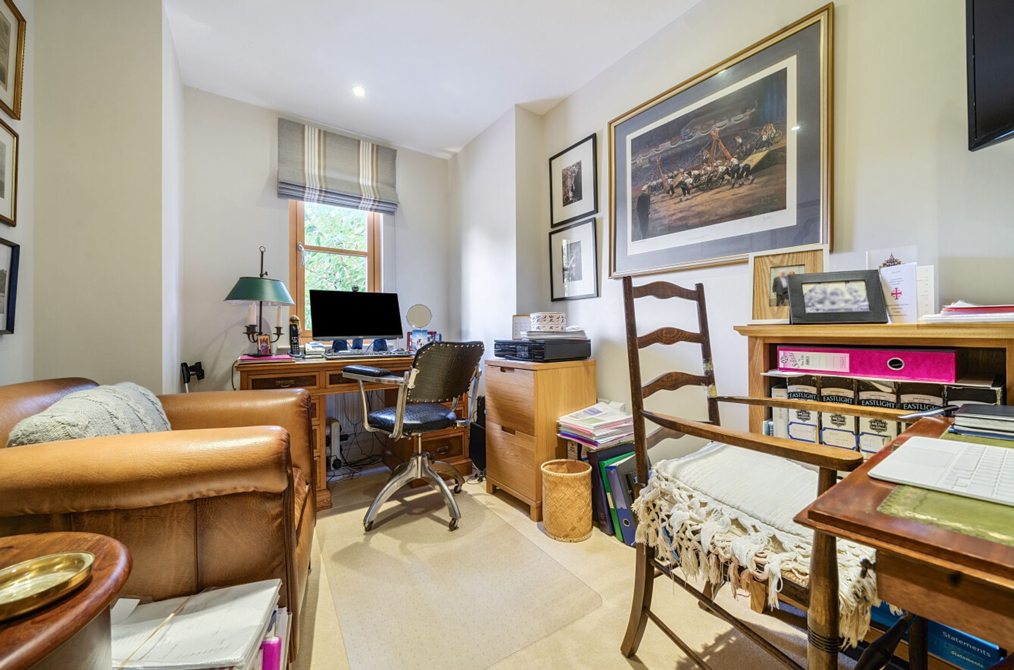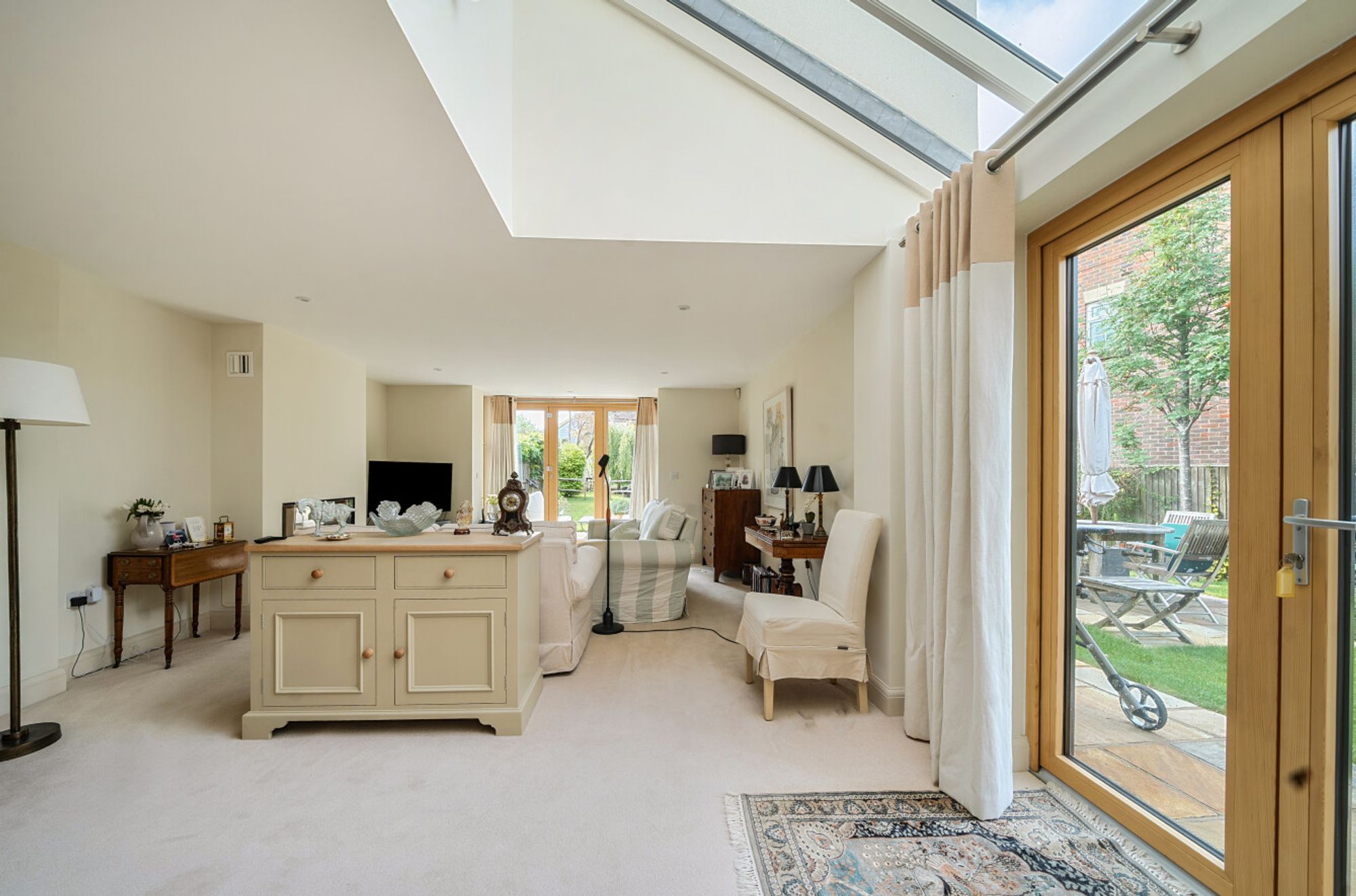 Completed in 2012, the property offers beautifully light and versatile accommodation. The ground floor features a spacious sitting room with a dual aspect and two sets of doors opening directly onto the gardens. The sleek kitchen/breakfast room, fitted with an extensive range of units and integrated appliances, also enjoys a triple aspect.