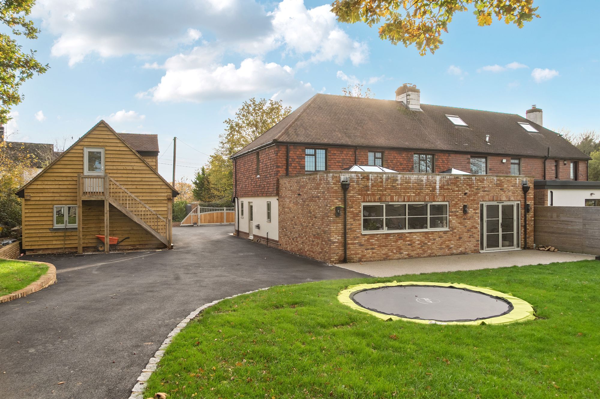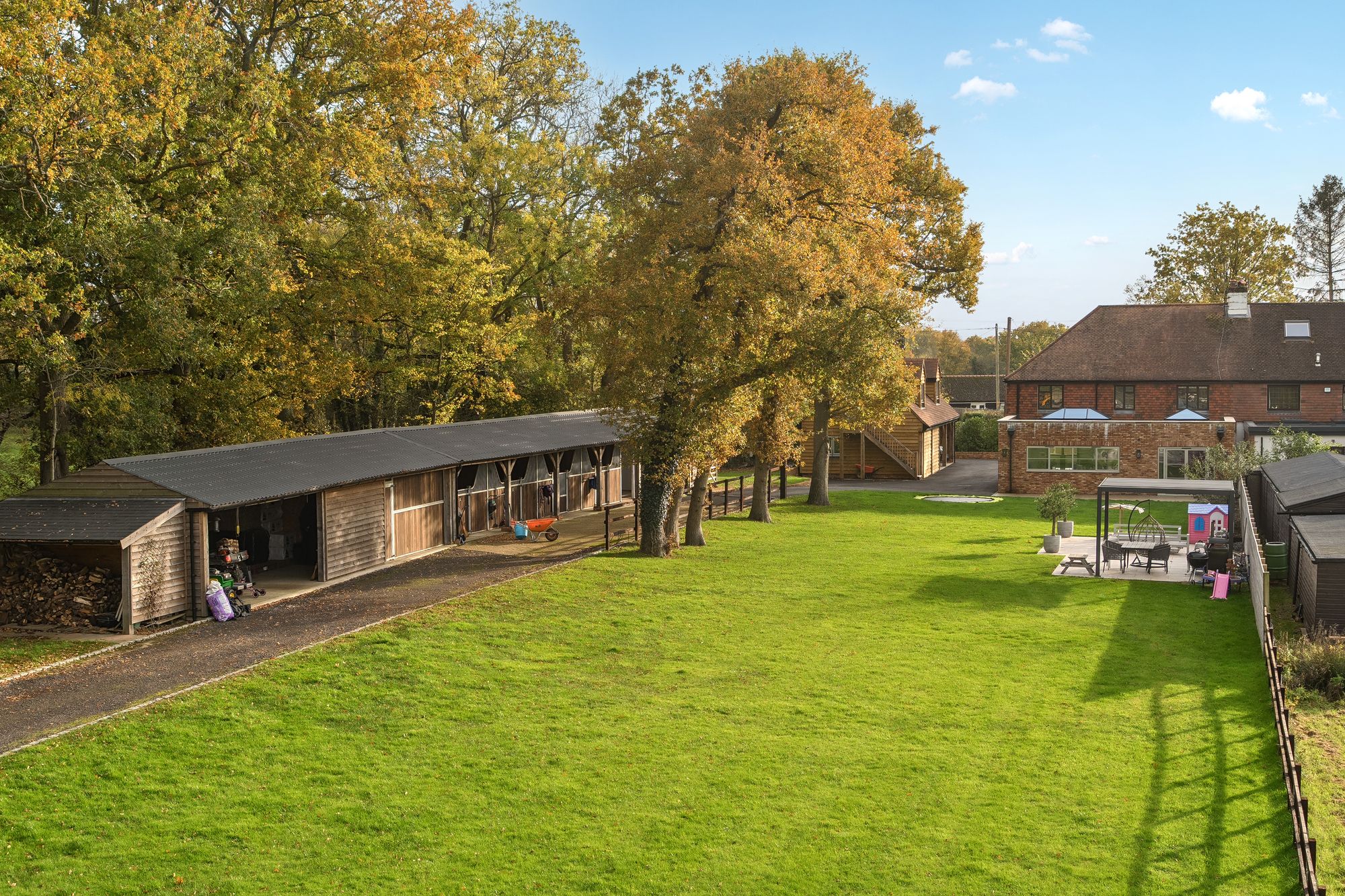 In a picturesque setting, this 4 Bedroom Semi Detached House offers elegance and modernity combined. This beautifully updated and renovated family home boasts equestrian land spanning just under 6 acres, with direct access to bridleways. Equipped with four Hancox stables, a wash bay with hot and cold running water, tack room with space for washing machine, boiler for the stable complex, storage cupboards, and a barn, each stable features automatic water drinkers. The vast land includes 3 paddocks with water drinkers, a 20 × 40 sand school with Day Equestrian sand and fibre mix, and ample parking for a horsebox. There is direct access from the north west of the land onto the surrounding bridleways ideal for hacking with your horse or walking for your dogs. A large patio area with a pergola sets the stage for outdoor gatherings, complemented by an ideal outdoor kitchen space complete with electricity and water. The property boasts exclusive features such as electric double gates leading to the driveway, a double bay car barn with a spacious gym or additional car storage, and potential first-floor living accommodation that is finished to first fix.