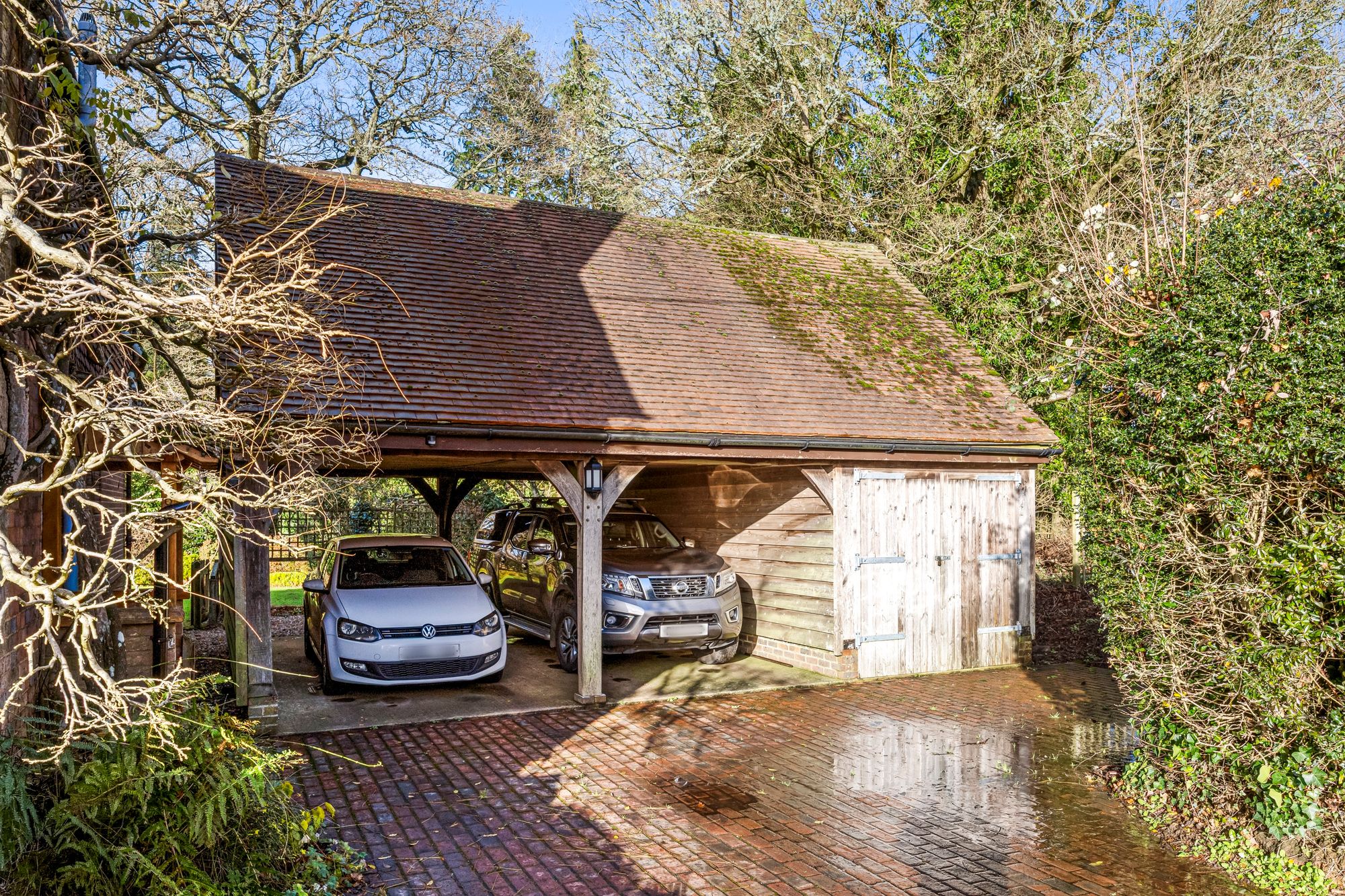 Externally, the property provides ample driveway parking for several vehicles, leading to a barn-style double bay open garage, together with an adjoining lockable garage and store. Above the garage is a useful additional room, ideal for a home office, studio, or potential ancillary accommodation.