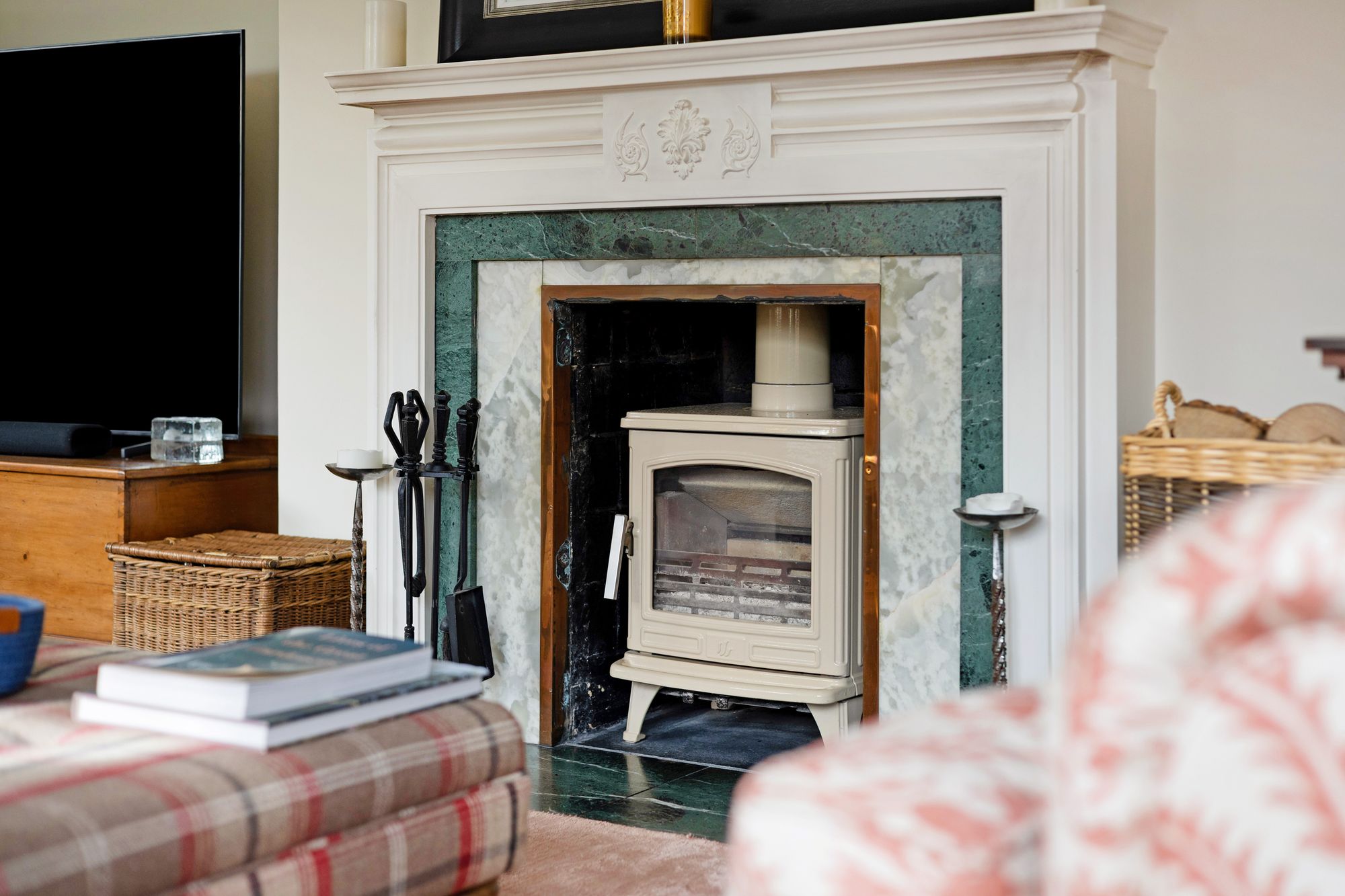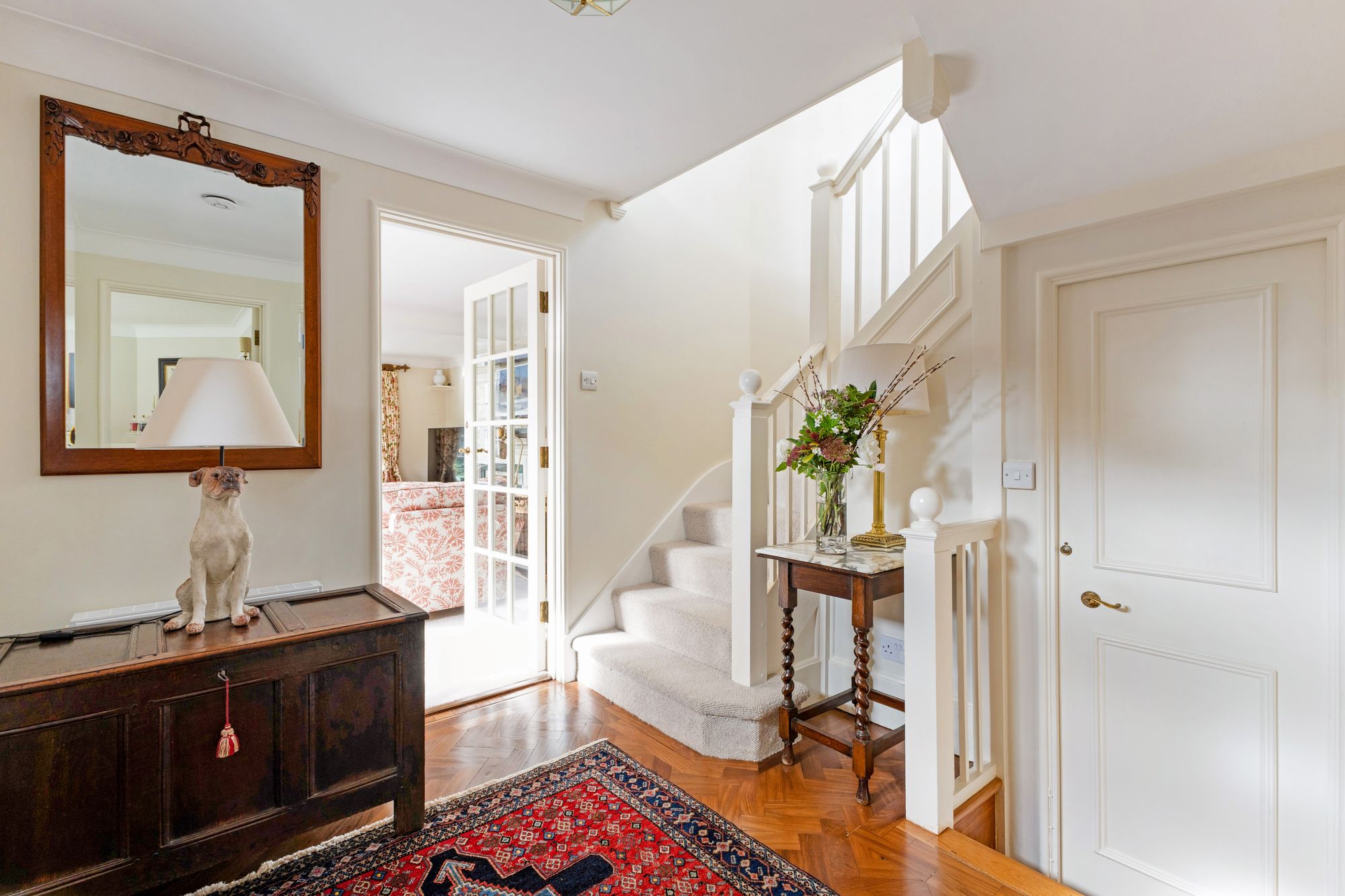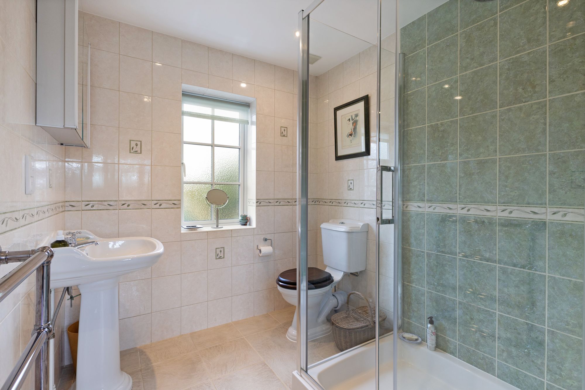 On the first floor are three generously proportioned double bedrooms, all with built-in wardrobes. The principal bedroom enjoys a dual aspect and its own en suite shower room, while a spacious family bathroom serves the remaining bedrooms, featuring both a bath and a walk in wet room with rain shower. Both the principal bedroom suite and the sitting room enjoy outstanding views across the village green.
