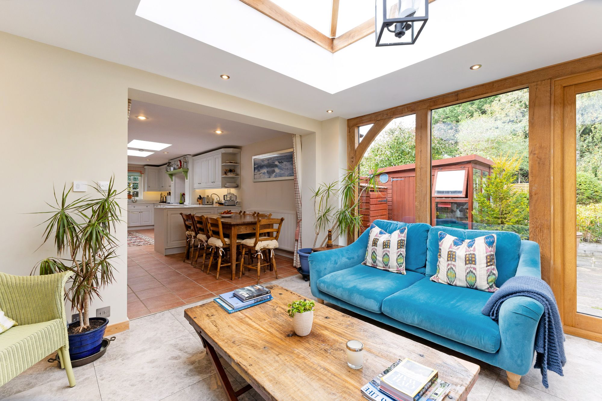 The house is entered via a generous entrance hall, immediately setting the tone for this welcoming and adaptable family home. To one side, the dual-aspect sitting room is beautifully light-filled, centred around a log burner and enhanced by a charming bay window, creating a warm and inviting atmosphere. Opposite, the formal dining room also benefits from a bay window, offering an elegant space ideal for entertaining.