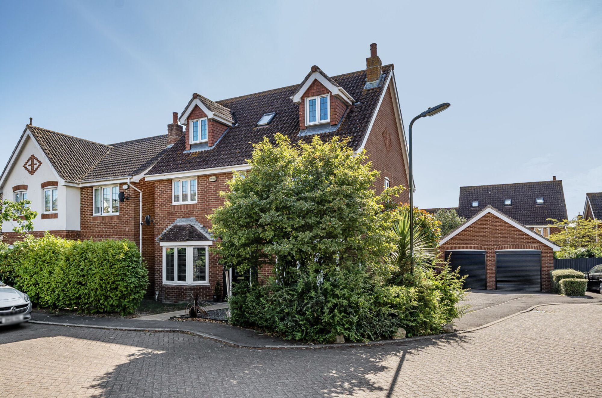 Occupying a generous plot in a quiet cul-de-sac, this substantial detached residence is beautifully arranged over three floors and offers five well-proportioned double bedrooms, a superb detached double garage and thoughtfully designed living spaces throughout.