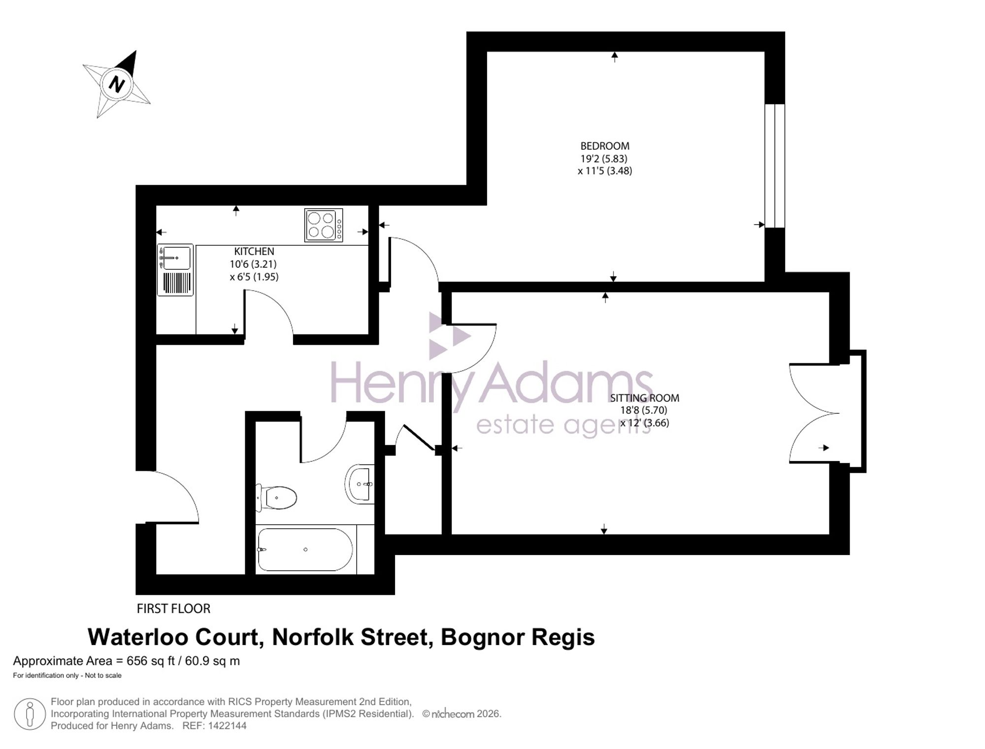 The generous sitting room features a Juliette balcony, allowing natural light to flood the space. The well-proportioned bedroom offers ample room for furnishings, while the bathroom is fitted with a modern three piece suite, ensuring comfort and convenience. The kitchen is designed for practicality and includes ample storage and worktop space.