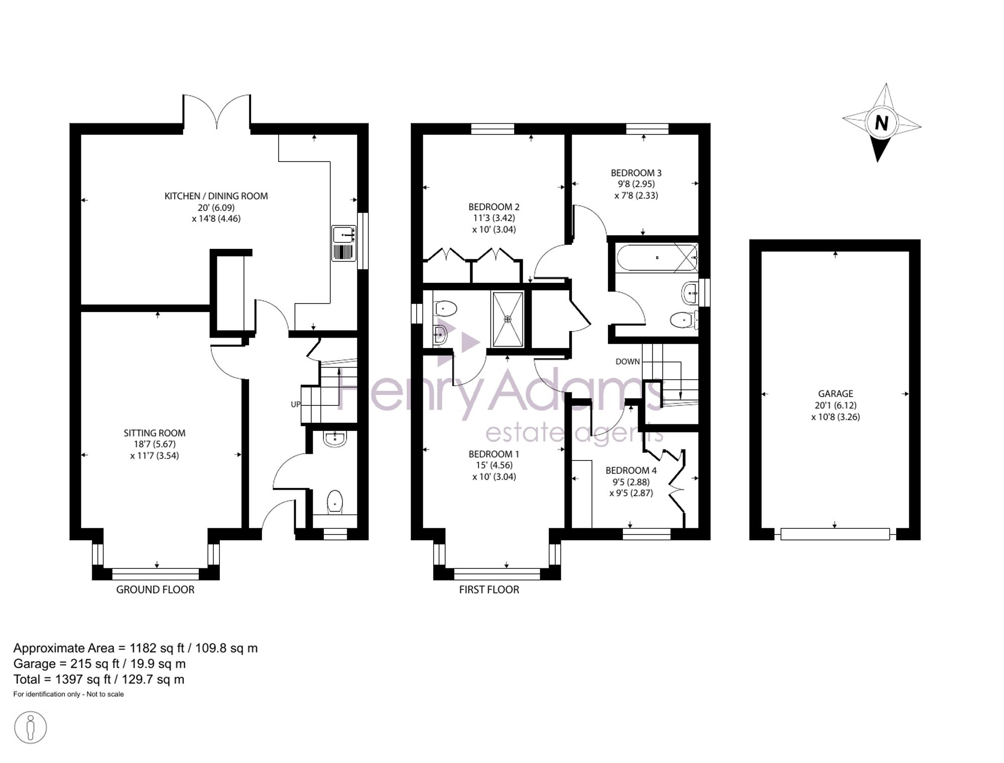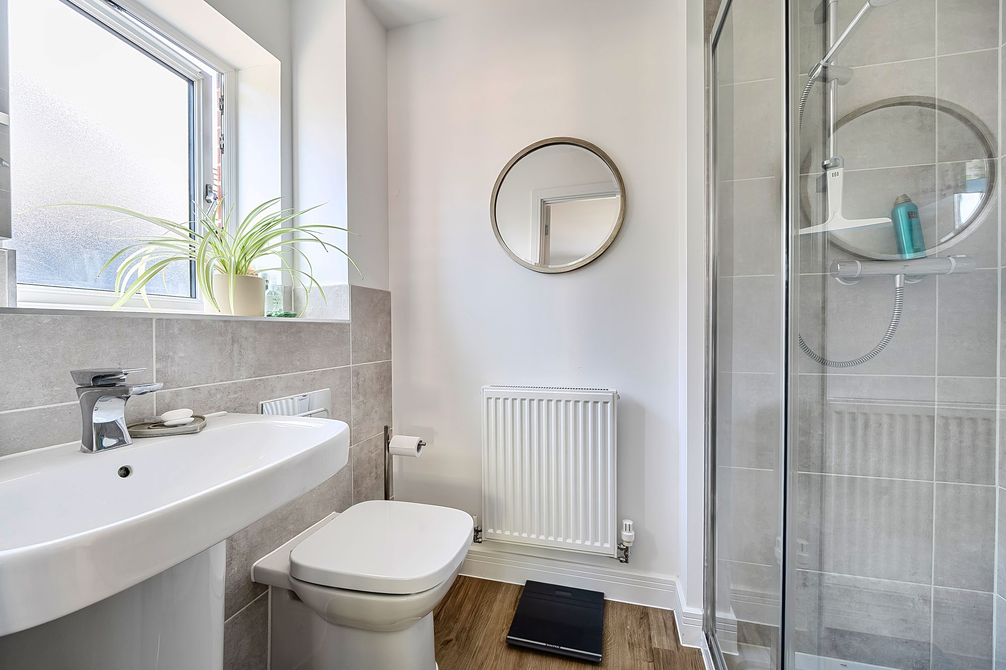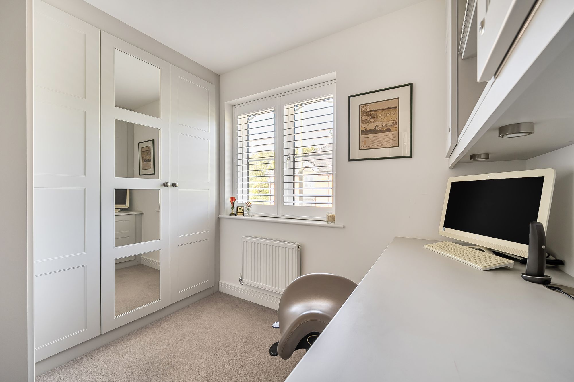 The sitting room enjoys a charming bay window that floods the space with natural light, creating a cosy and inviting area for relaxing with family and friends. A welcoming entrance hall and convenient cloakroom complete the ground floor. Upstairs, there are four well-proportioned bedrooms and a modern family bathroom. The principal bedroom features a sleek en-suite, while the second and fourth bedrooms benefit from exceptional fitted wardrobes. The fourth bedroom can also be used as a home study/office.