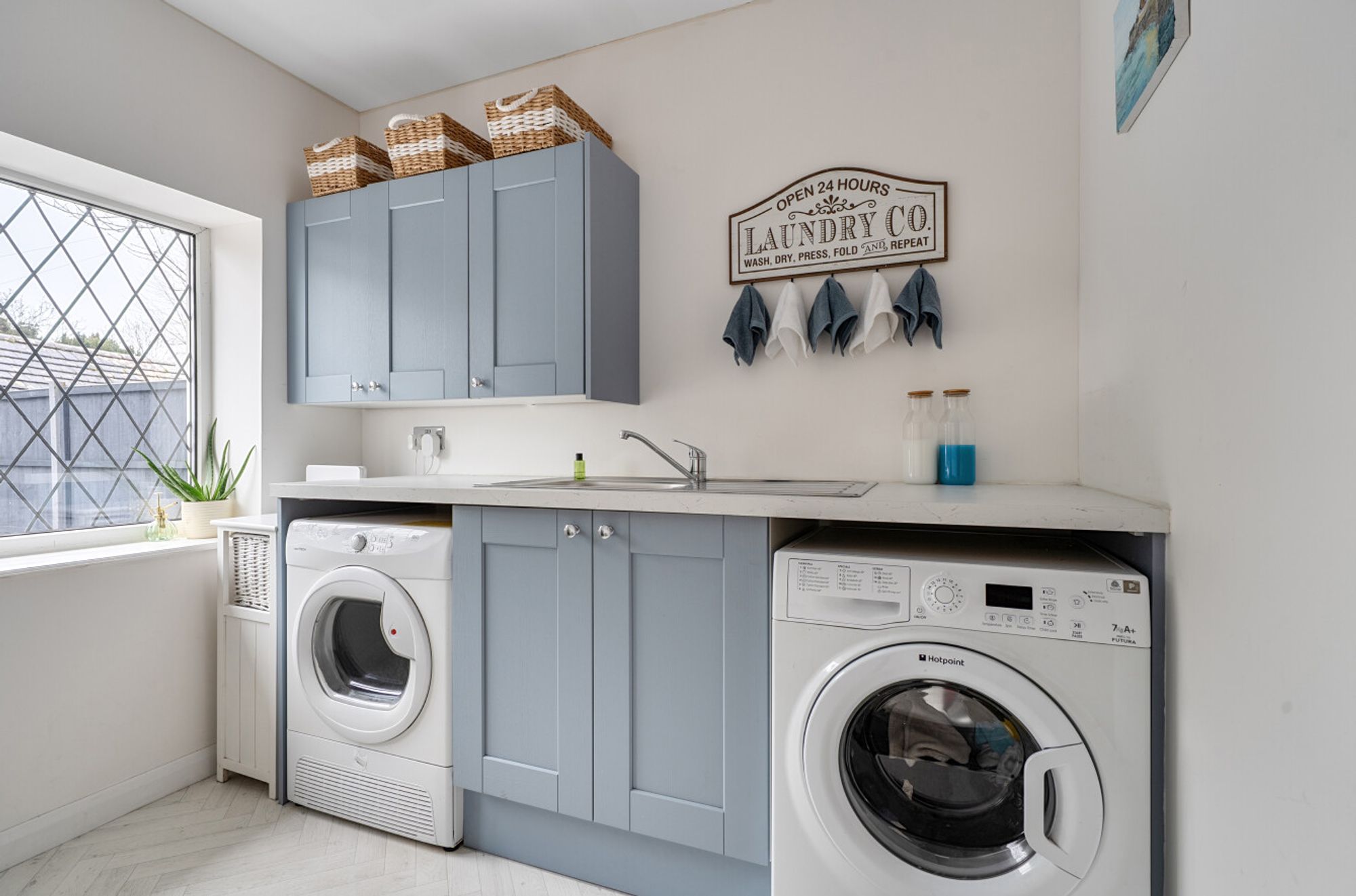 The flexible layout includes four well-proportioned bedrooms, two on the ground floor and two on the converted first floor, each finished to a high standard and offering comfortable accommodation for family members or guests. Two stylish bathrooms (one on each floor) cater to the needs of a busy household, both featuring contemporary suites and quality fixtures.