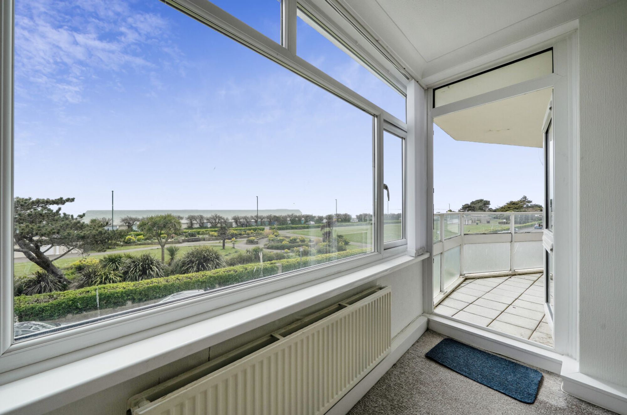This impressive second floor apartment offers a great opportunity to enjoy direct sea views from its private balcony, perfectly positioned to overlook the picturesque Marine Park Gardens. The property features two spacious double bedrooms, each with fitted wardrobes providing ample storage.