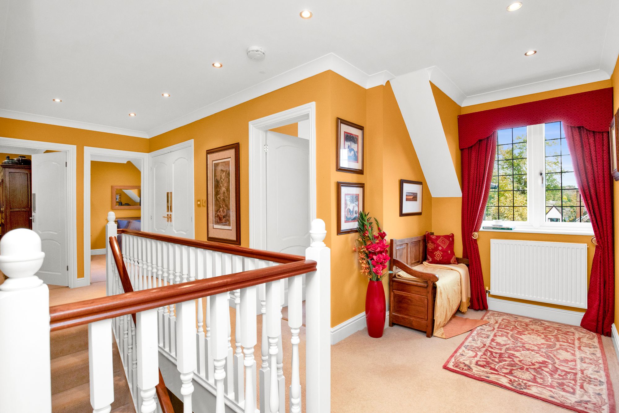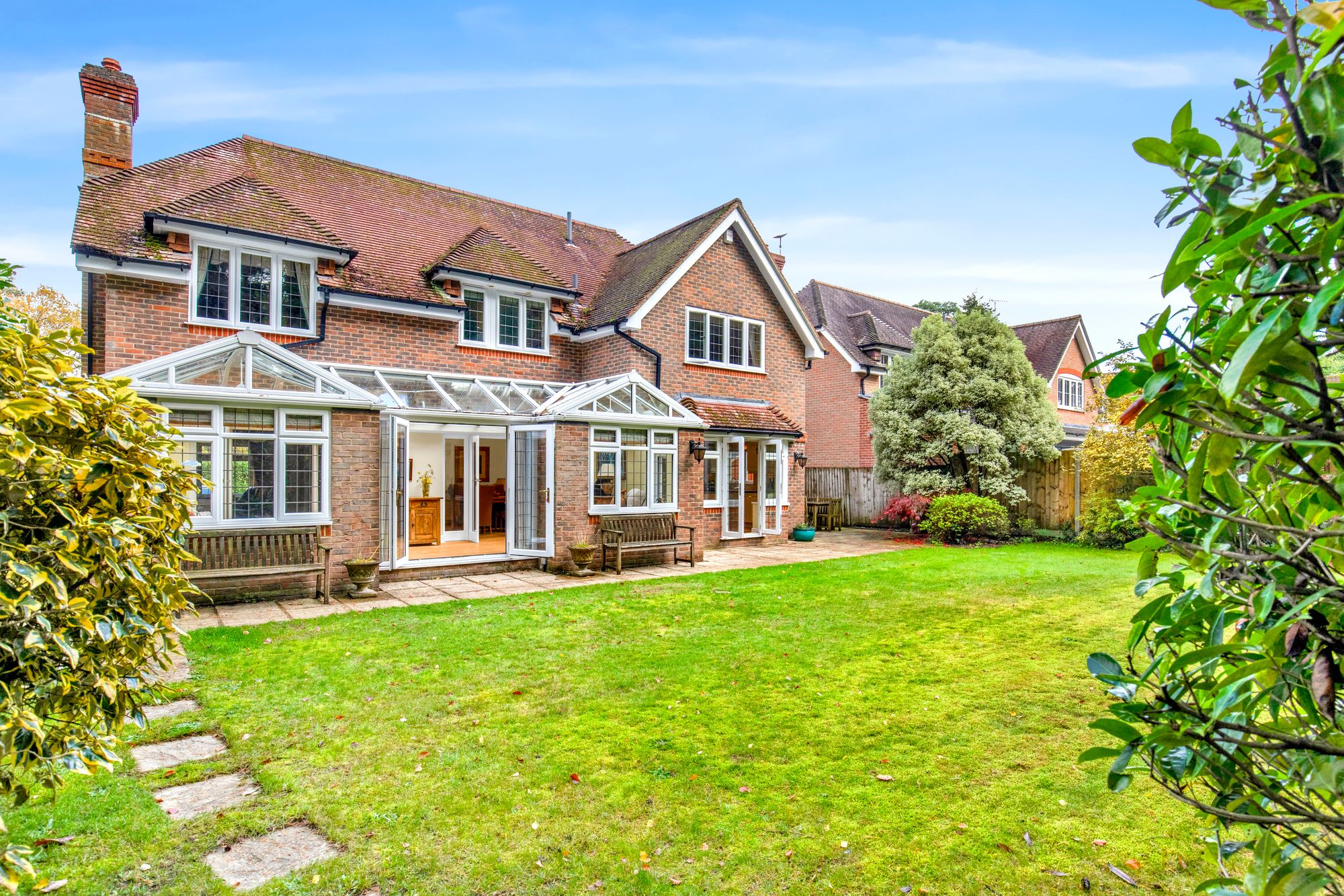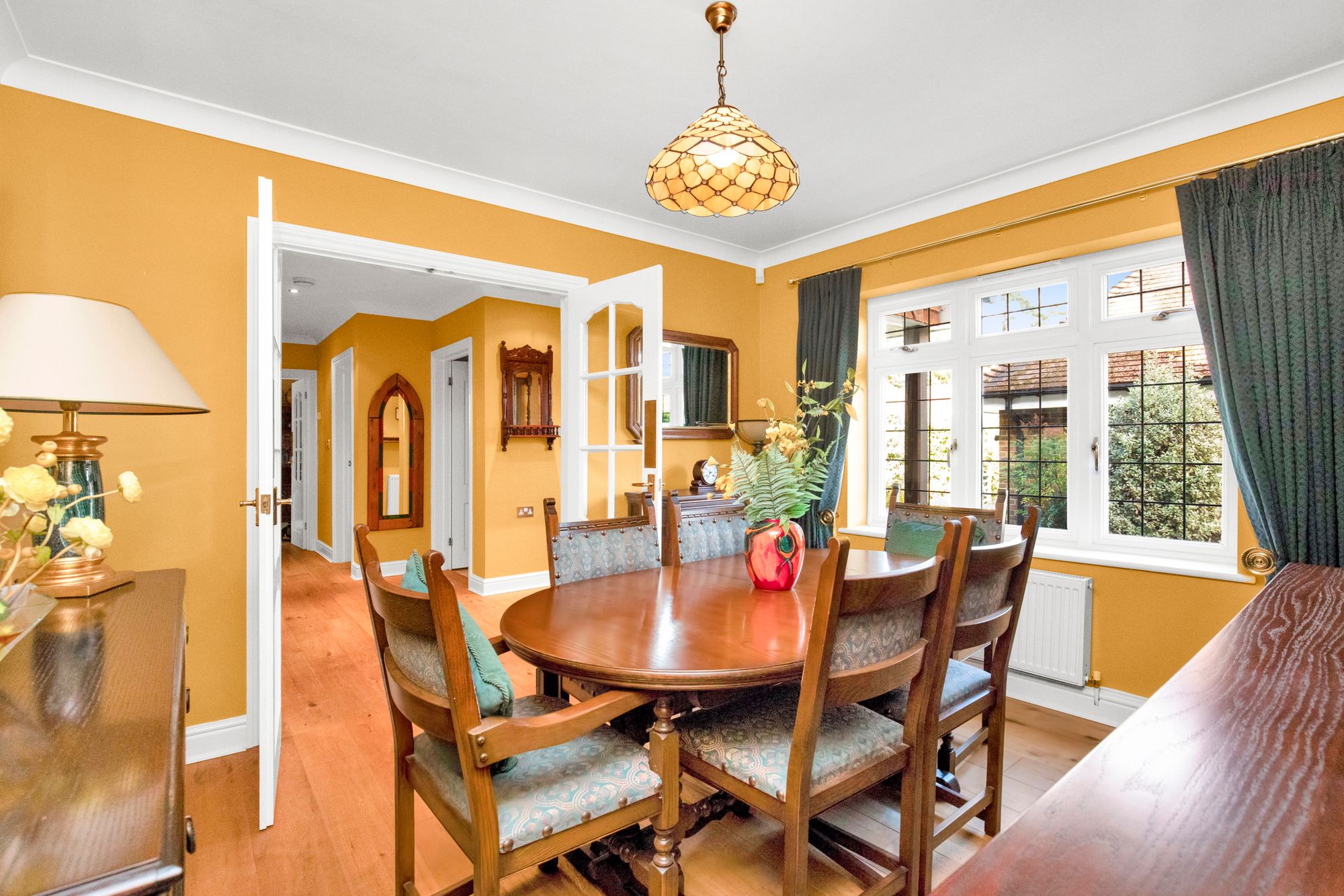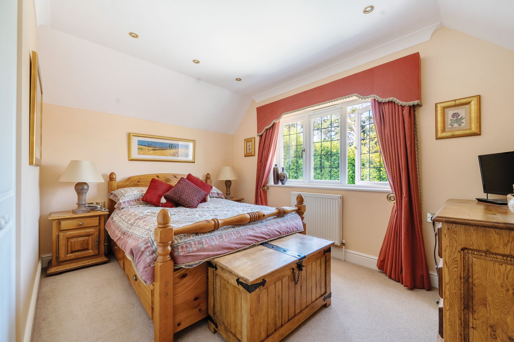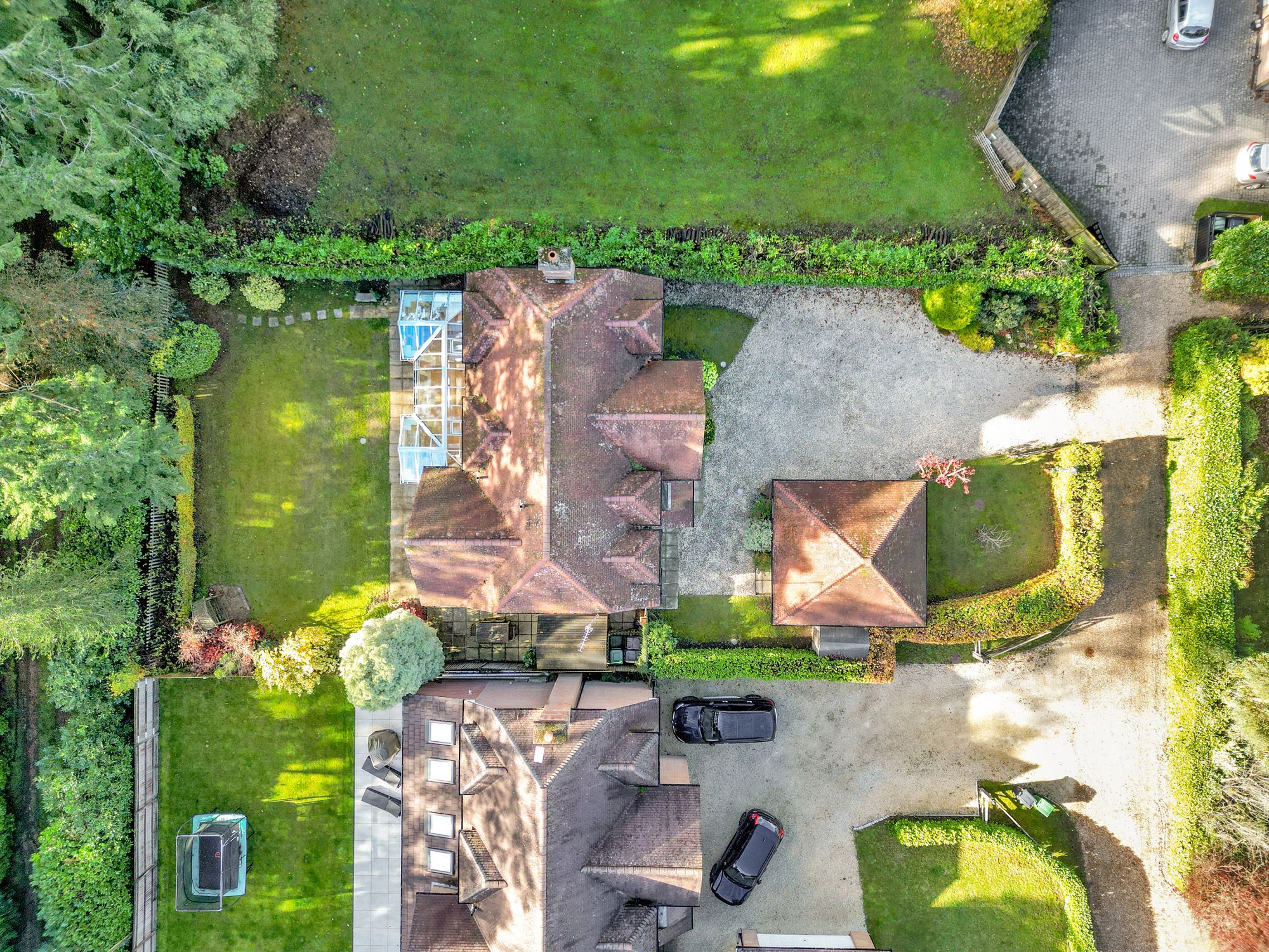 You approach the property down a private unmade gravel road where a five bar gate opens into an expansive driveway, providing parking for 5/6 cars with parking for two further vehicles courtesy of the detached double garage which has power and light as well as eaves storage. The detached garage provides potential (subject to planning approval) to convert the eaves space to provide a home office, as other homes in the area have done. The house features a large hallway off which is a downstairs cloakroom, kitchen, utility and a total of five reception rooms. To the front of the house is a family room and study, whilst running front to back is a generous sitting room which adjoins a fabulous garden room with double doors opening onto the terrace. The garden room has double doors into the dining room which is open to the comprehensively fitted kitchen with island and double doors onto the terrace. Upstairs a spacious landing gives access to five generously proportioned bedrooms. The principal bedroom boasts an en-suite bathroom, the second bedroom an en-suite shower room in addition to a large family bathroom.