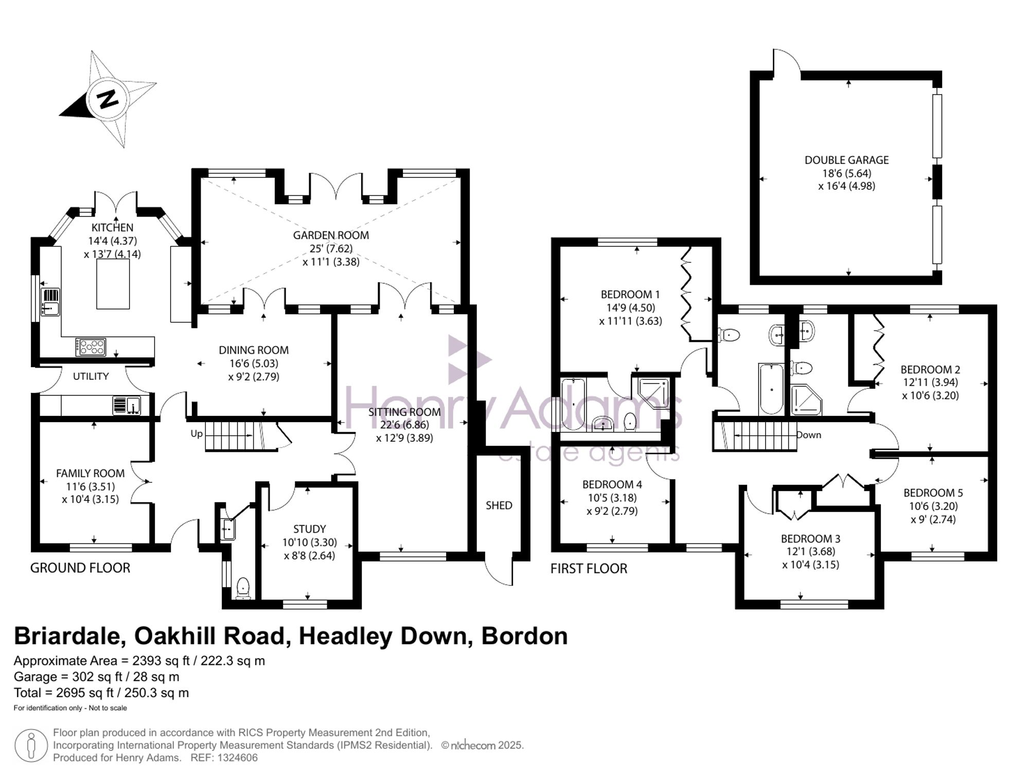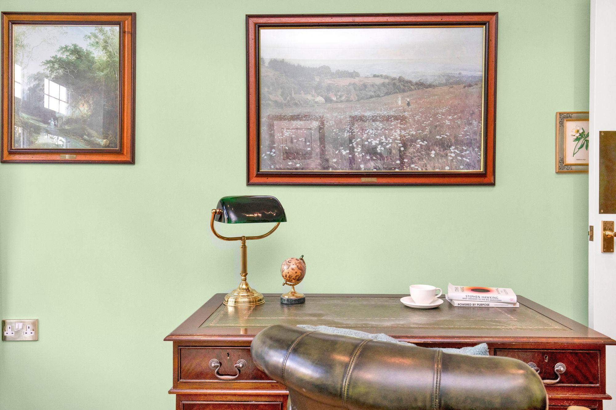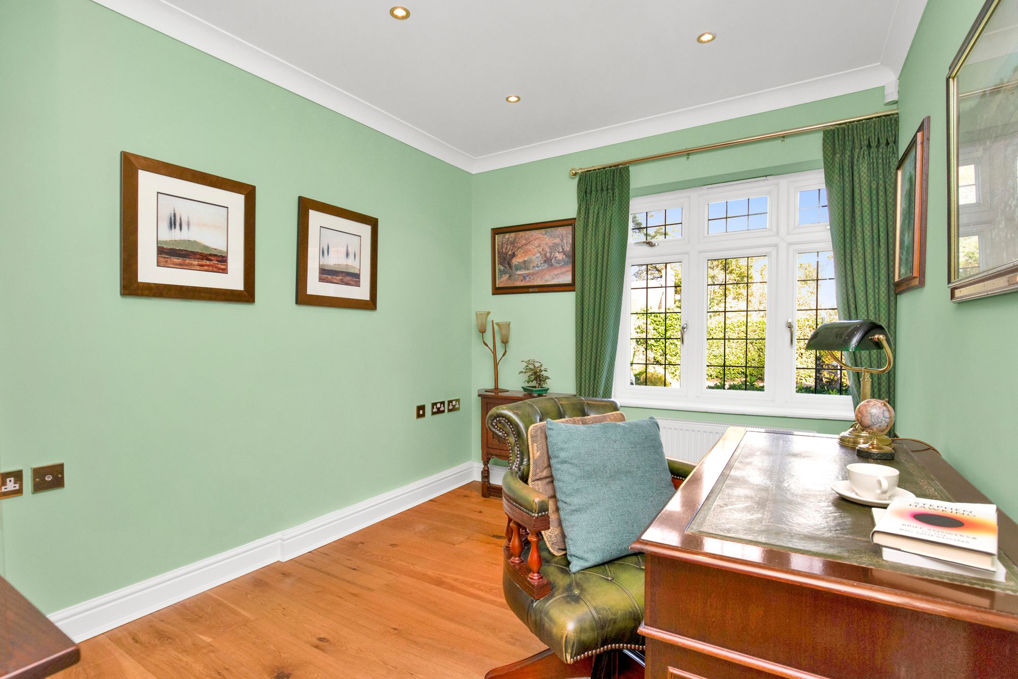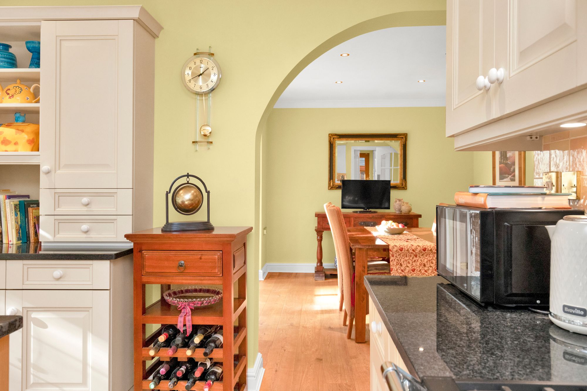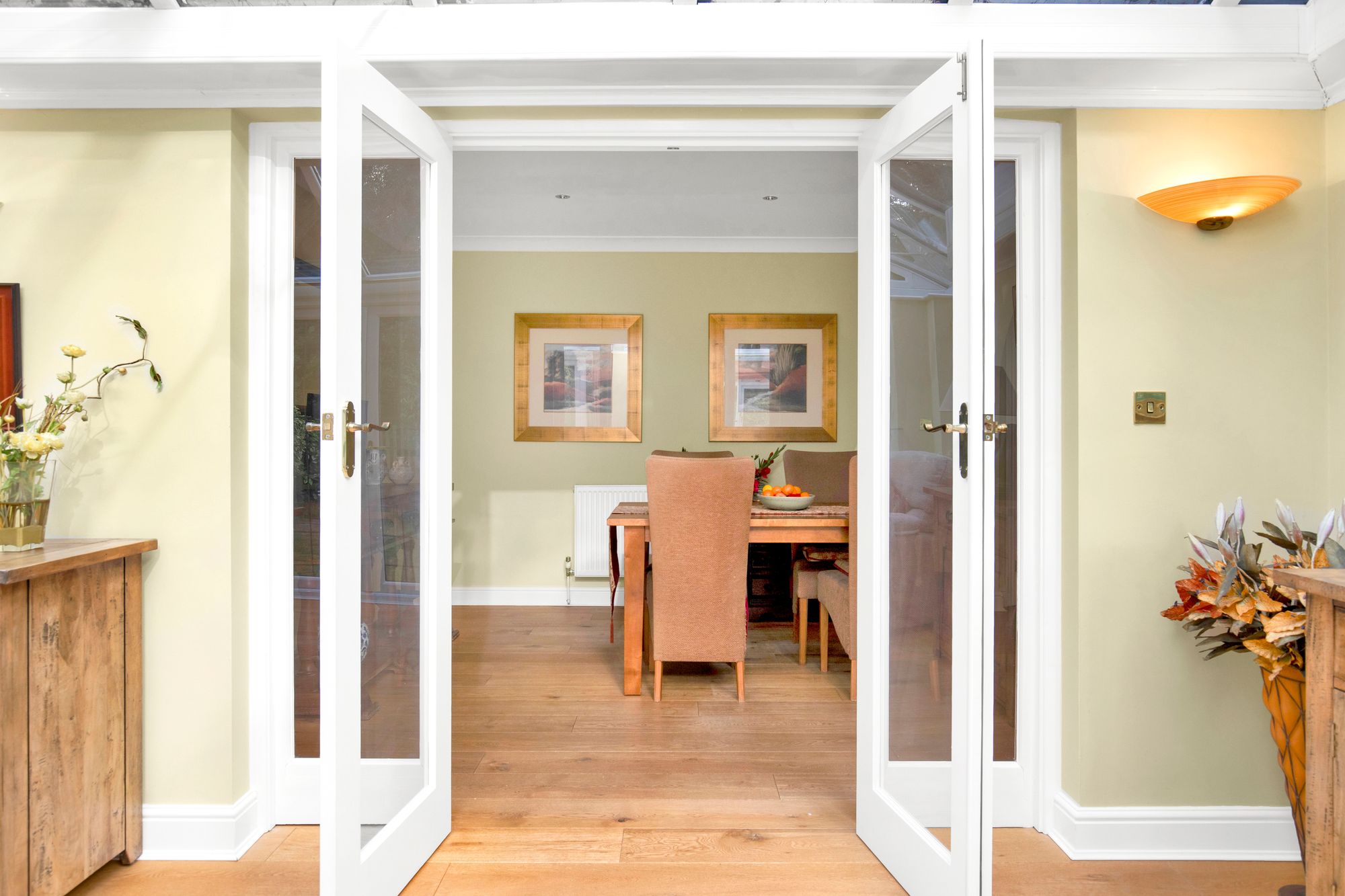You approach the property down a private unmade gravel road where a five bar gate opens into an expansive driveway, providing parking for 5/6 cars with parking for two further vehicles courtesy of the detached double garage which has power and light as well as eaves storage. The detached garage provides potential (subject to planning approval) to convert the eaves space to provide a home office, as other homes in the area have done. The house features a large hallway off which is a downstairs cloakroom, kitchen, utility and a total of five reception rooms. To the front of the house is a family room and study, whilst running front to back is a generous sitting room which adjoins a fabulous garden room with double doors opening onto the terrace. The garden room has double doors into the dining room which is open to the comprehensively fitted kitchen with island and double doors onto the terrace. Upstairs a spacious landing gives access to five generously proportioned bedrooms. The principal bedroom boasts an en-suite bathroom, the second bedroom an en-suite shower room in addition to a large family bathroom.