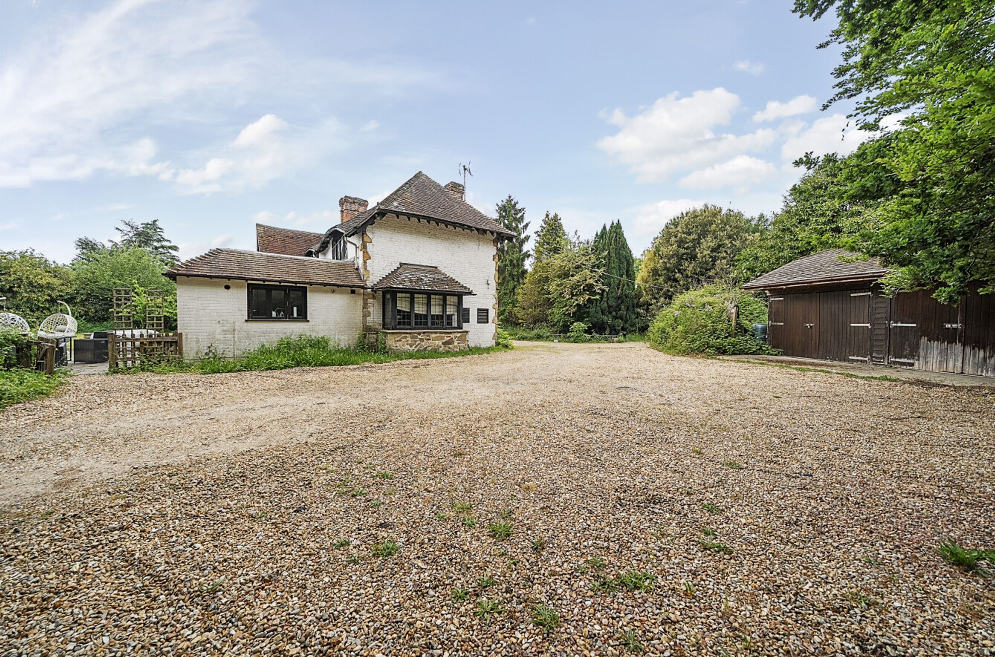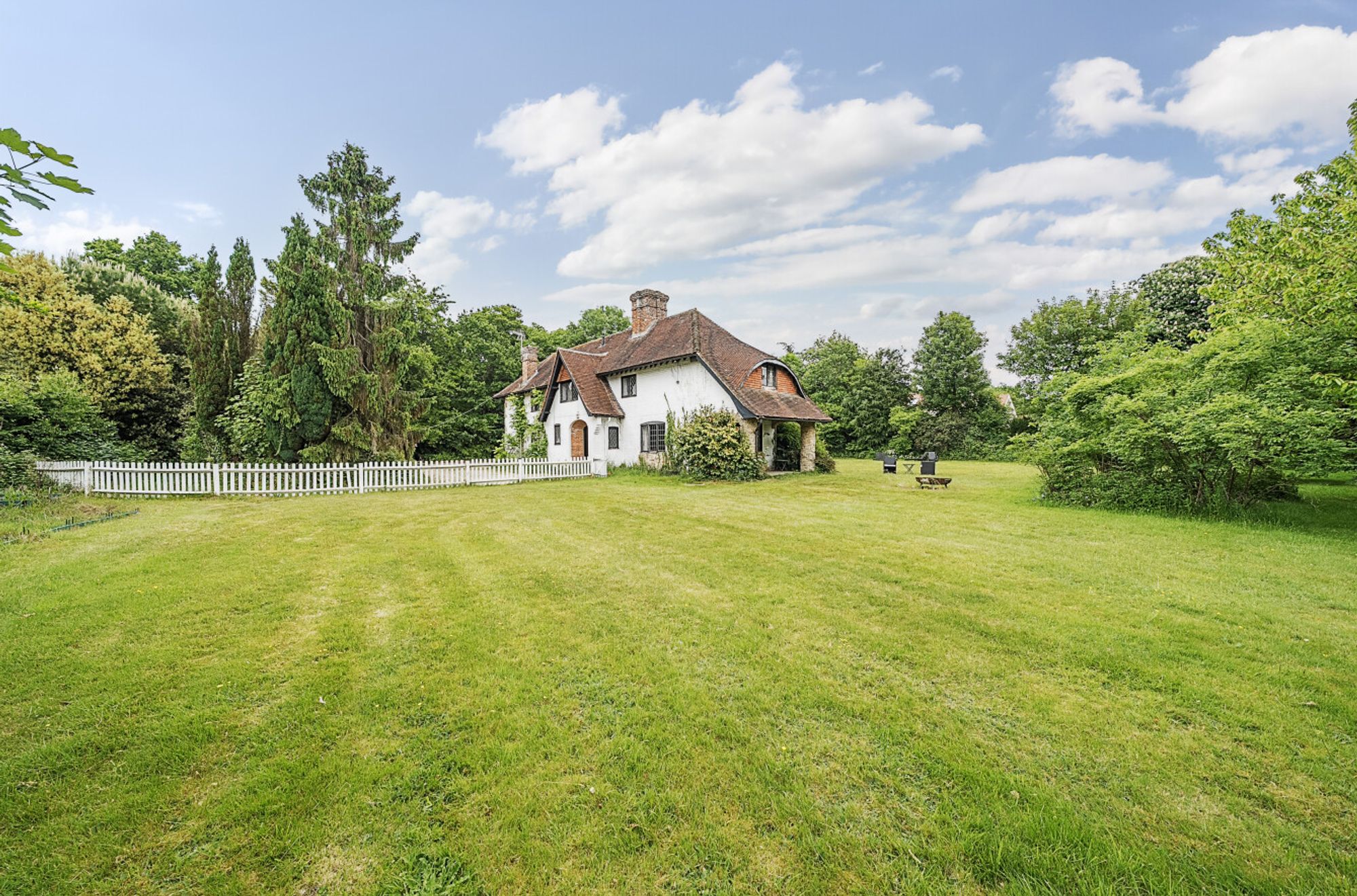 Centrally positioned within a mature plot extending to 1.13 acres, this individually designed Arts and Crafts residence is steeped in charm and character. The property is believed to date from the period between the wars and is built in a distinctive Tudor style, featuring oak beams, thumb latch doors, leaded light windows and Tudor style fireplaces.