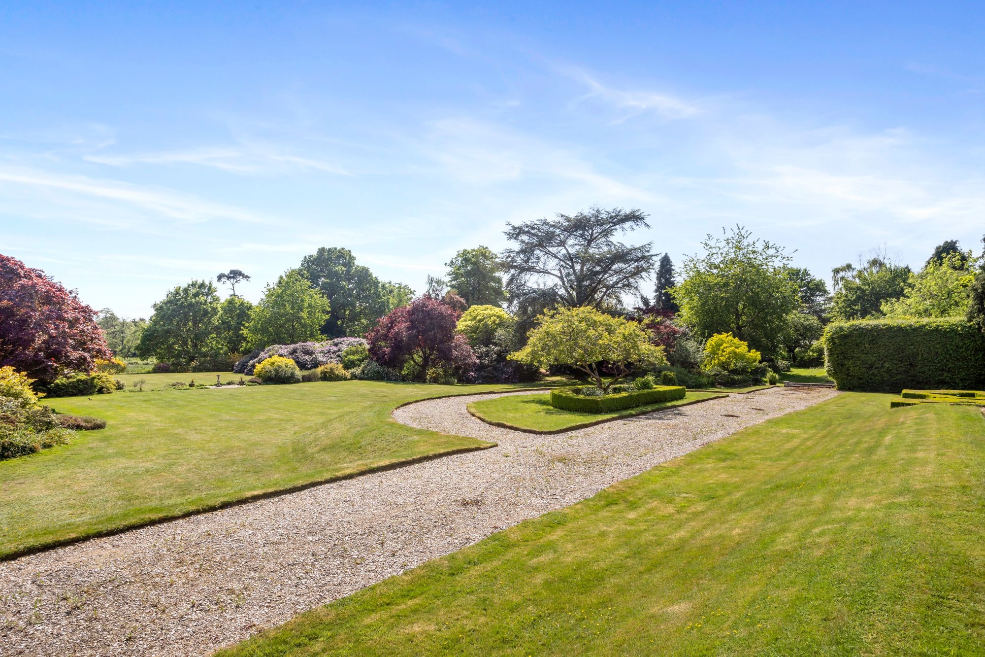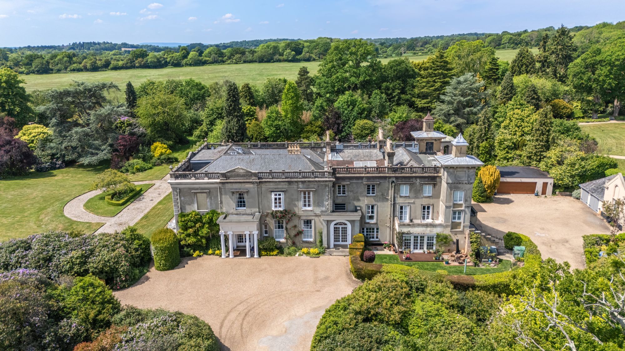 Holbrook Park is accessed via a sweeping gravel driveway which provides parking and access for other residents, the private gardens adjacent and specific to the property are superbly landscaped and offer large expanses of well kept lawns as well as sweeping vistas and a selection of mature trees, exotic shrubbery and generous planting, there is also a detached double garage and in total there is a plot size of 2.9 acres (approx..). A patio terrace area is sighted on the south elevation of the property which provides the ideal place for outdoor dining and entertaining within the summer months and as well as a place to enjoy stunning views over the adjoining gardens and countryside beyond.