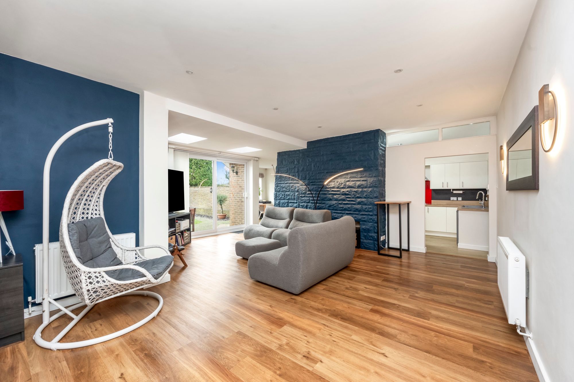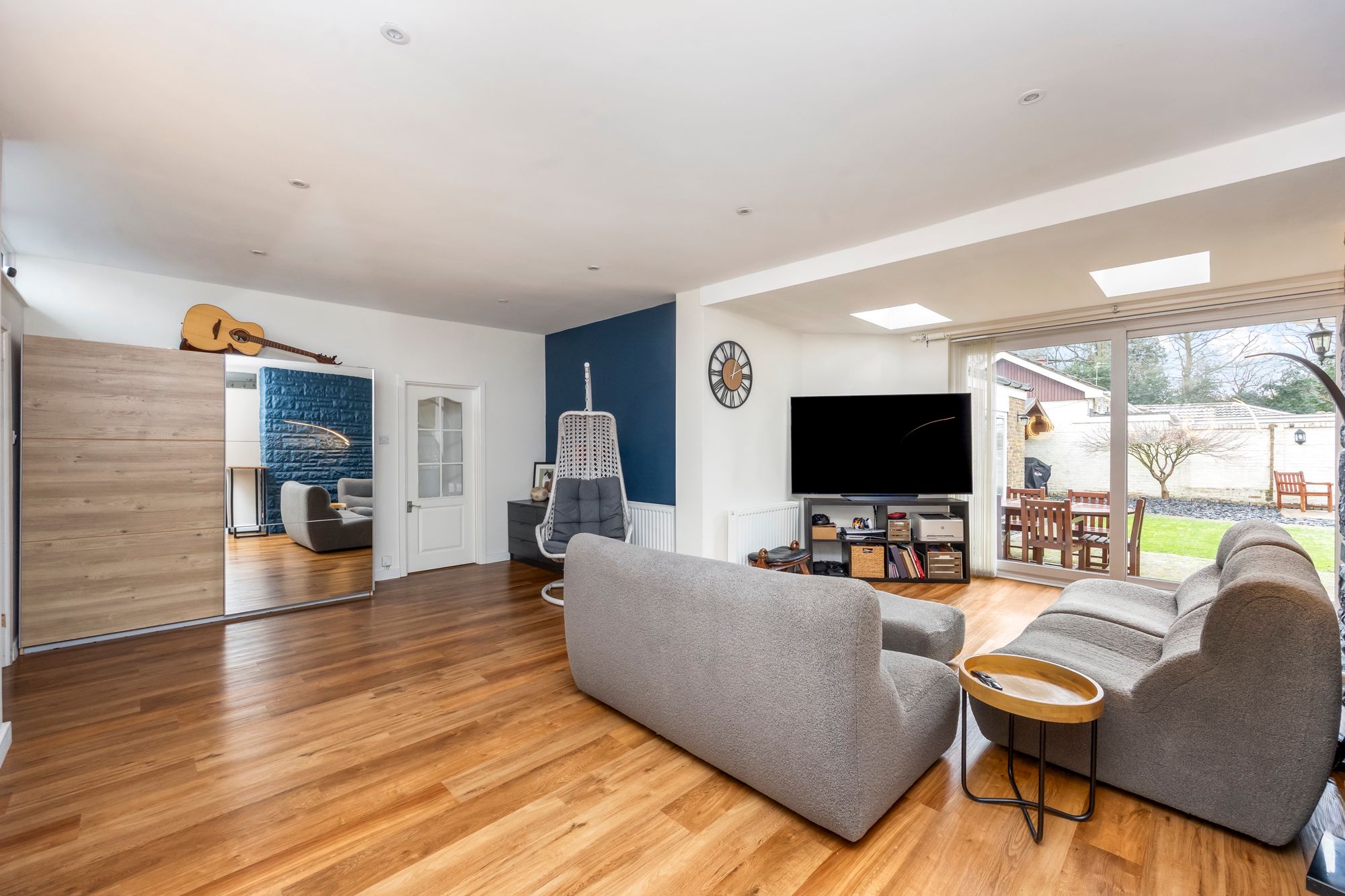 The sitting room has been enlarged and has sliding doors out to a beautiful mature garden and provides access into the kitchen, dining room and inner hallway.