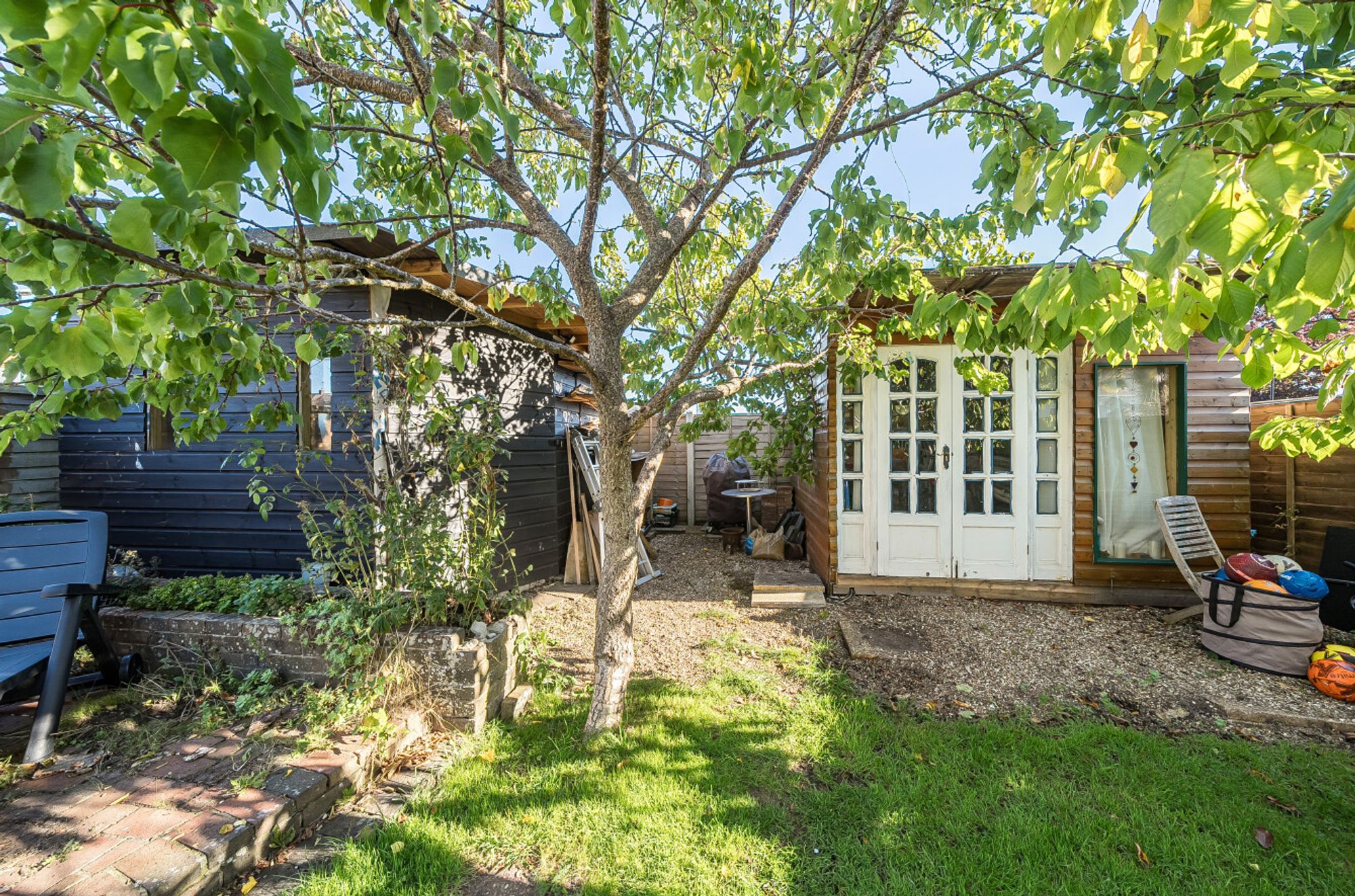 The large rear garden has two outbuildings providing excellent further storage or workshop space. At the front there is a large garden with mature shrubs giving great seclusion from the road and ample off-street parking.