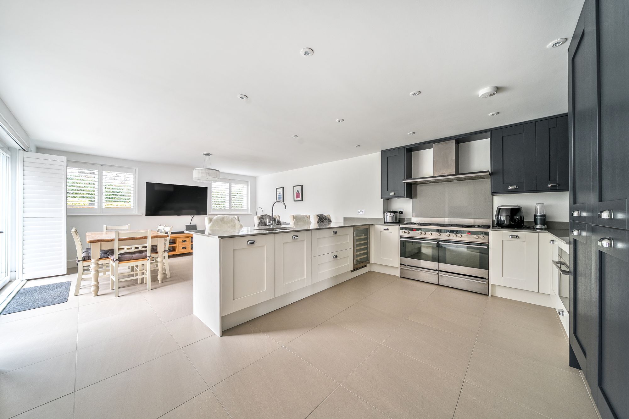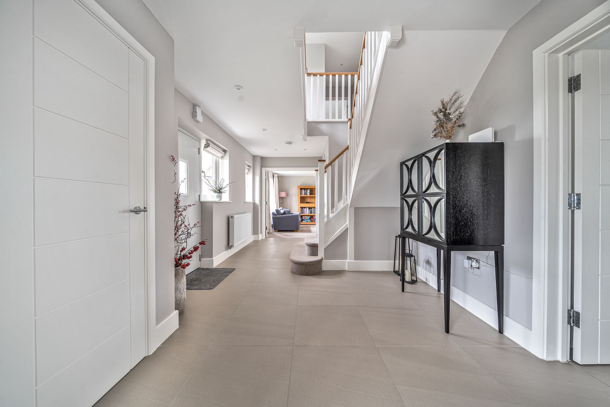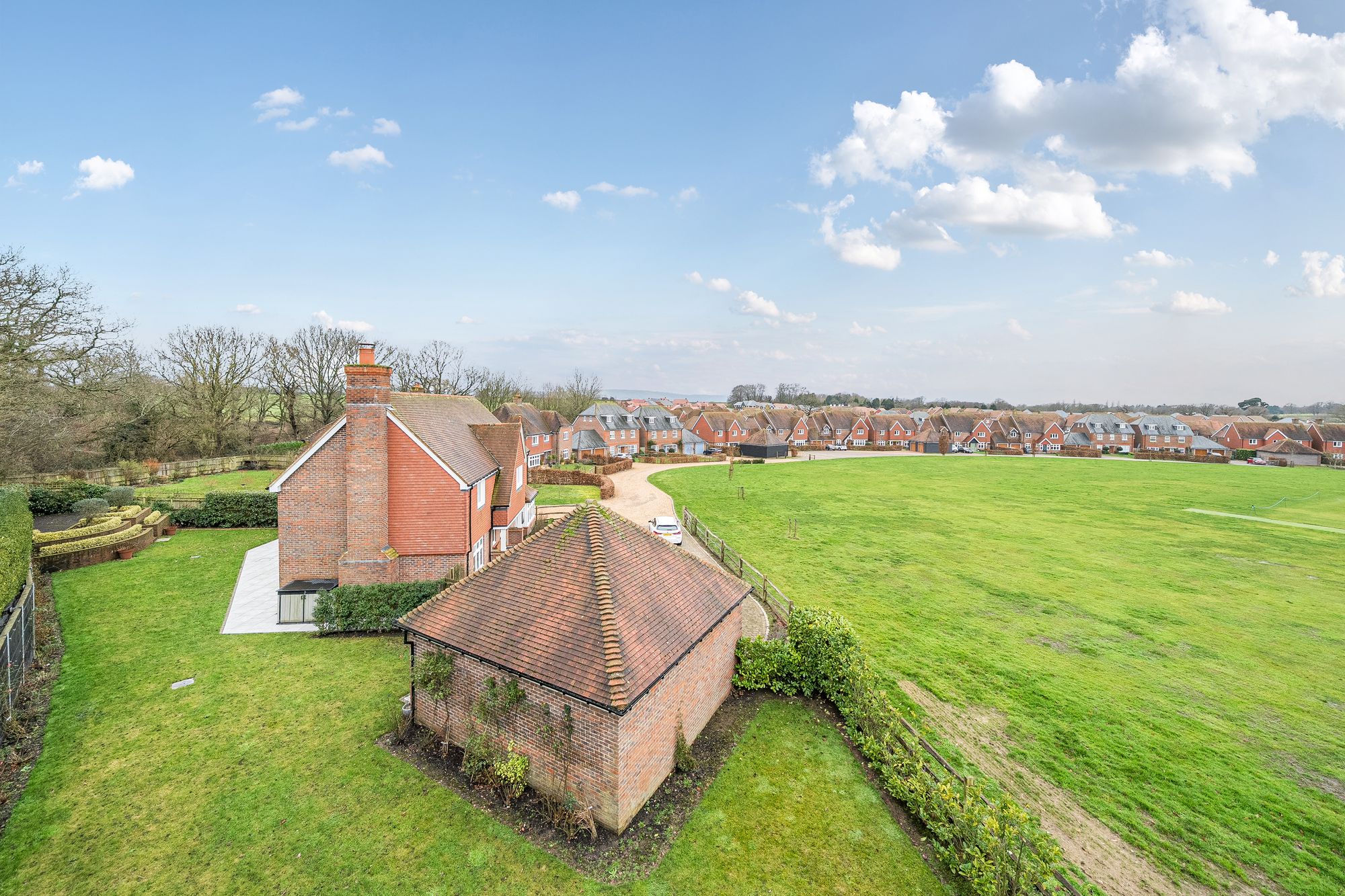 This exceptional five bedroom detached house is situated on a private close, enjoying a prime position overlooking the cricket green. Built in 2017 by Oakford Homes, the property has been finished to a high specification throughout, offering a modern family lifestyle with a touch of elegance. The welcoming entrance hall leads to a double aspect sitting room with an open fire, creating a cosy atmosphere for relaxing evenings. A separate dining room with a bay window provides an ideal setting for formal entertaining, while the impressive kitchen and family room serves as the heart of the home, featuring contemporary fittings and ample space for every-day living. Additional ground floor accommodation includes a study, a utility room and a cloakroom, all thoughtfully designed for convenience and functionality.Situation
