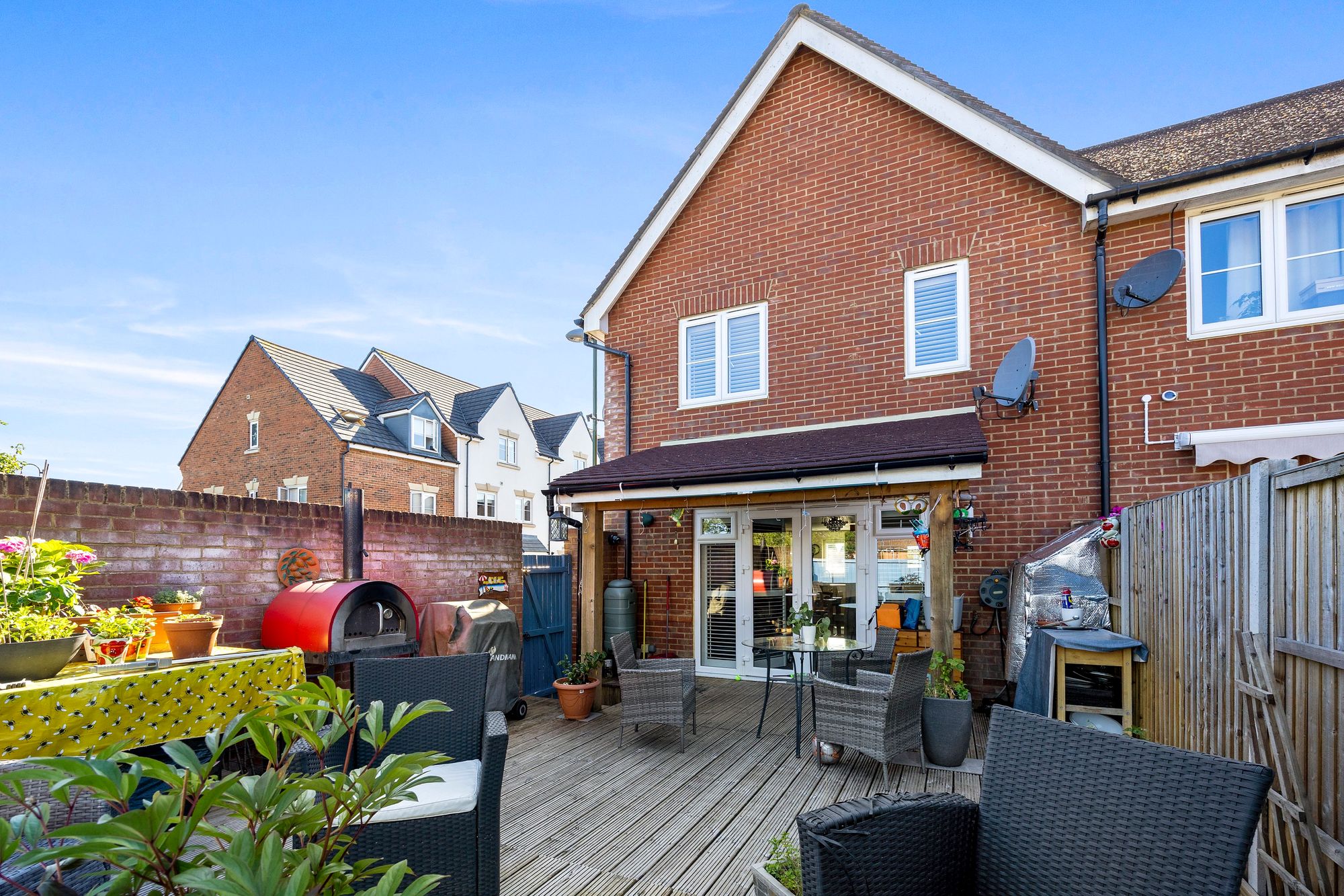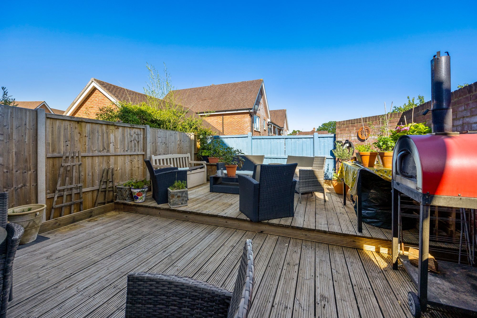 The rear garden has decking running through providing ideal outdoor recreational and social space, there is a covered area which is ideal for outdoor dining. Driveway parking is at the rear of the property with an electric car charging facility and leads to the garage which has an up and over access door.