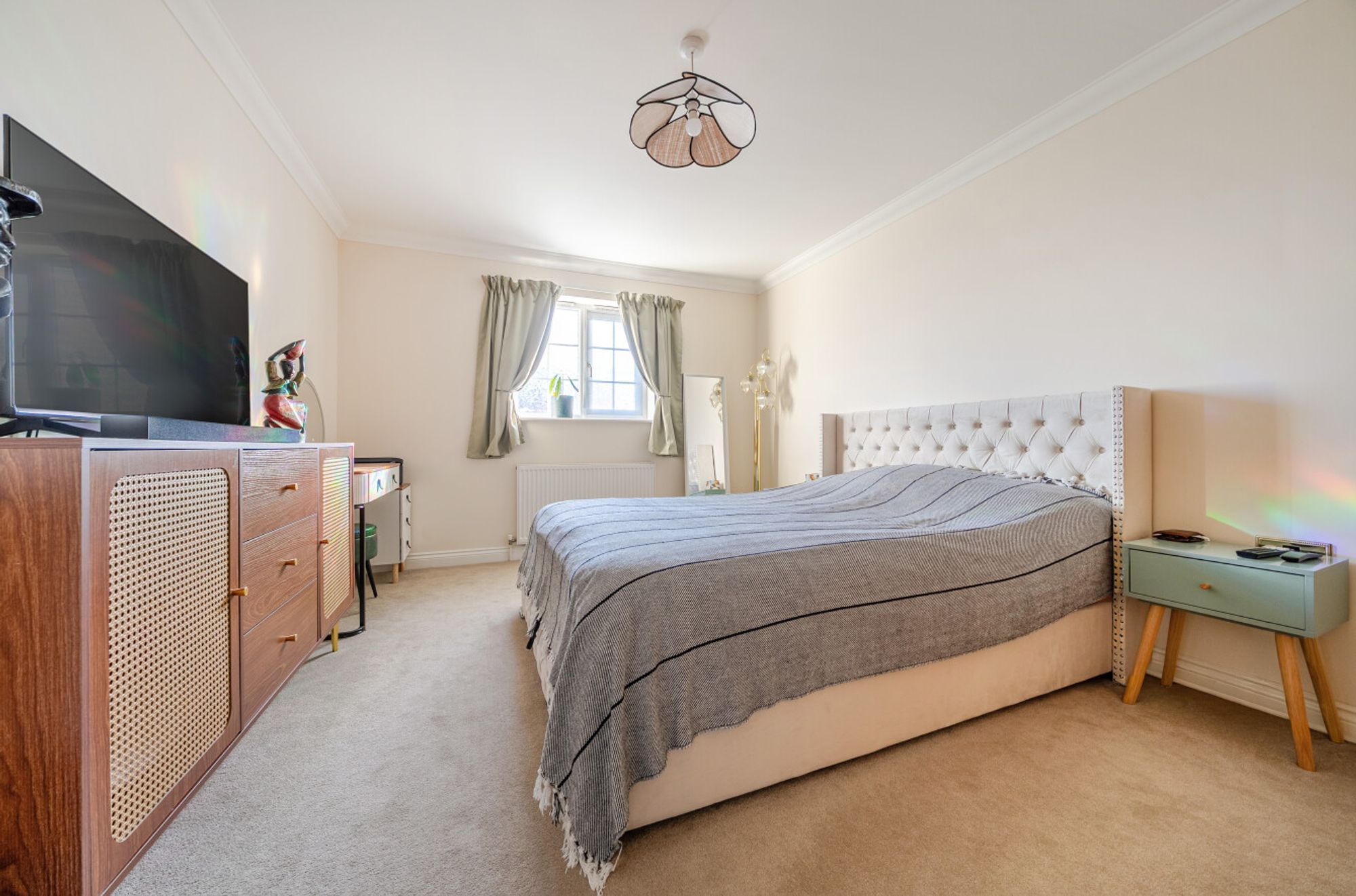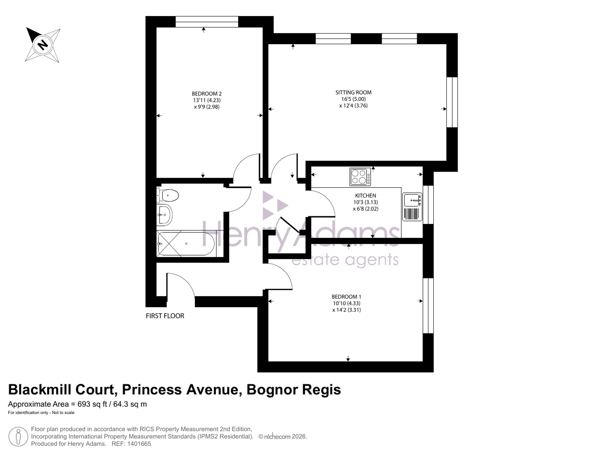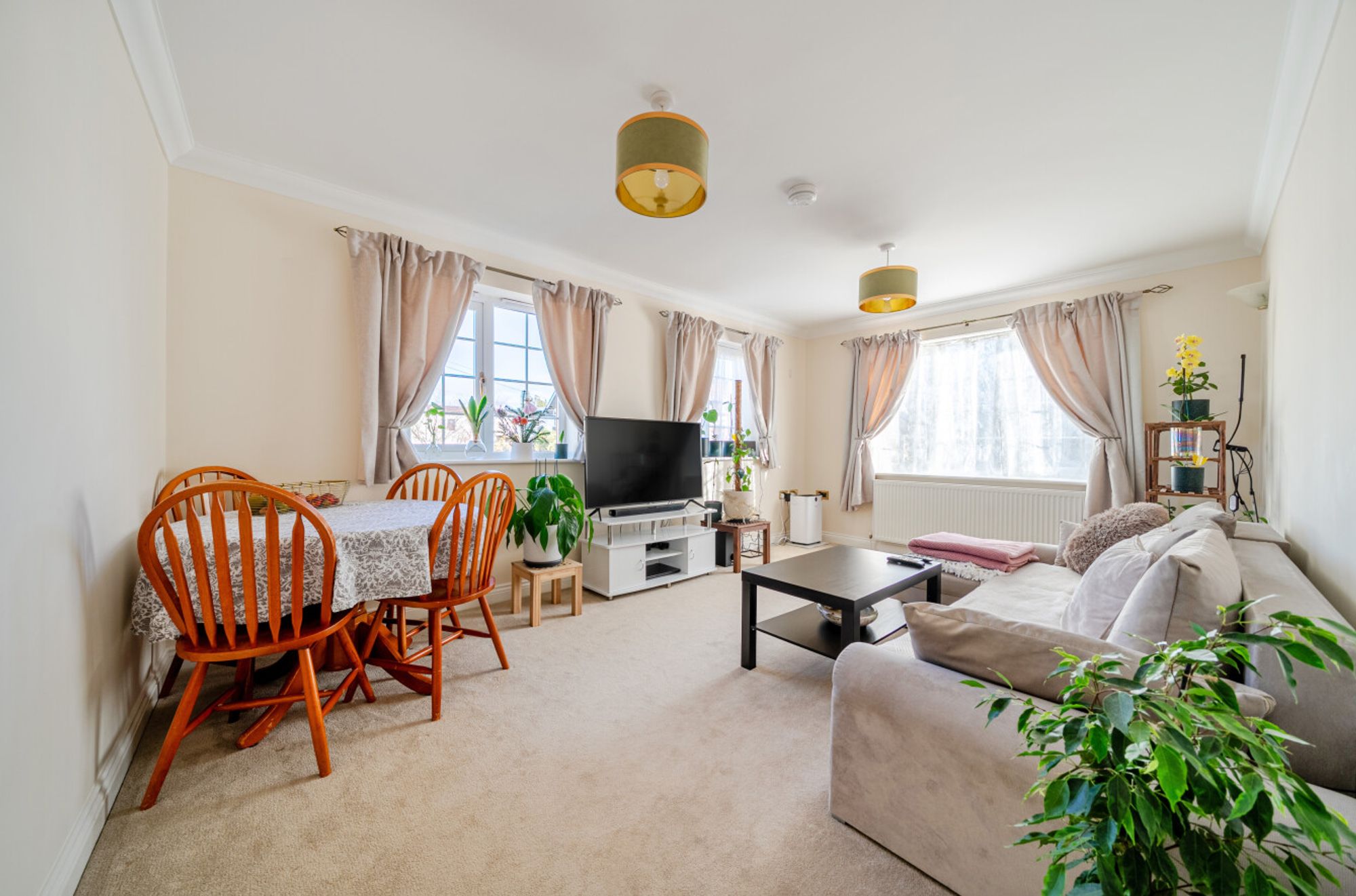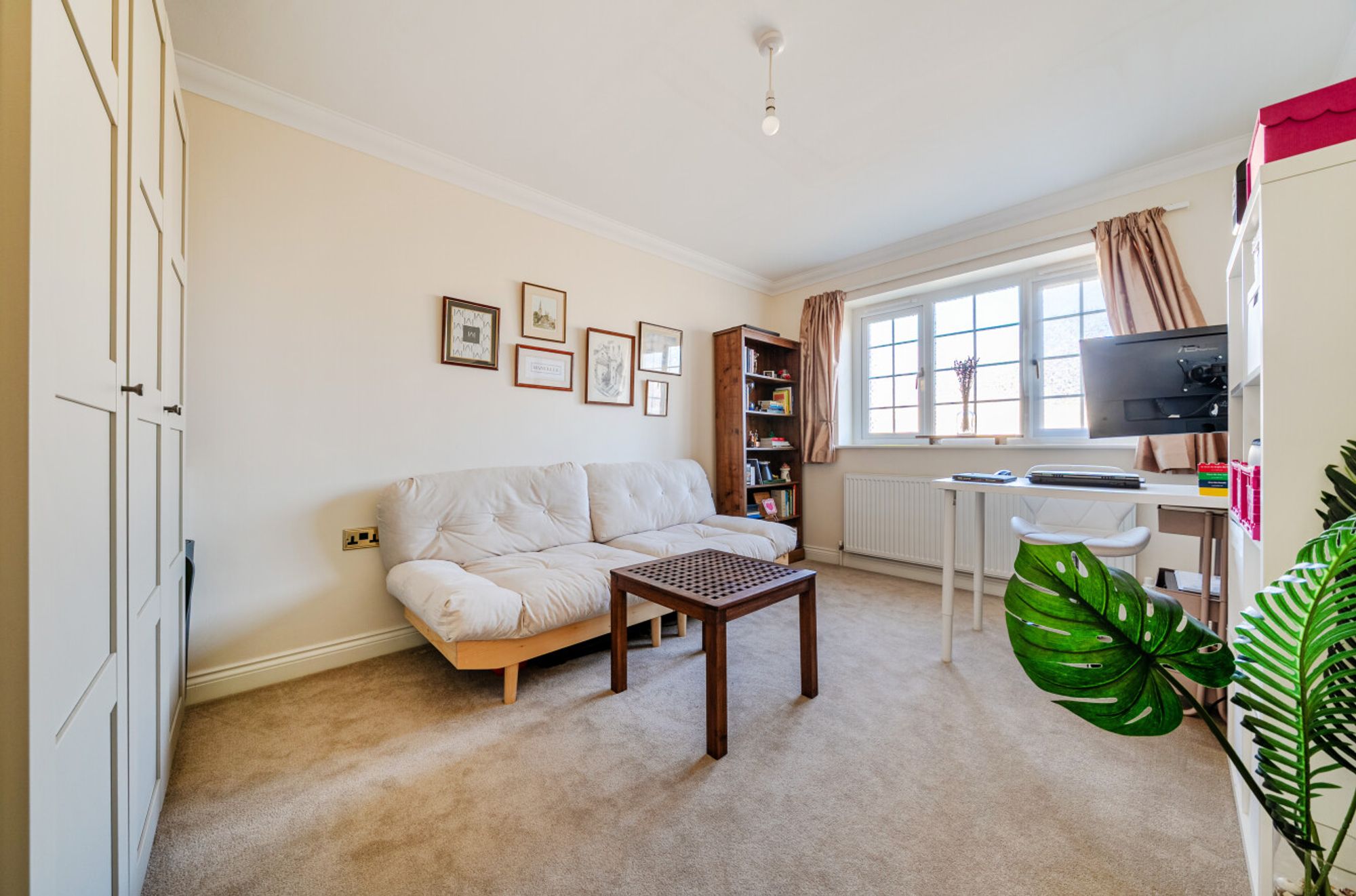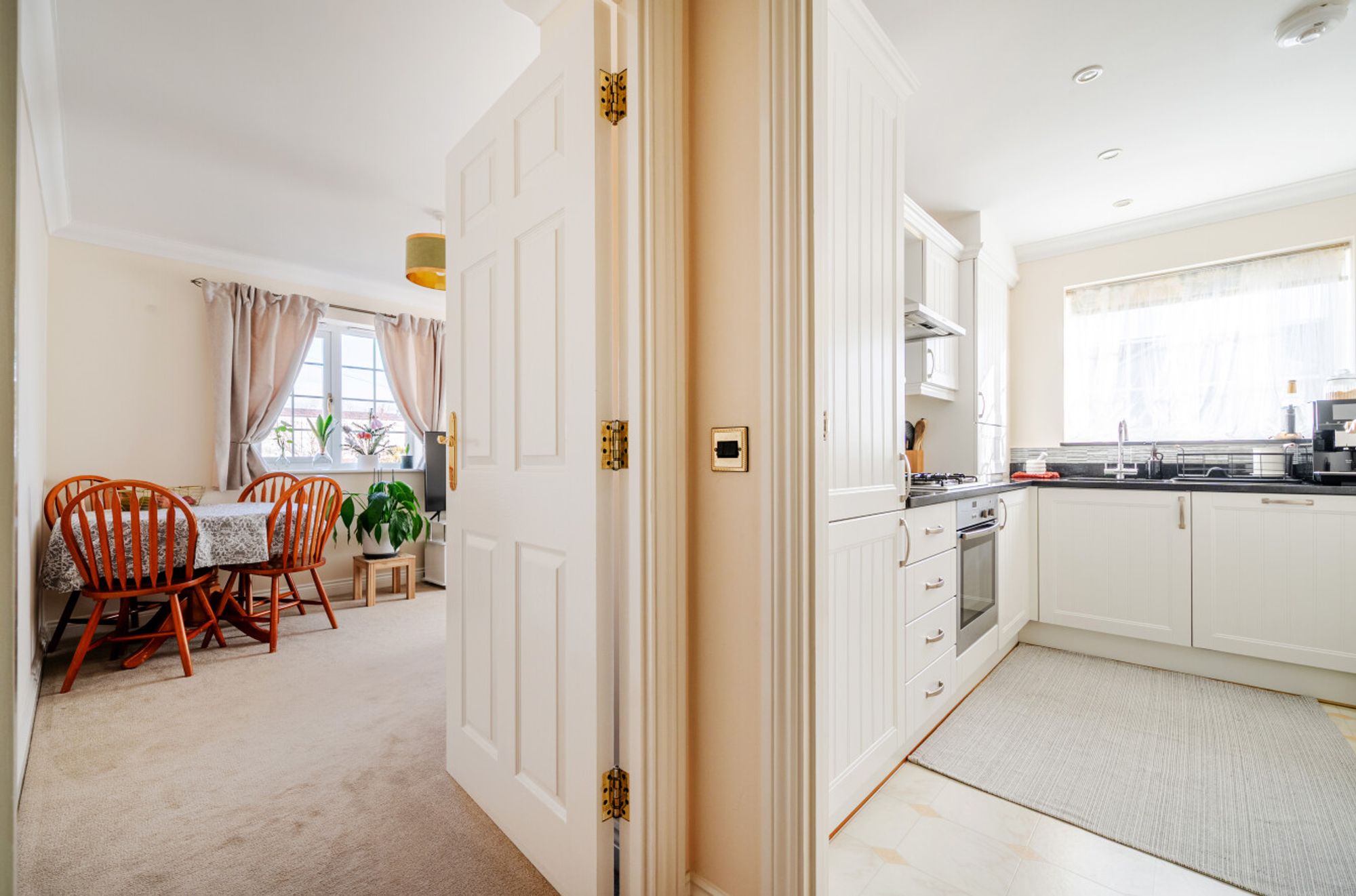 Communal entrance porch with post boxes. Step inside the apartment and you’ll find a light-filled dual aspect sitting room and a modern fitted kitchen with integrated appliances. There are two generous double bedrooms offering plenty of space for relaxation or working from home. The contemporary bathroom suite is sleek and stylish, panel bath with shower over.