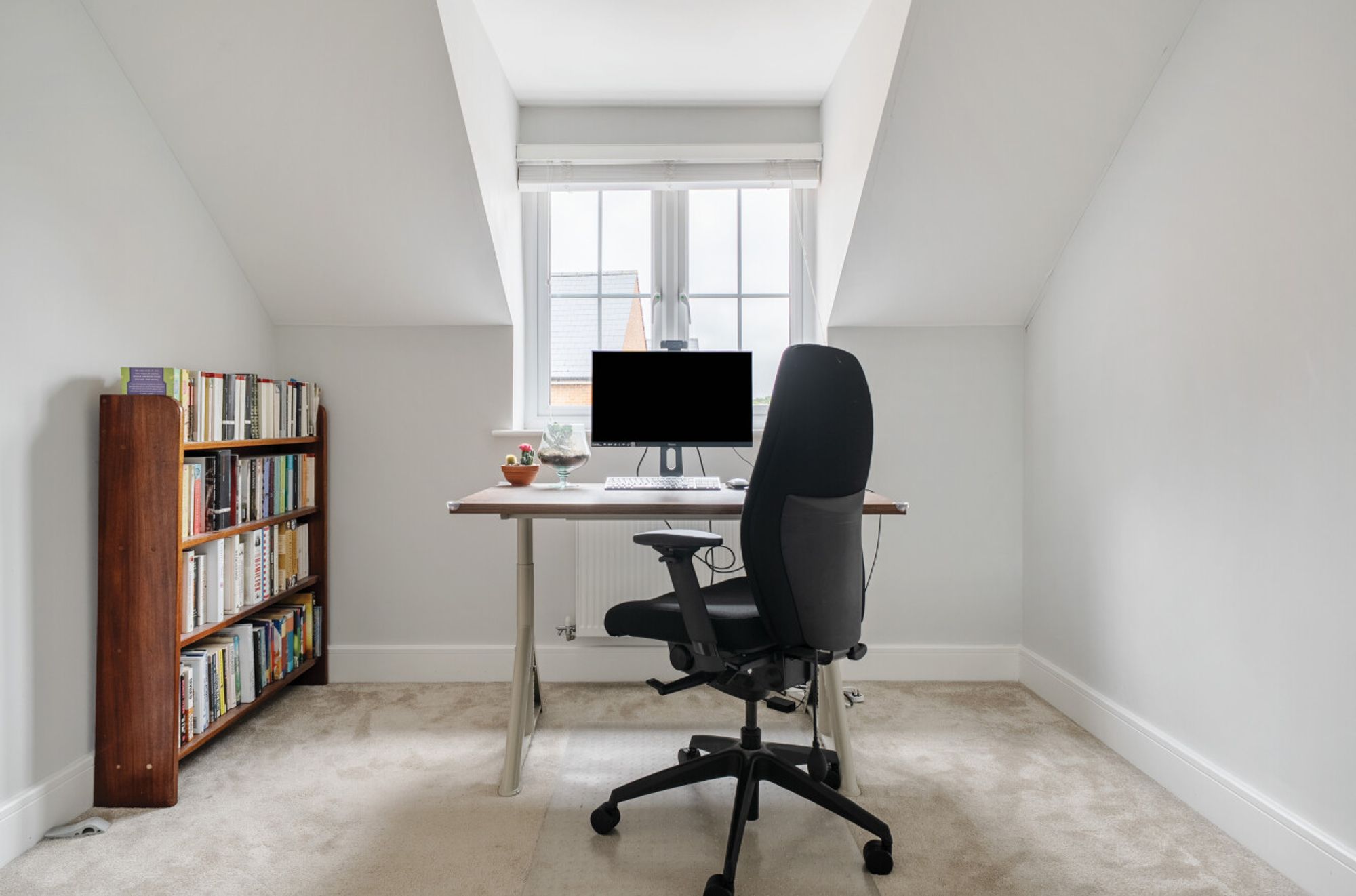 Upstairs, the principal bedroom benefits from an en-suite shower room. There is a further generous double bedroom and a well-sized third bedroom, all served by a contemporary family bathroom. The overall finish is consistent, understated and well maintained throughout.