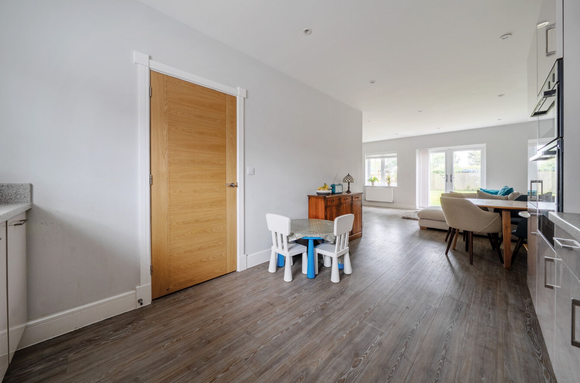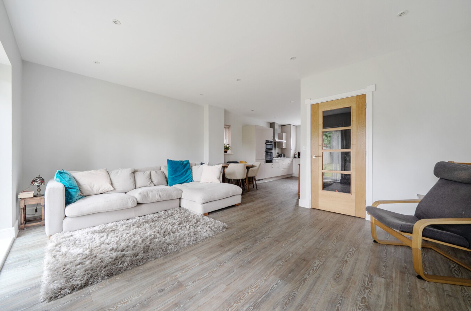 On entering, a bright and welcoming hallway creates an immediate sense of space, leading through to the open-plan living accommodation. Designed with both everyday living and entertaining in mind, this is a calm and well-proportioned space. The kitchen is thoughtfully fitted with a clean, modern finish, while a ground floor cloakroom adds further convenience.