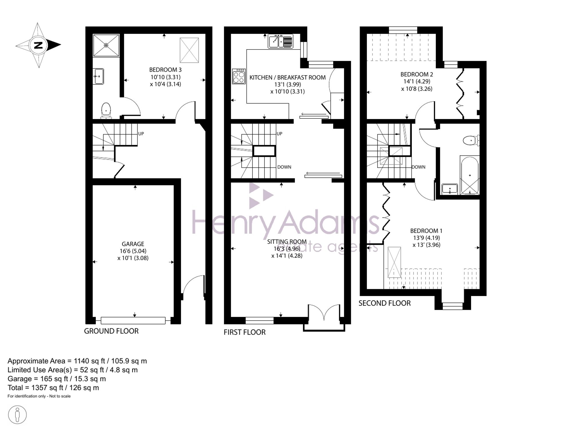 The ground floor features a generously sized double bedroom with en-suite and direct access to the integral garage with electric door. The first floor offers a bright and airy sitting room with Juliet balcony, a modern kitchen with integrated appliances and on the top floor two additional double bedrooms alongside a stylish family bathroom/WC.