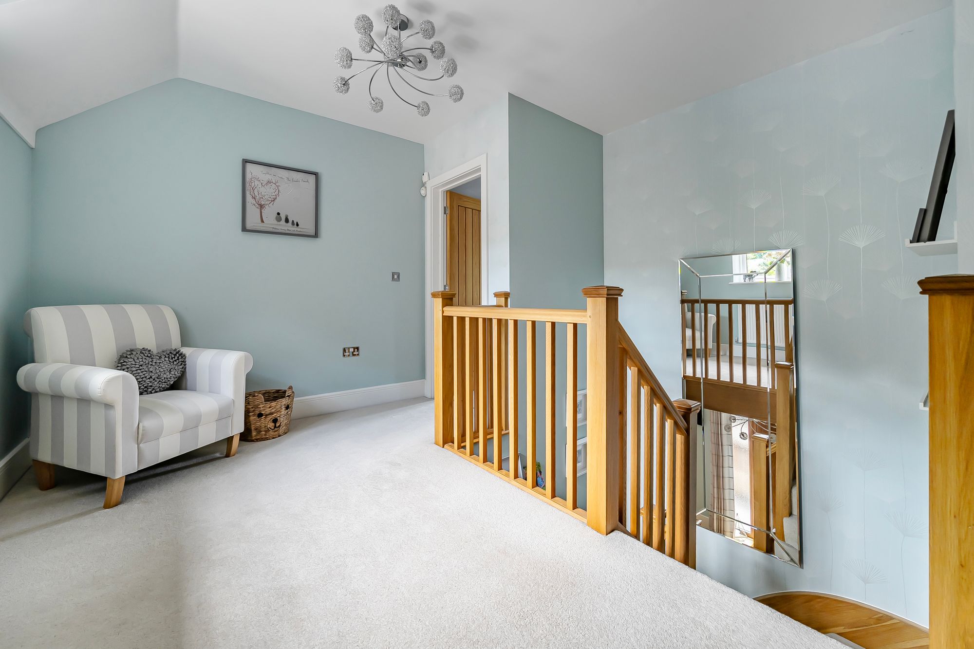 Ascending the staircase, you will find four generously proportioned double bedrooms, each offering a peaceful retreat. The primary bedroom features a dressing room and en-suite bathroom, providing a touch of luxury and privacy. Bedroom two is thoughtfully equipped with fitted wardrobes and an en-suite, catering to the needs of family members or guests. The remaining two bedrooms share access to a modern family bathroom, ensuring comfort and convenience for all.