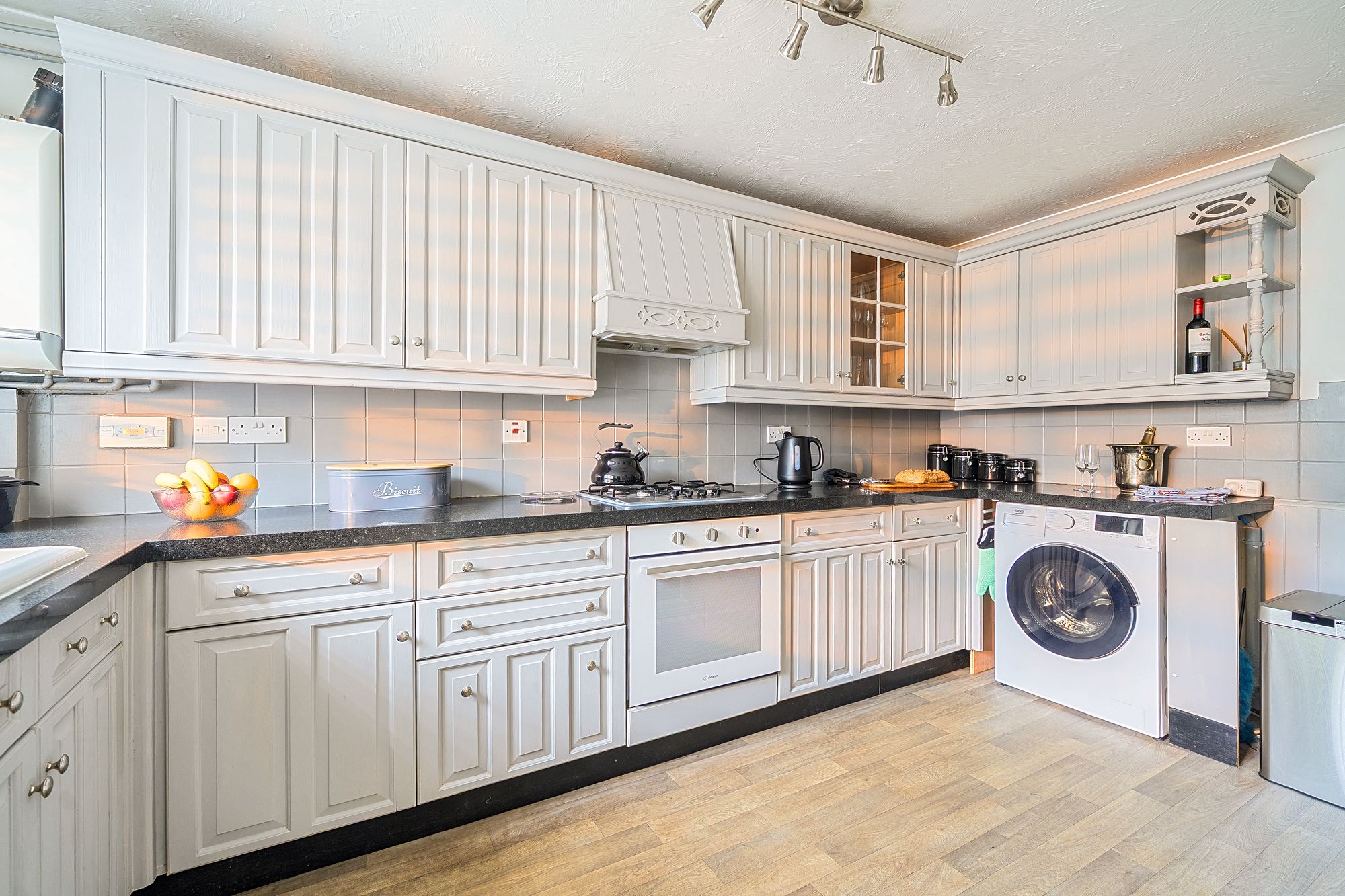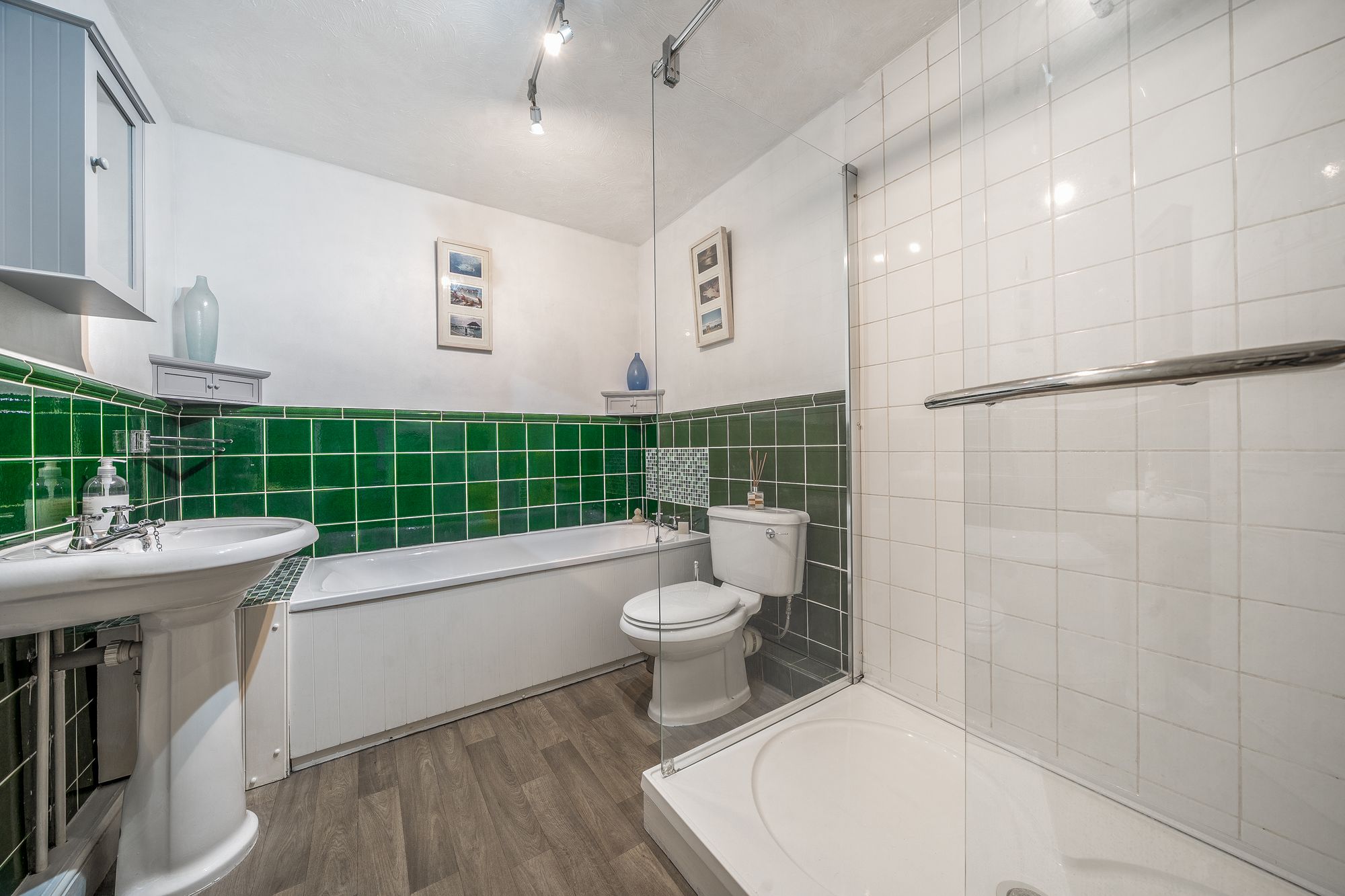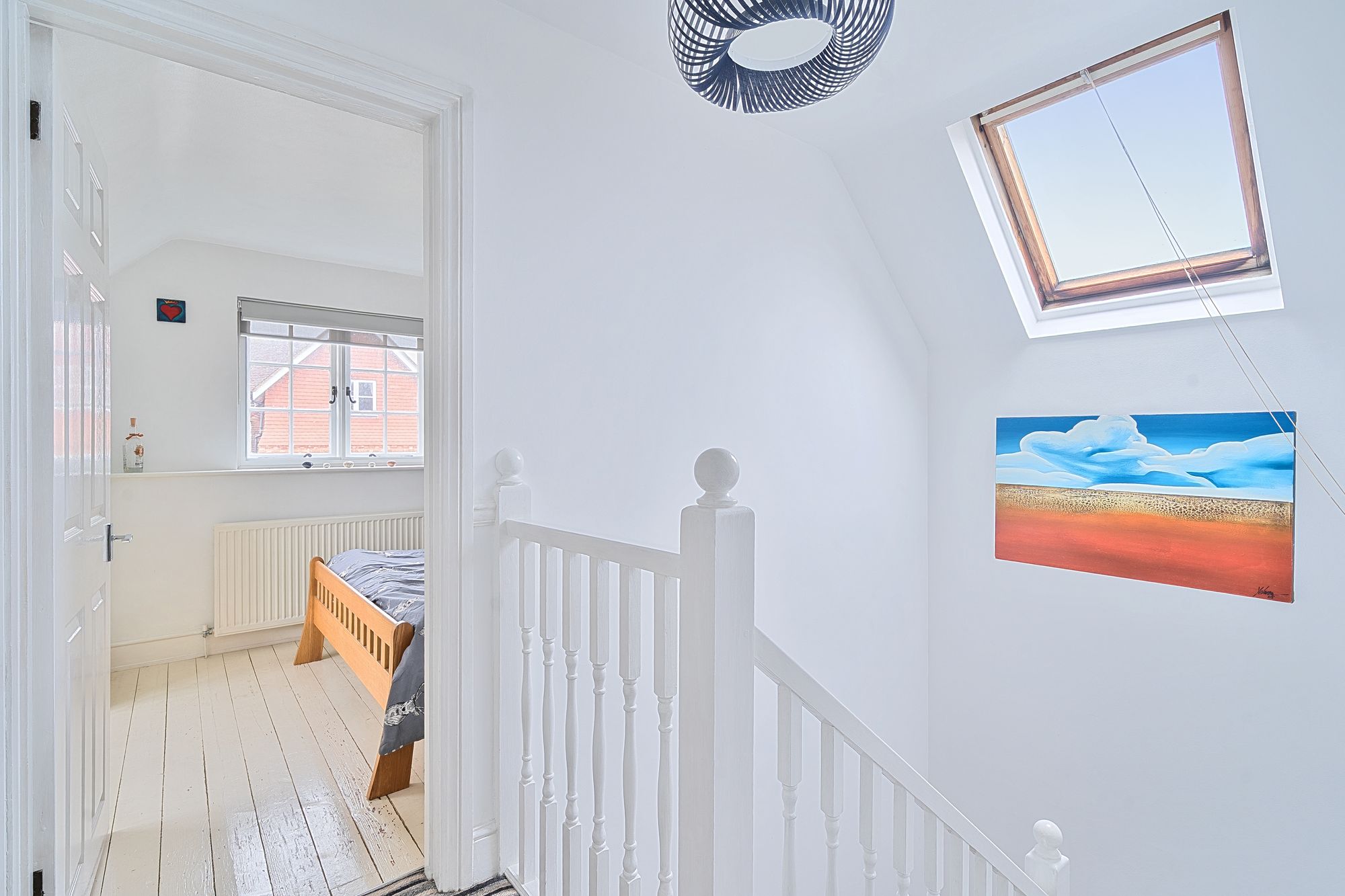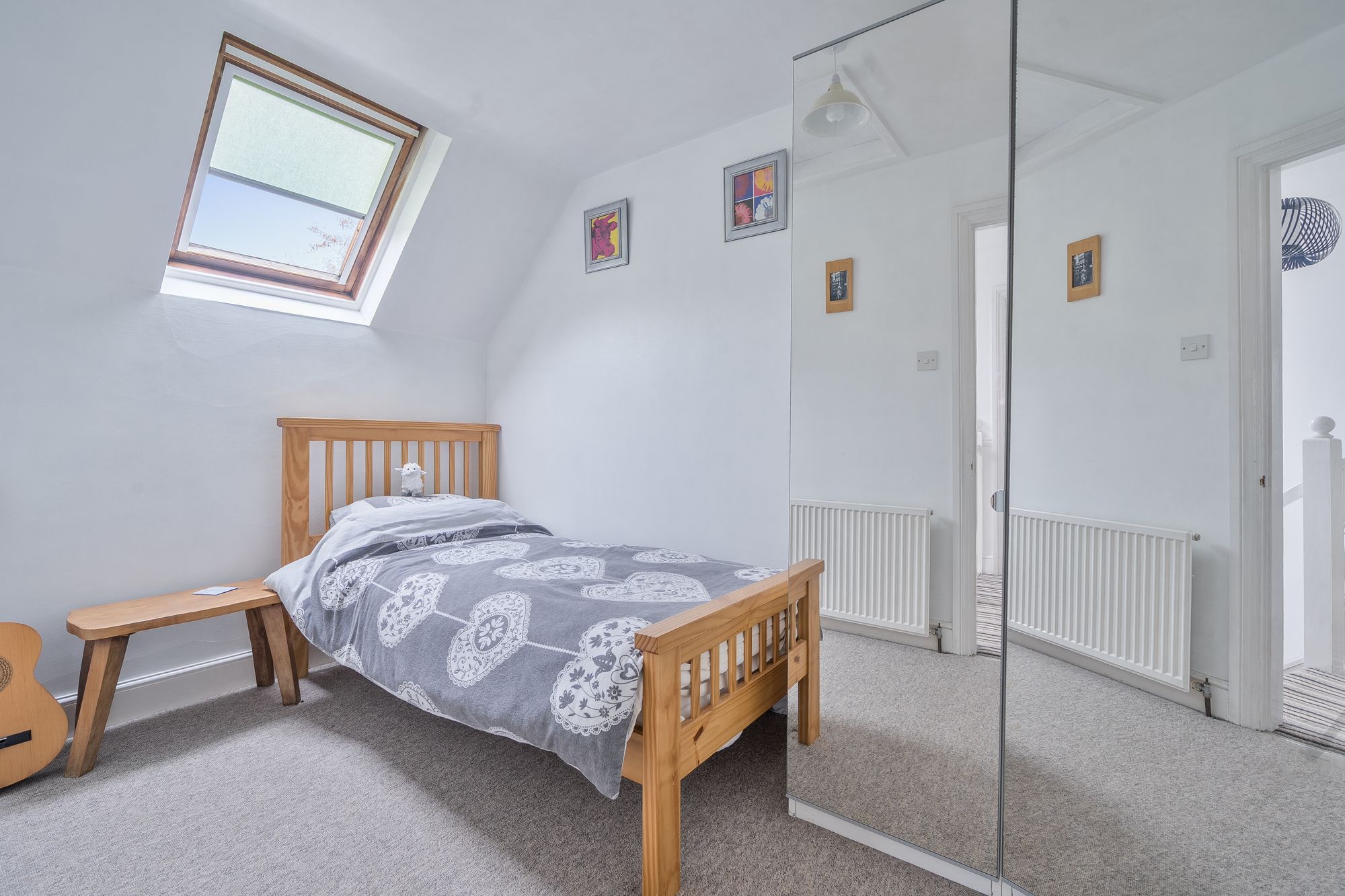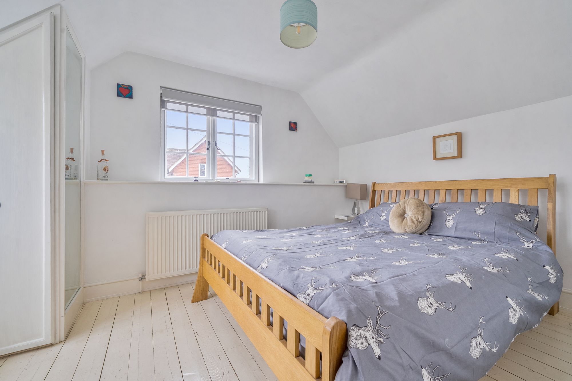 Beautifully presented throughout, the accommodation combines character features with practical modern living. The well-appointed fitted kitchen comes complete with white goods and flows through to an inviting ‘L’ shaped living/dining room. This spacious reception area enjoys a cosy log burner and French doors opening directly onto the paved courtyard garden, creating an ideal space for both everyday living and entertaining. A useful study area and a family bathroom with separate bath and shower complete the ground floor.