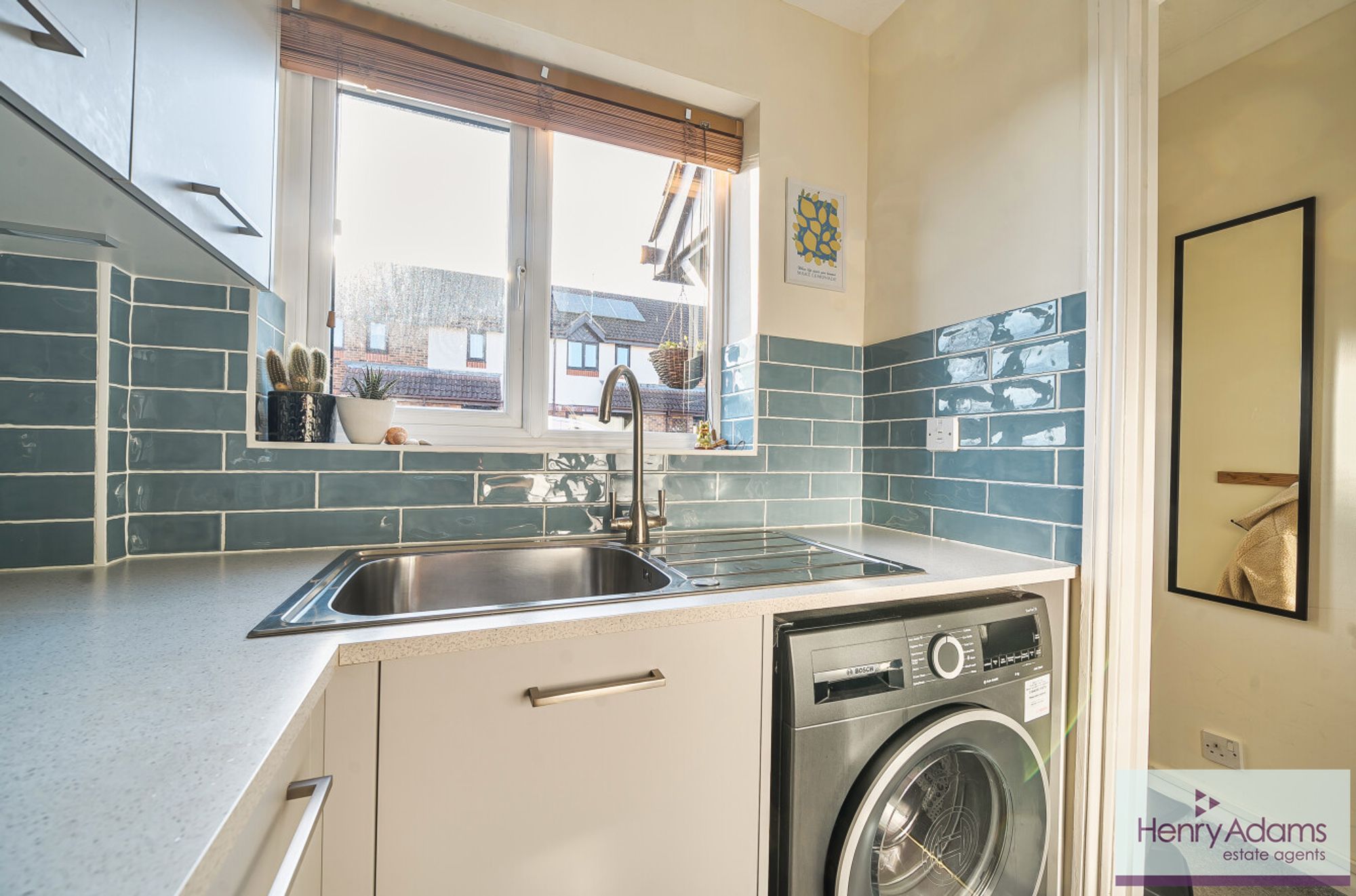 This attractive freehold property offers a bright and inviting open-plan living area, providing a flexible space for both relaxation and dining. The attractive modern kitchen features contemporary units and stylish finishes, creating a practical and appealing cooking environment. A convenient downstairs W.C. adds further functionality to the ground floor.