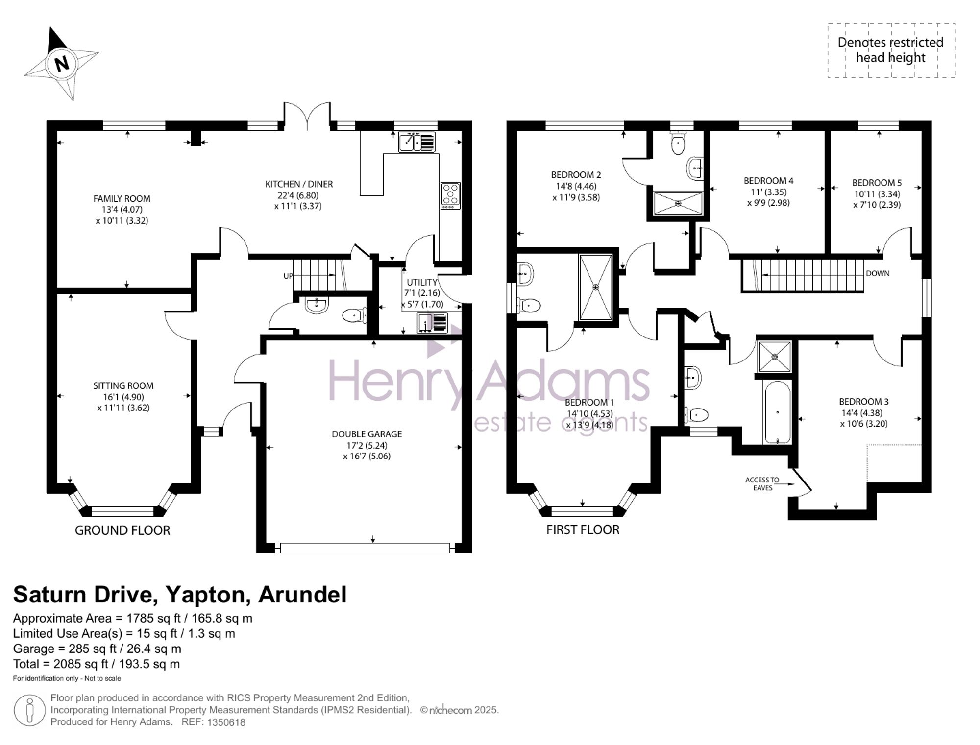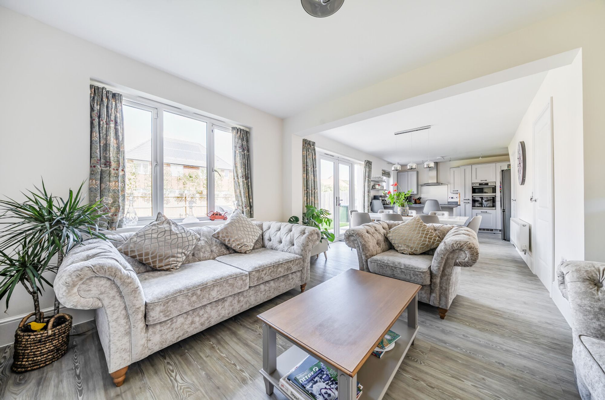 Internally, the accommodation measures a generous 2,085 sq ft and briefly comprises 5 double bedrooms with 2 en-suites in addition to the family bathroom, there are stylish mirror-fronted cabinets in every bathroom. On the ground floor, there is a large kitchen/dining/family room across the rear which is complemented by the separate utility room with ample cupboard space. A well proportioned sitting room will be found to the front of the property whilst a WC/cloakroom completes the ground floor. A door from the generous entrance hall leads into the double garage with electric door.