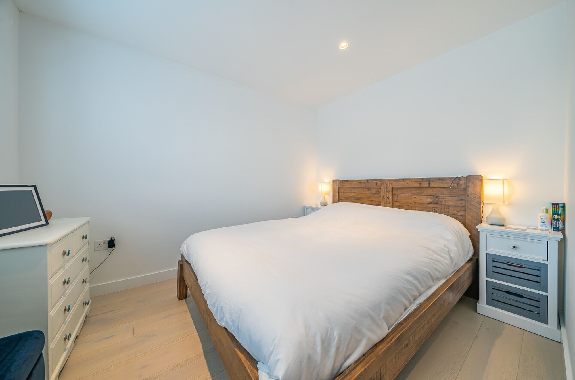 There are three well-proportioned bedrooms, two of which comfortably accommodate king size beds and wardrobes. The bathroom has a luxurious feel, complete with a freestanding bathtub, walk-in shower and underfloor heating for added comfort. A fully boarded loft with lighting provides generous additional storage, easily accessed via a pull-down ladder.