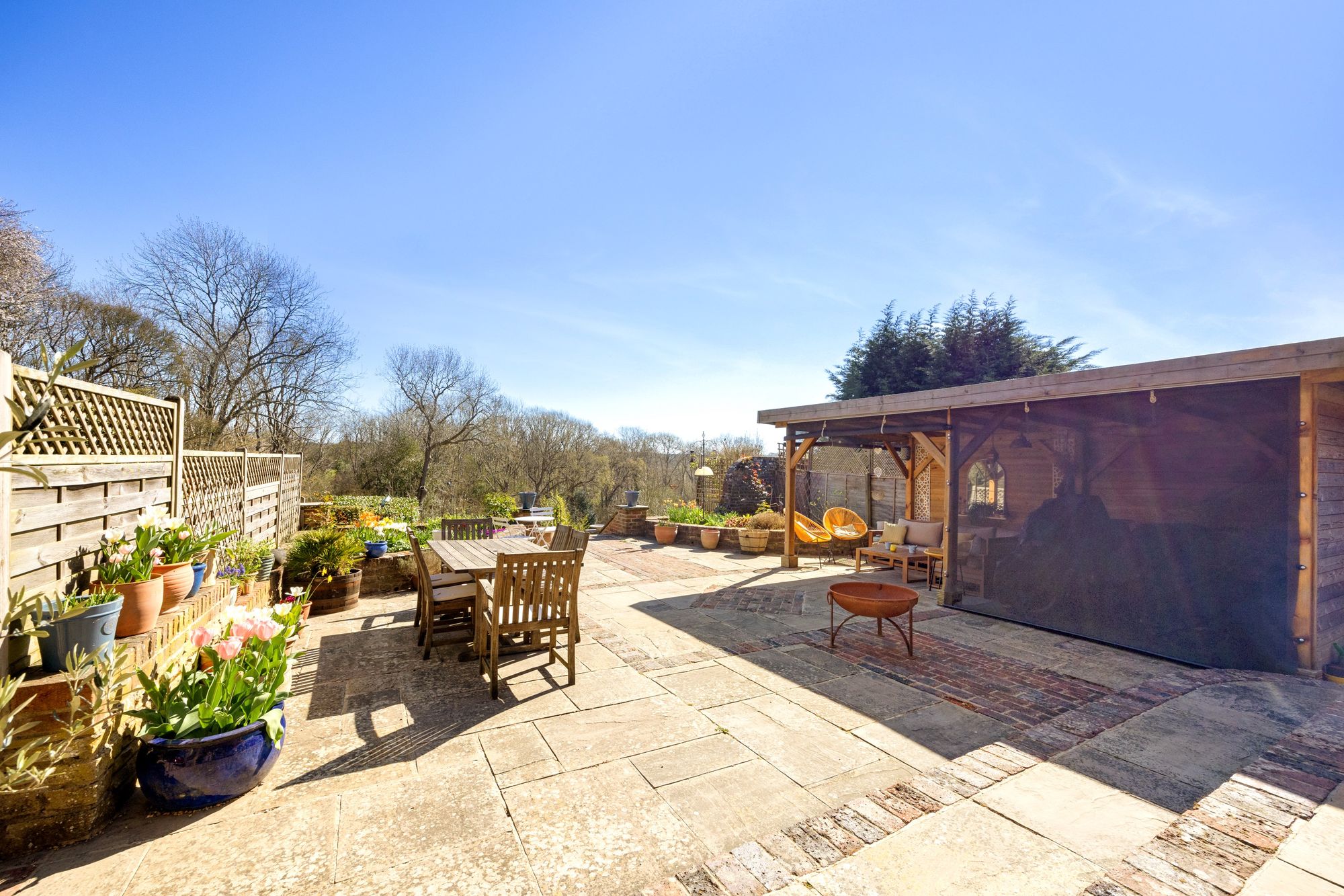 Outside this property really does continue to impress with gorgeous views from the large patio with outdoor gazebo and seating area lead out to the gardens which lead out in a South-East and then turn to the right. There are various areas in the garden and the property includes a Summerhouse and greenhouse and it offers a great amount of privacy. The property offers parking for three cars.