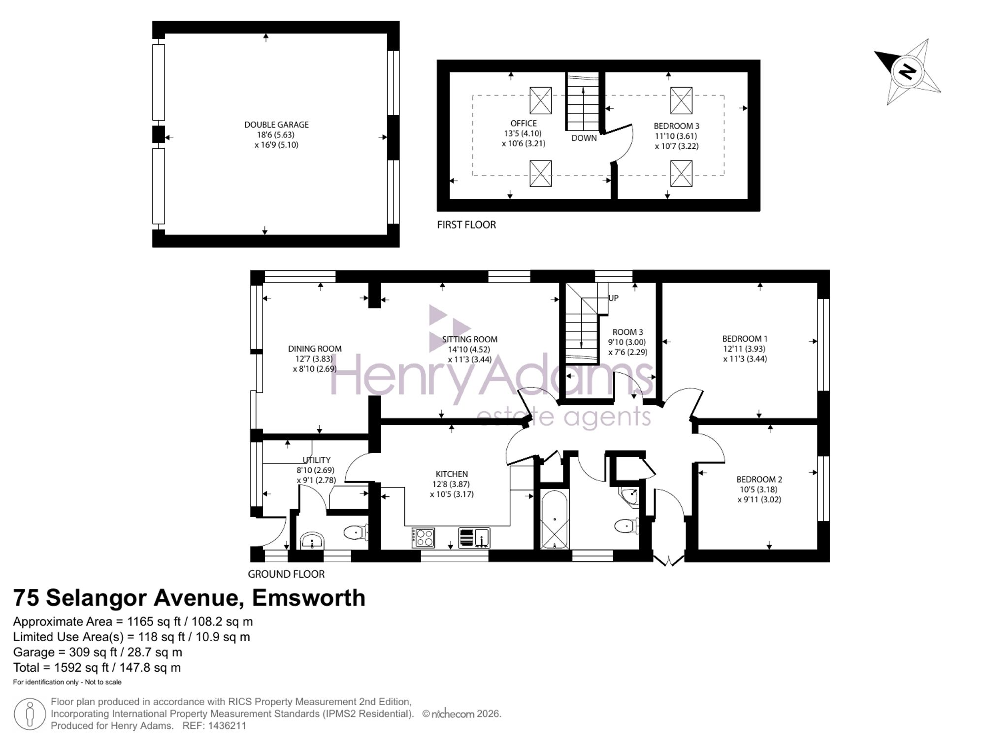 To the front of the property are two double bedrooms, with the principal bedroom benefiting from free standing wardrobes and cabinets. The third room, located on the ground floor, features stairs leading up to a versatile home office and third bedroom, offering additional flexible living space.