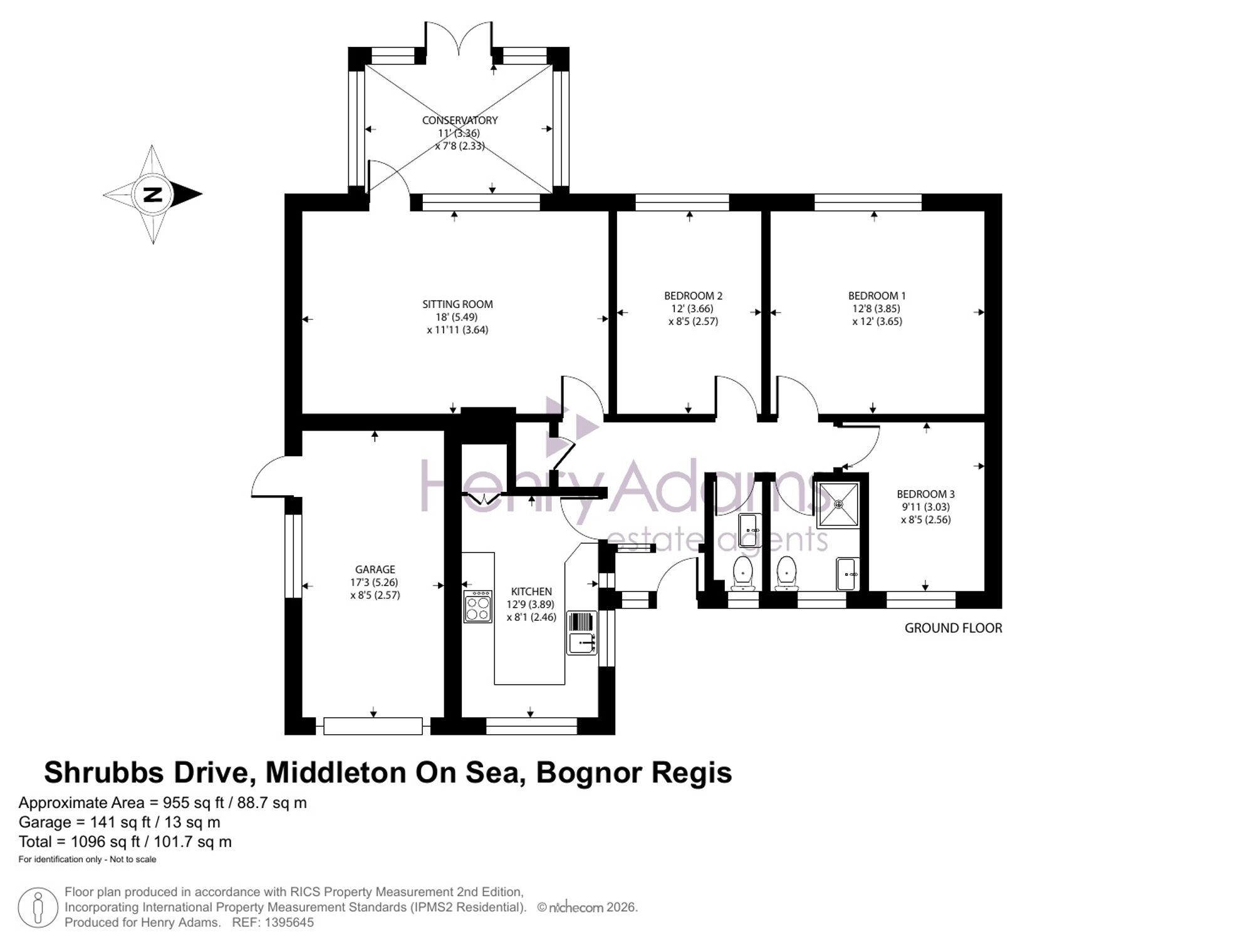 The accommodation measures 1,096 sq ft (including the integral garage) and briefly comprises, entrance hall with airing cupboard, shower room and additional separate WC. There are three bedrooms in total with bedrooms one & two overlooking the rear garden. The kitchen overlooks the front garden whilst the sitting/dining room is also at the rear of the property and leads on to the conservatory and garden beyond.