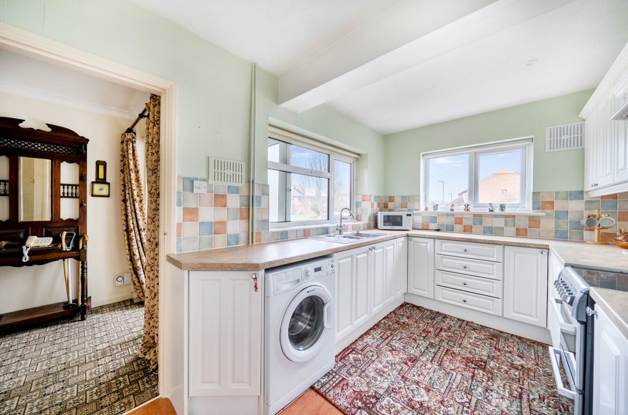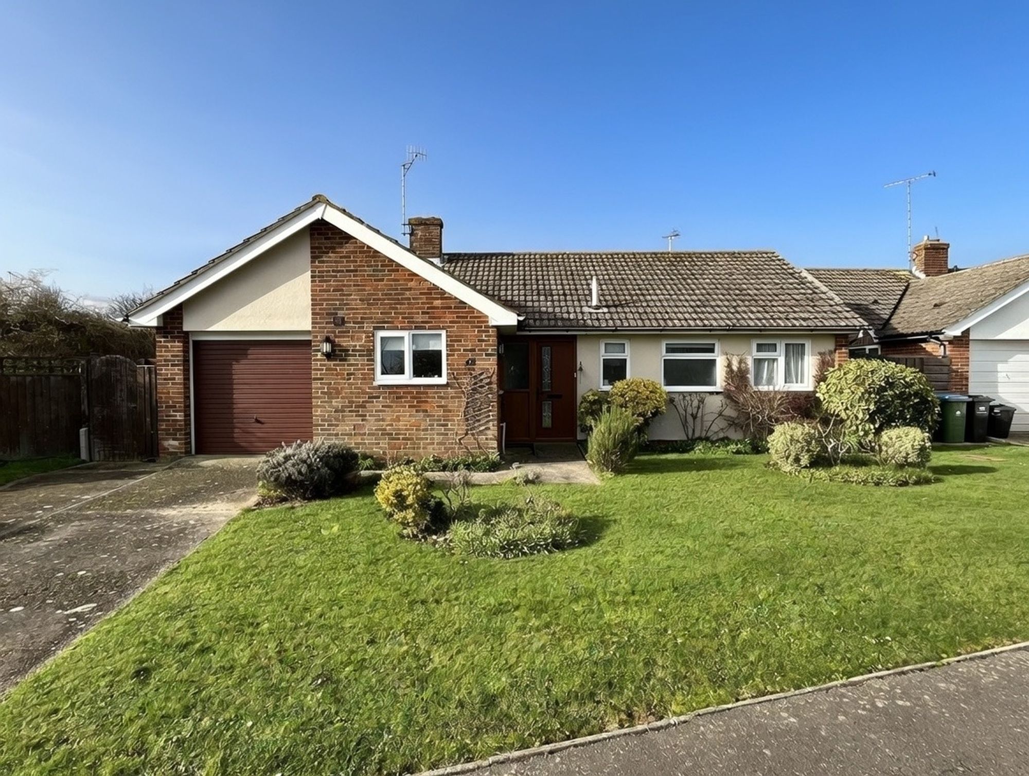 Outside, the property enjoys an open-plan lawned front garden with driveway leading to the garage. The rear garden has a westerly aspect and is surrounded by bungalows providing a high level of privacy. The rear garden is also laid to lawn with summerhouse and garden store, greenhouse, timber shed and flower beds. Practicality is enhanced by the inclusion of an integral garage, perfect for secure parking, extra storage or potentially for conversion to create additional accommodation.