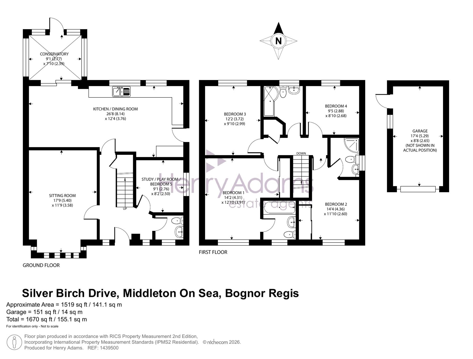 Measuring 1,519 sq ft, the accommodation briefly comprises: entrance hall with cloakroom/WC and a useful study for home working which could equally be utilised as a play room if required. There is also a spacious sitting room followed by the impressively sized kitchen-dining room which spans across the rear of the property and leads onto the conservatory.