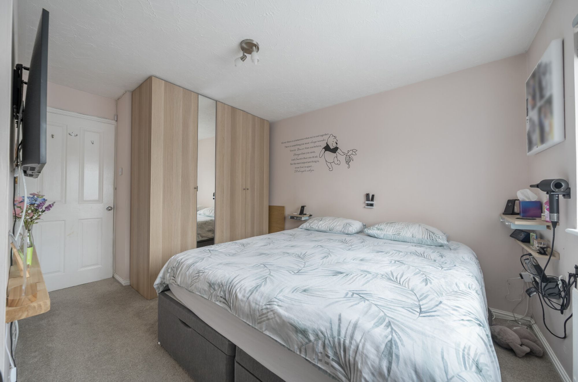 Moving to the first floor, two bedrooms will be found, with the main bedroom being a good size and equipped with a built-in wardrobe for storage. A bathroom completes the internal layout.