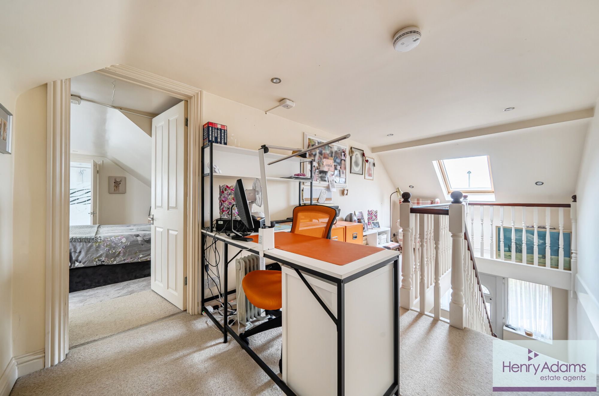 Three generously sized bedrooms are situated on the ground floor, all served by a well-appointed family bathroom, making the home ideal for those seeking single-level living. Upstairs, a spacious landing provides a versatile area, perfect for use as a home office or hobby space. The principal bedroom features its own en-suite and benefits from ample eaves storage, creating a practical and private retreat. The upper floor is further enhanced by a boarded loft, offering excellent additional storage.