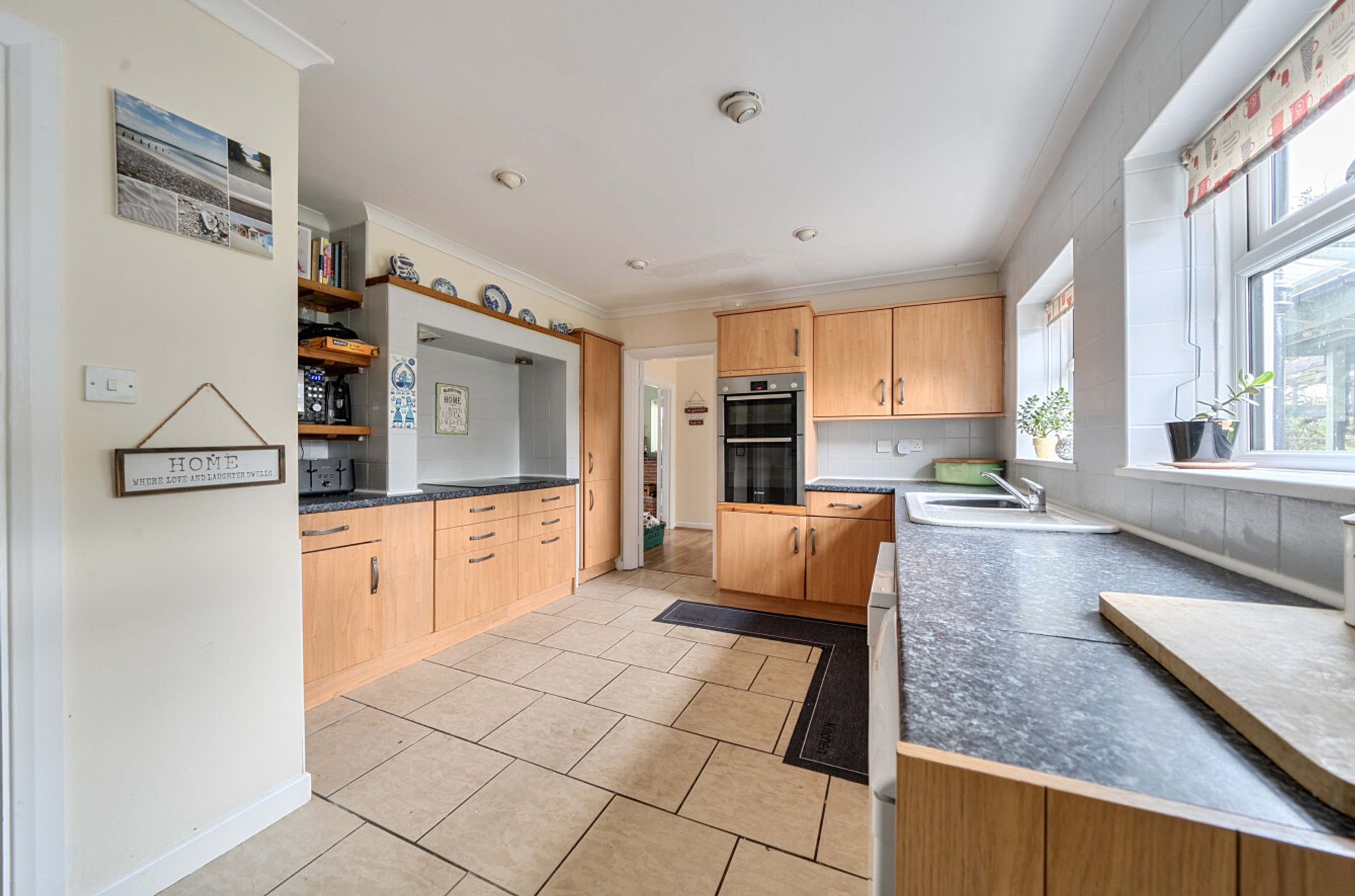 Situated within a desirable private road, just moments from the beach and close to the nearby village shops, this substantial detached family house offers an exceptional blend of space and versatility.