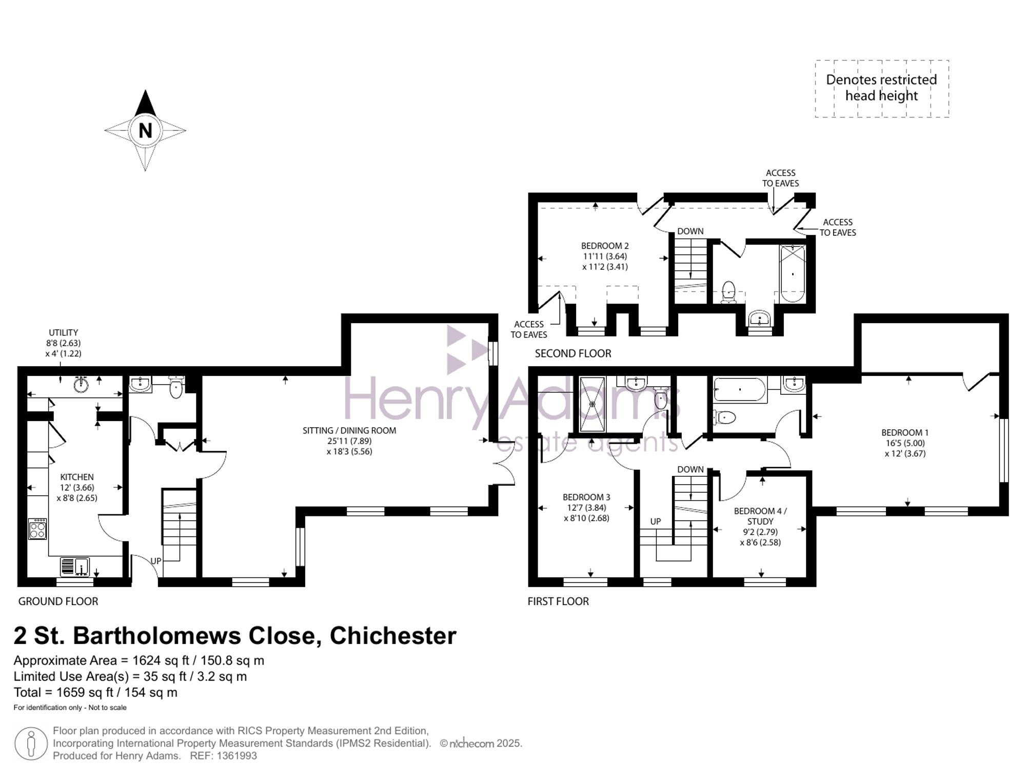 The first floor is devoted to restful living, with a principal bedroom suite boasting a bright dual-aspect bedroom and en-suite bathroom. Two additional bedrooms, currently arranged as a study and a cosy sitting room, offer versatility for a growing family, home office or quiet retreat, served by a shower room. On the second floor, a guest suite provides a private haven with a spacious double bedroom and en-suite bathroom, ideal for visitors or older children seeking independence.