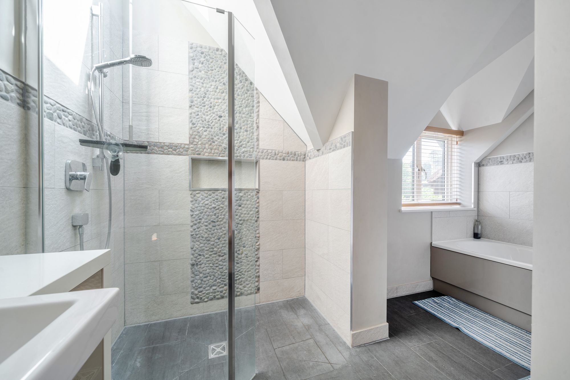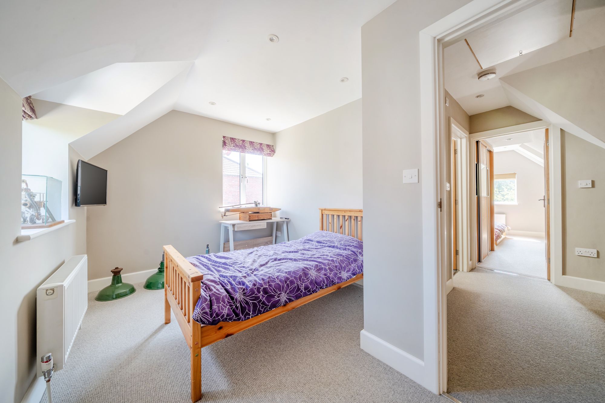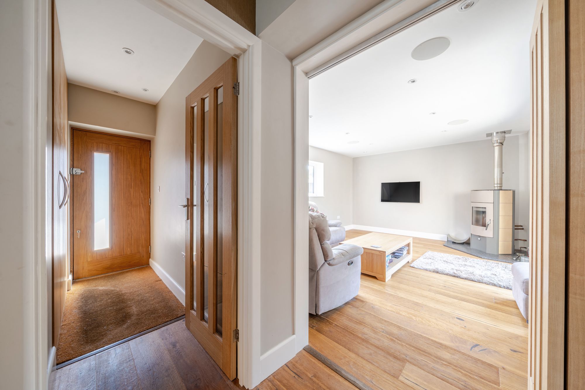 Upstairs there are three generous double-bedrooms, the principal having built-in wardrobes and a light and spacious family bathroom with bath and separate shower cubicle.