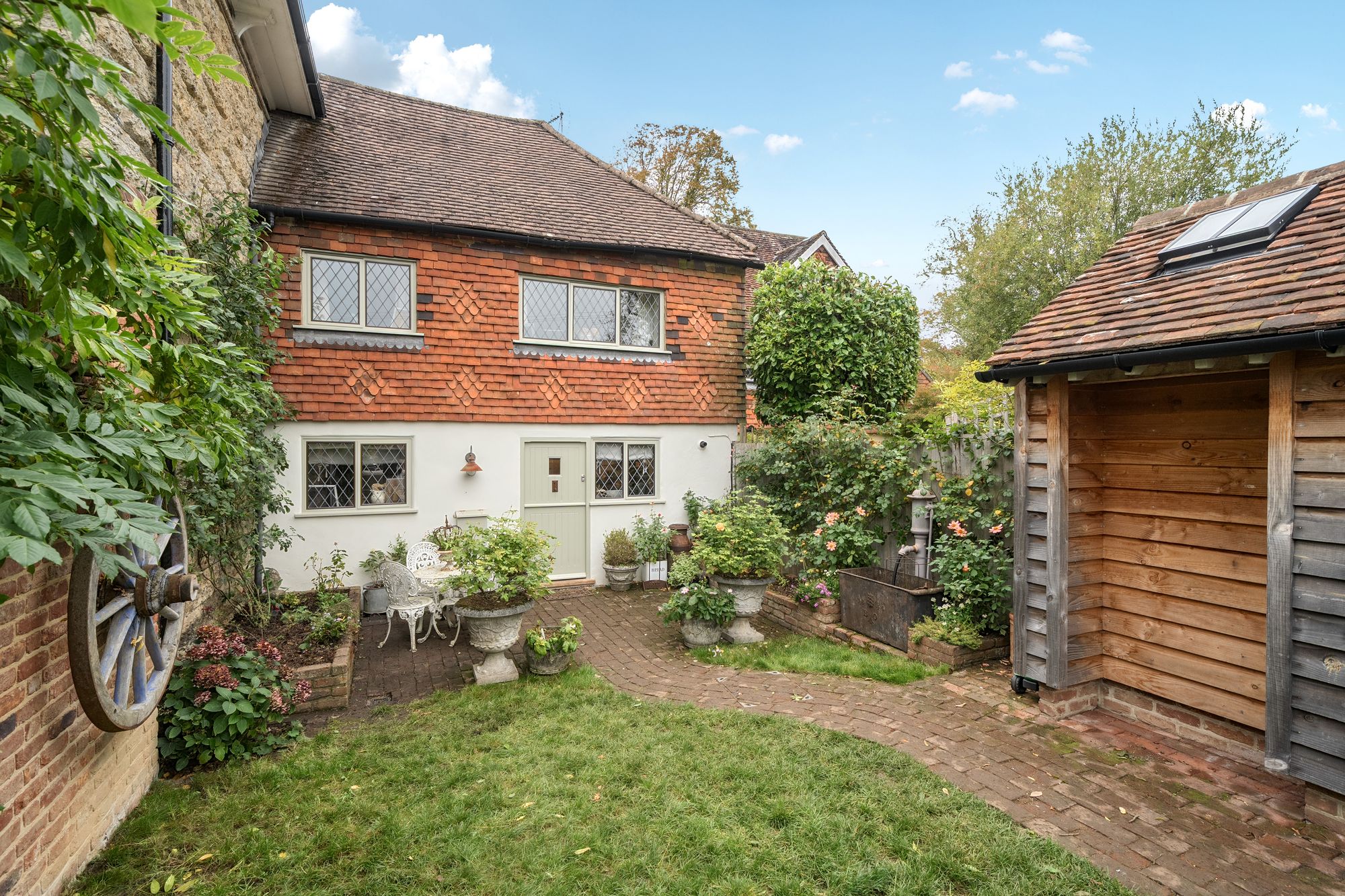 The garden boasts a walled garden and a generous patio area, perfect for entertaining, complete with an outdoor fire for year-round enjoyment. The enclosed garden to the rear, which would originally have been the front of the property when built which we believe to be around 400 years ago, is accessed directly from the sitting room, provides a private retreat. This delightful home is offered with a vendor who is suited and a complete onward chain, ensuring a smooth and efficient transaction process for prospective buyers. With its blend of period features, practical living spaces, and peaceful setting, this cottage represents an exceptional opportunity for those seeking a characterful home in a sought-after semi-rural location.