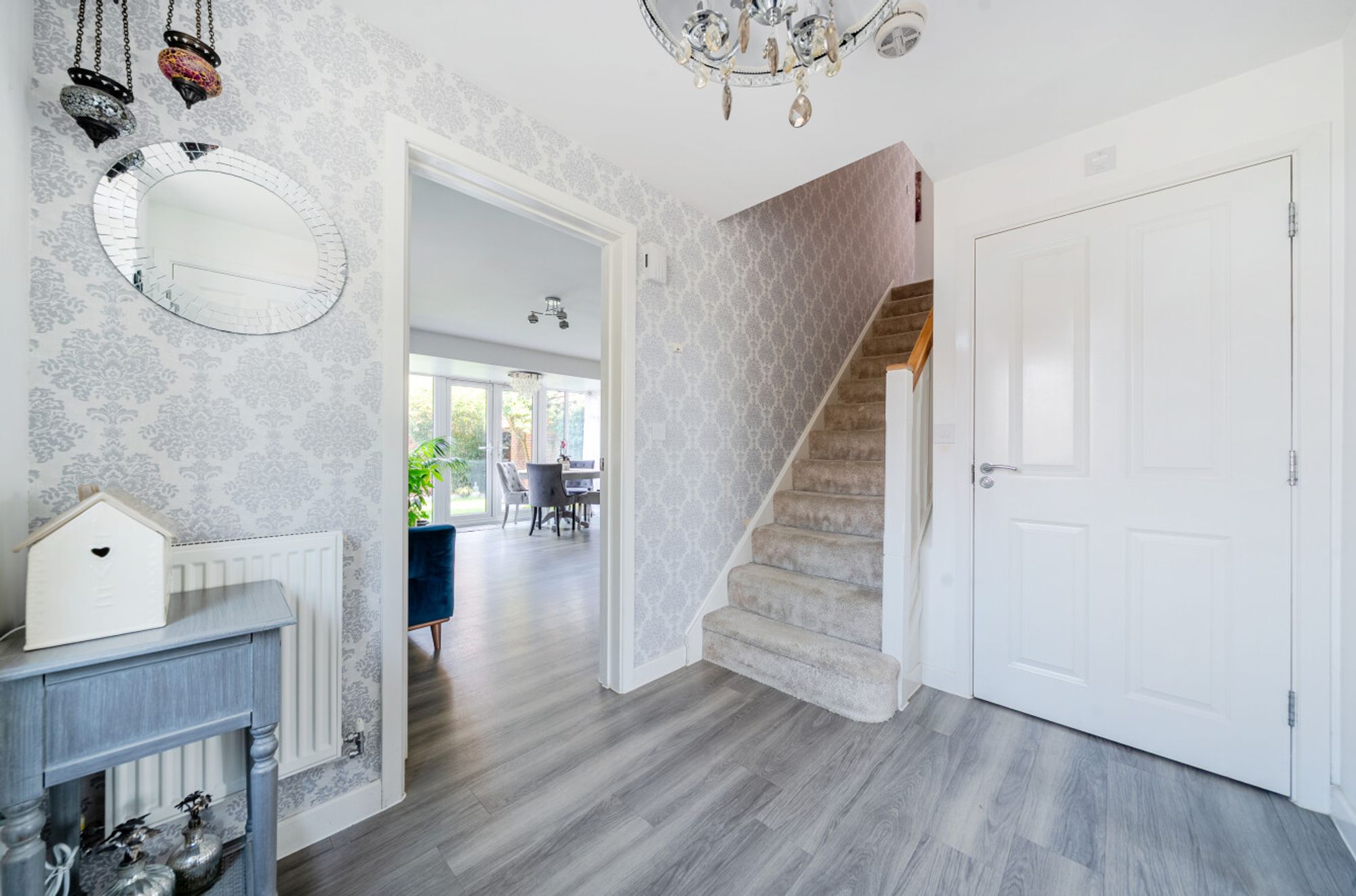This spacious, modern four bedroom family home is located in a popular and desirable 'Charles Church' phase of this development and enjoys a pleasant plot overlooking greenspace opposite.