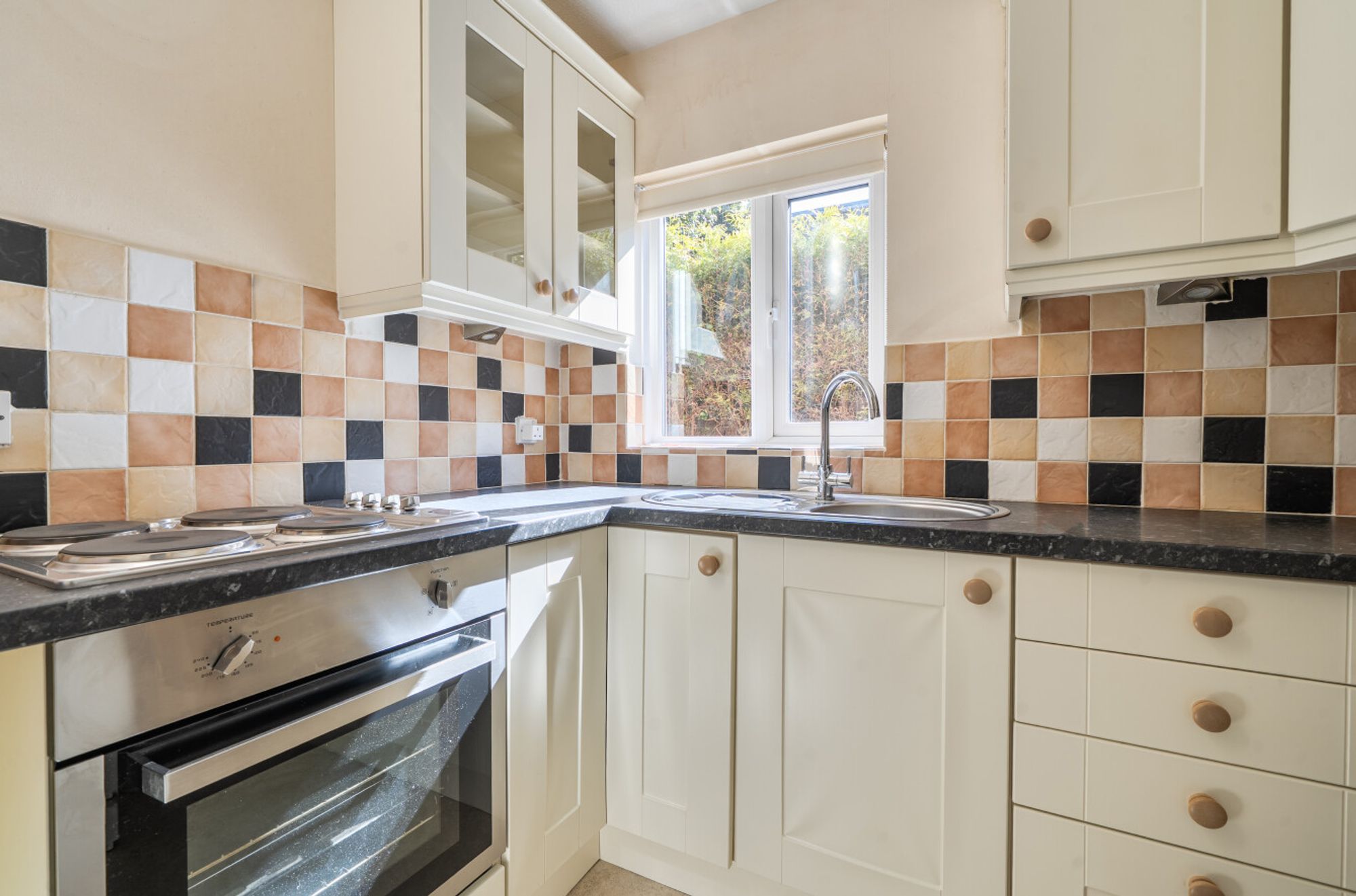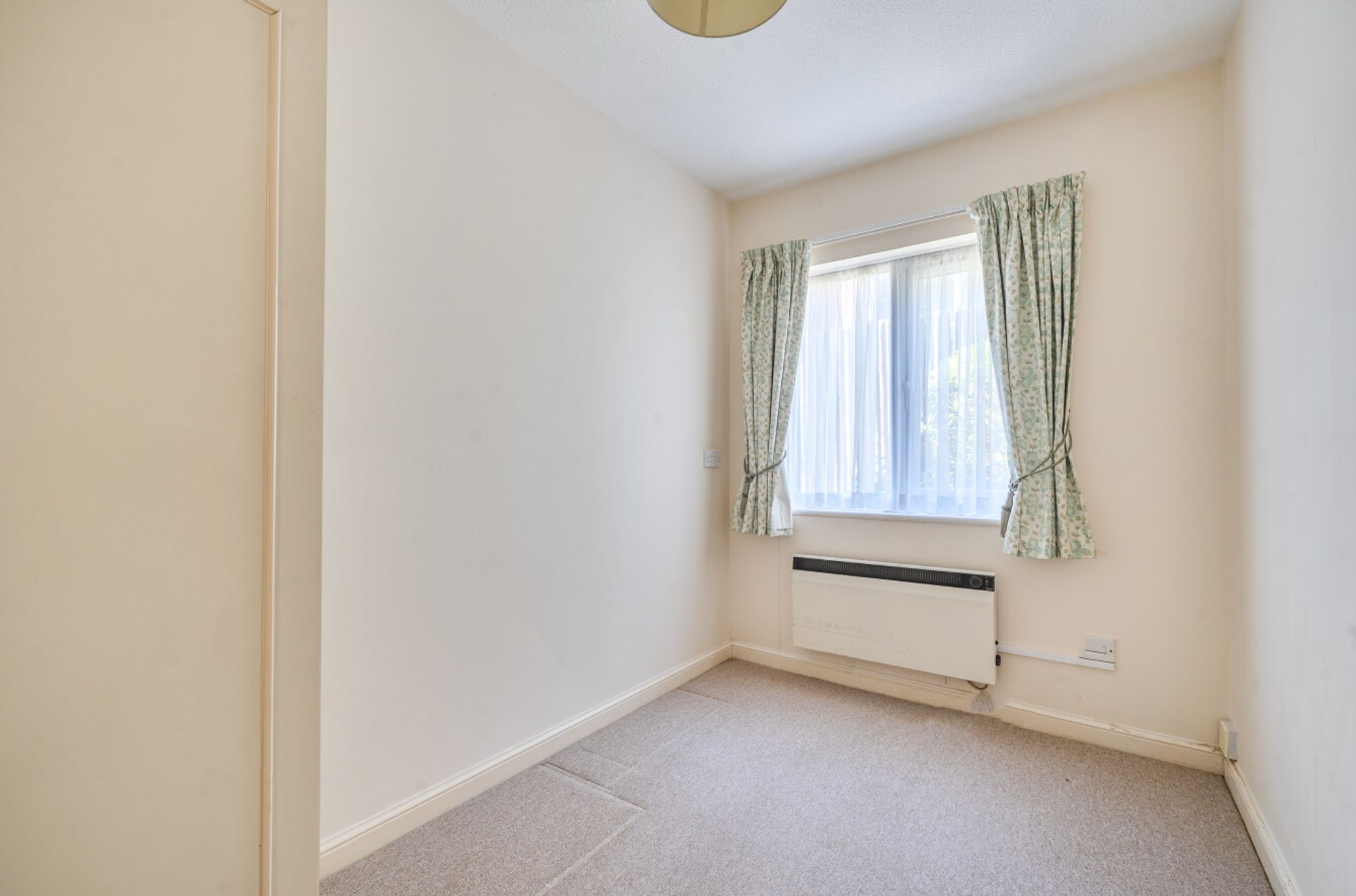 The accommodation comprises a bright sitting room, a separate kitchen fitted with shaker-style cupboards, an integrated electric oven and hob and a window providing natural light. There are two bedrooms, one of which enjoys a dual aspect, along with a modern shower room/WC. There are two generous storage/linen cupboards, electric fire and panel heating, new windows throughout and the property is offered with vacant possession.