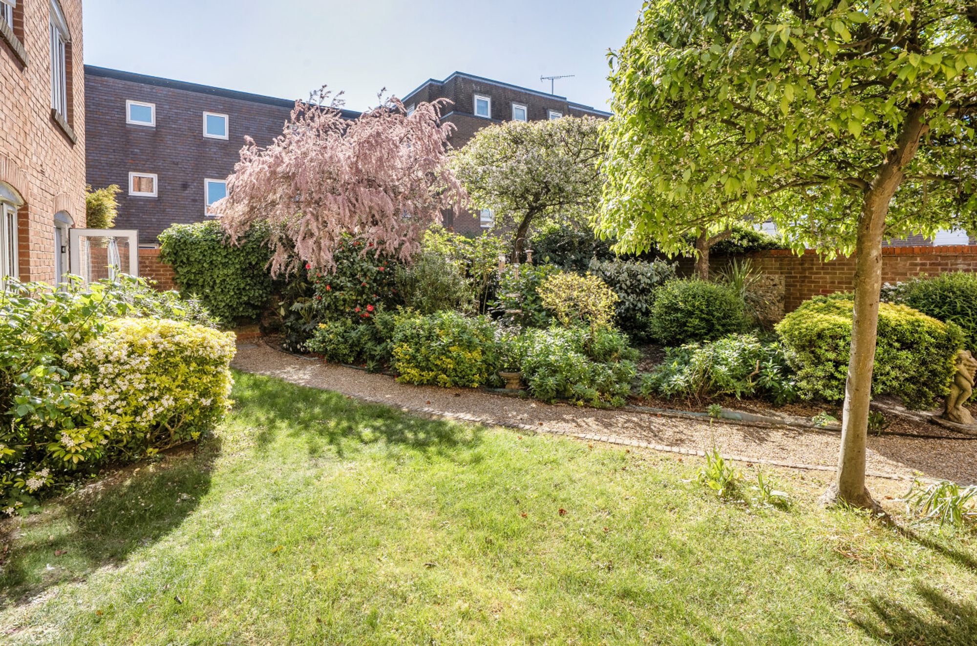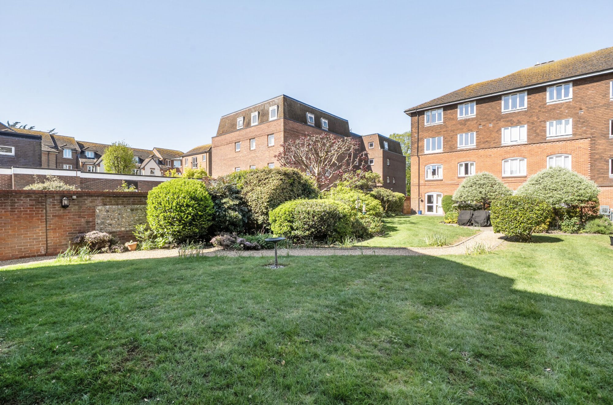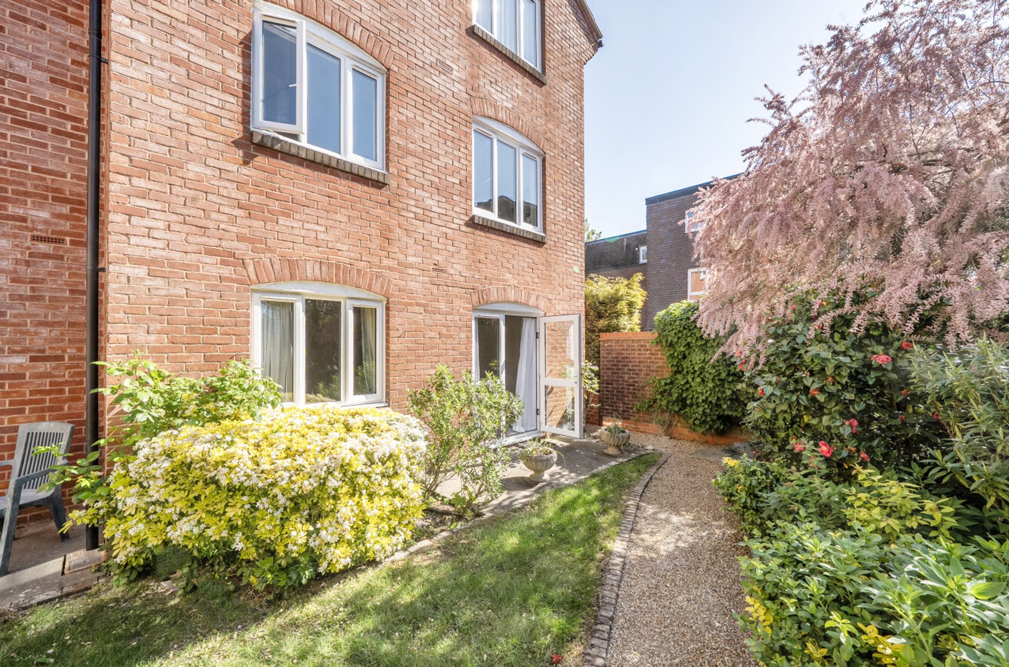 This well-presented, age-restricted ground-floor apartment benefits from a desirable south-facing aspect, filling the sitting room with natural light. A glazed door opens directly onto the beautifully maintained and attractively landscaped communal gardens.